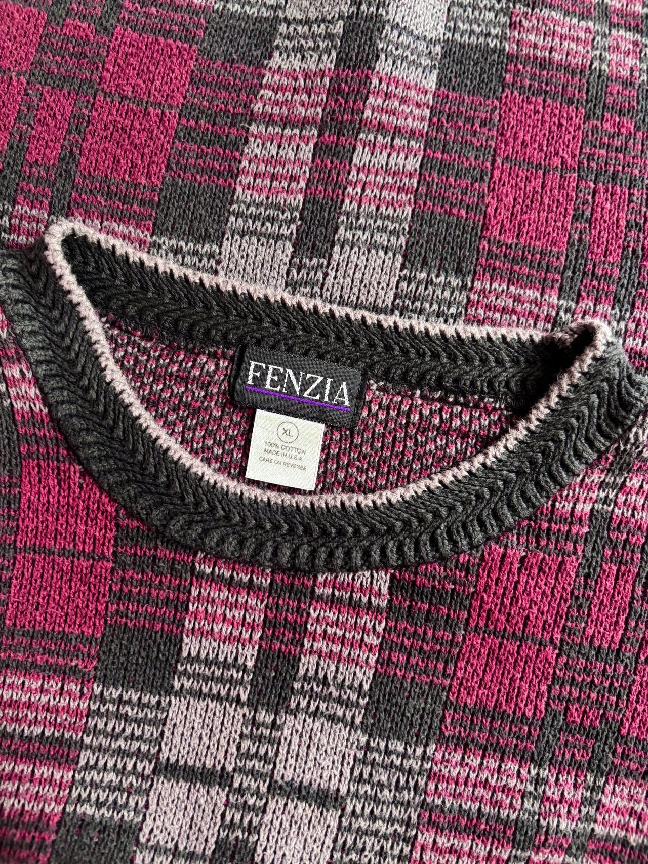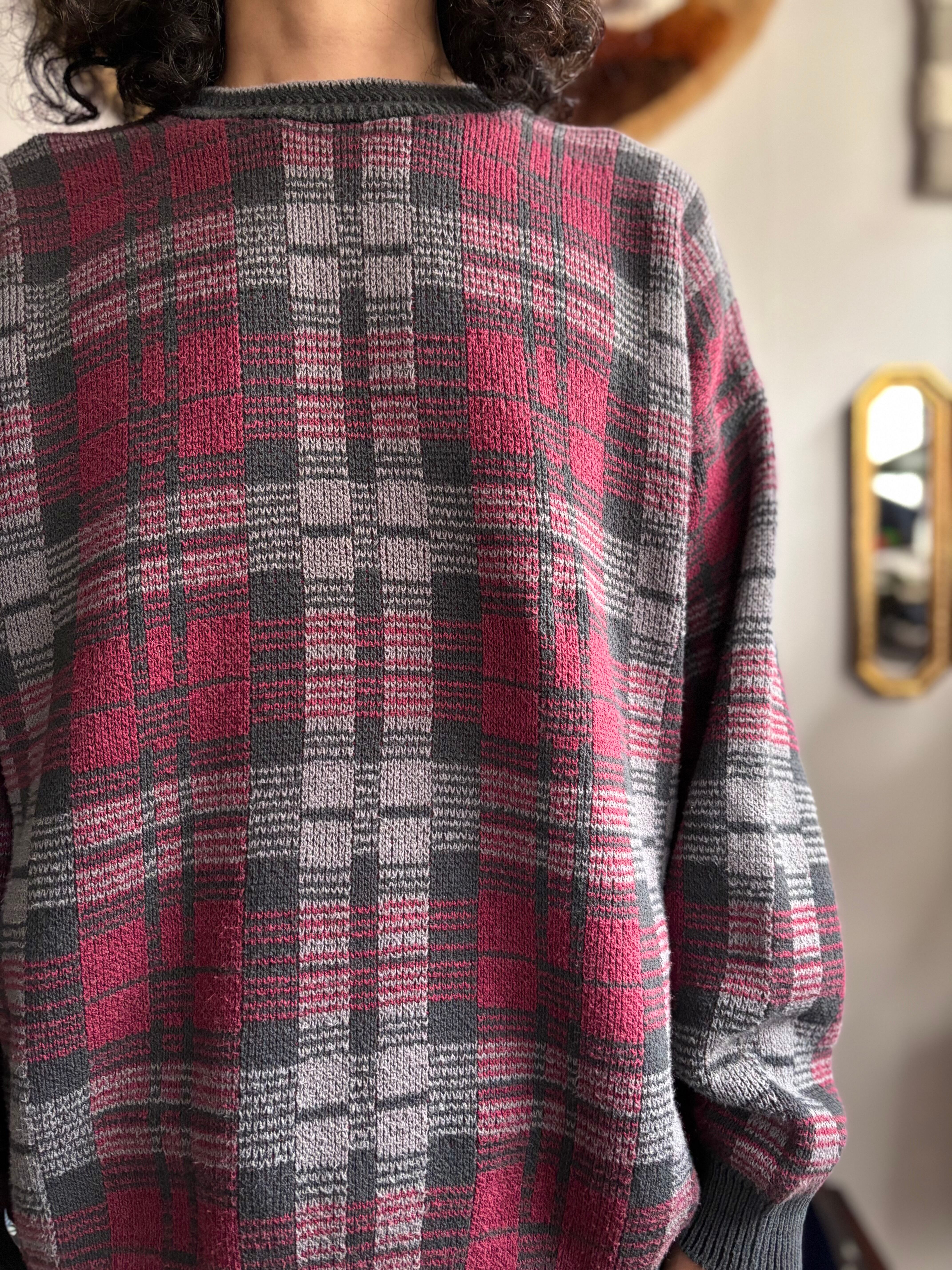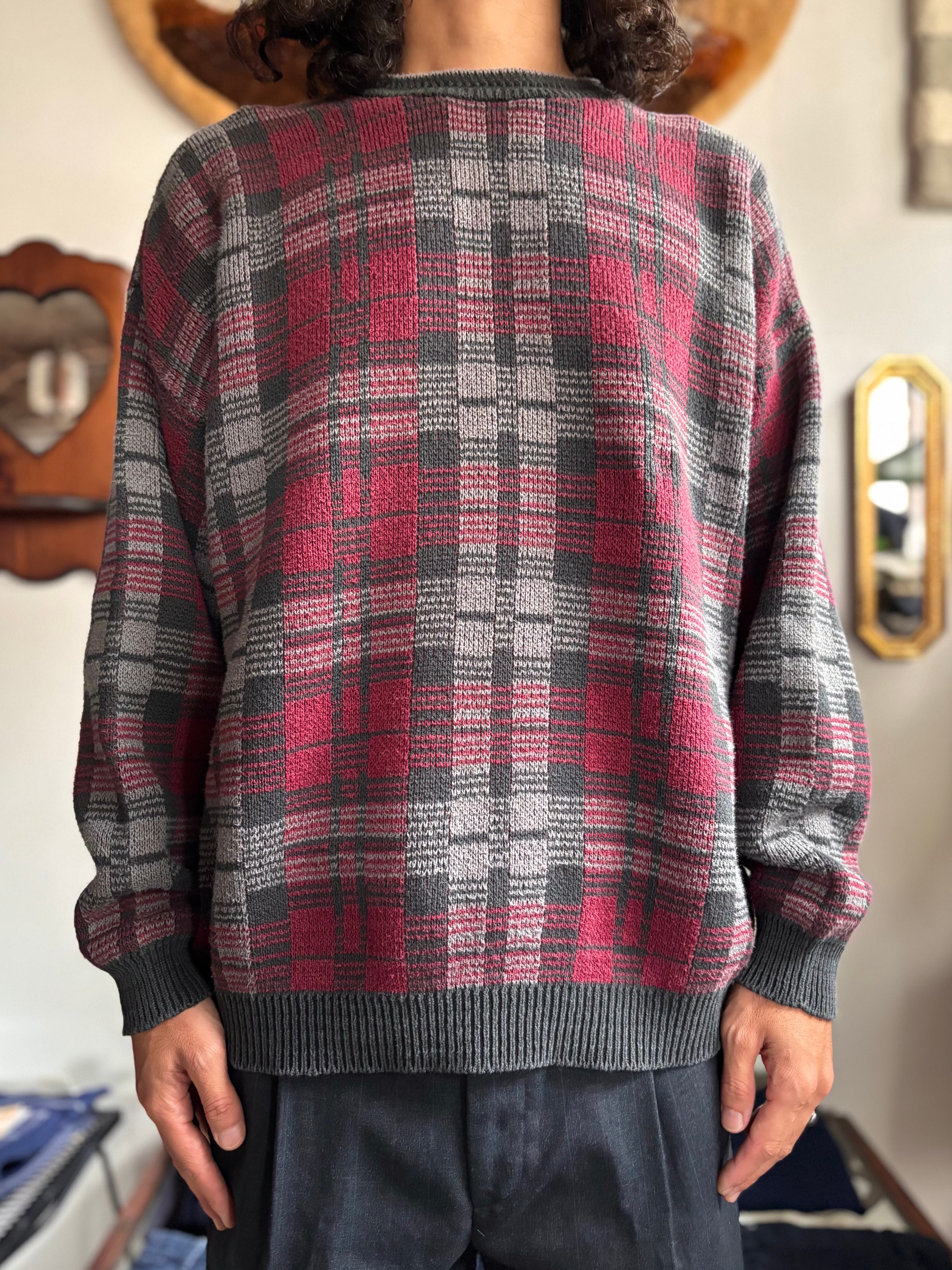 中厚なコットンニット素材。リラックスフィット。ブランケットのような大判のチェックパターン。USA製のOLDモデル。