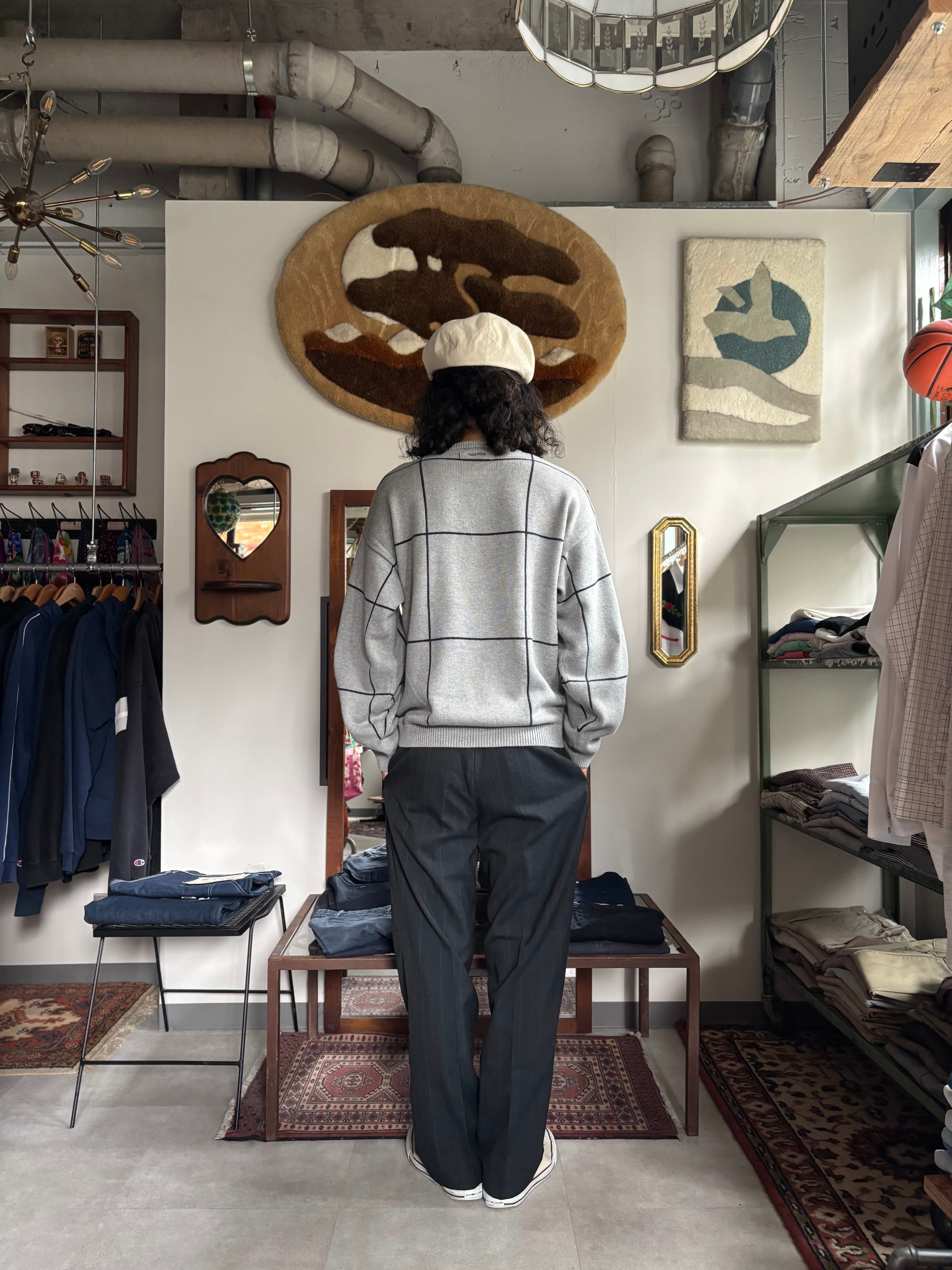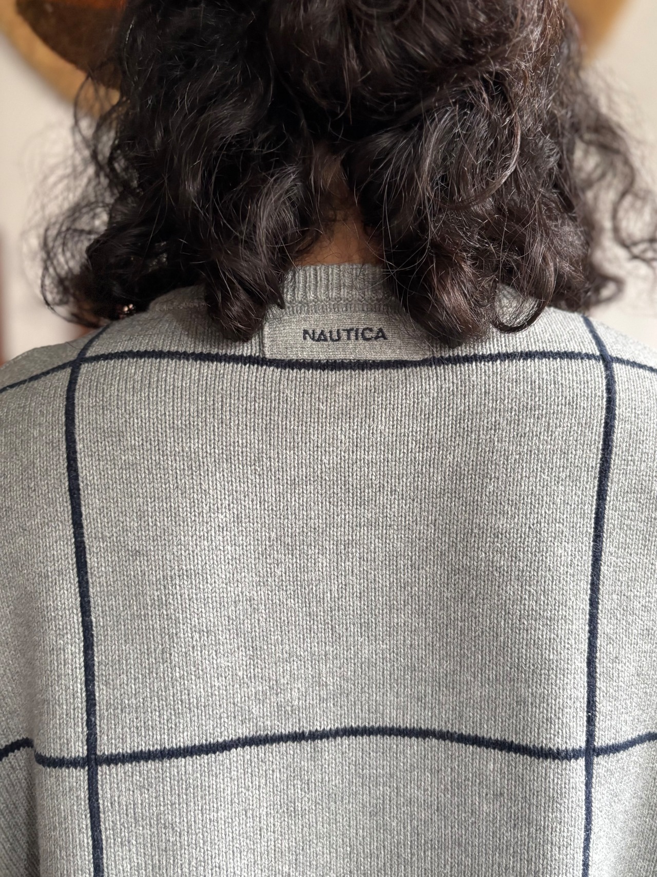 00年代nautica製。中厚のコットンニット素材。リラックスフィット。スマートな印象の大判のチェックパターン。