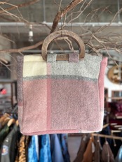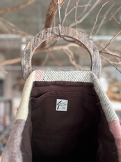 スケートボードデッキを再利用して製作したウッドハンドルに、イギリス製のブランケット生地を用いたオリジナルトートバッグ。ライナーには帆布生地を使用し、内ポケットも備えています。取手の形、ブランケットパターン、ライナーカラーとそれぞれに異なる一点もの仕様。上質なウール生地と、オイル仕上げで磨かれたハンドルの組み合わせは、コーディネートの主役になる存在感があります。重くなりがちな秋冬スタイルのアクセントにいかがでしょうか。