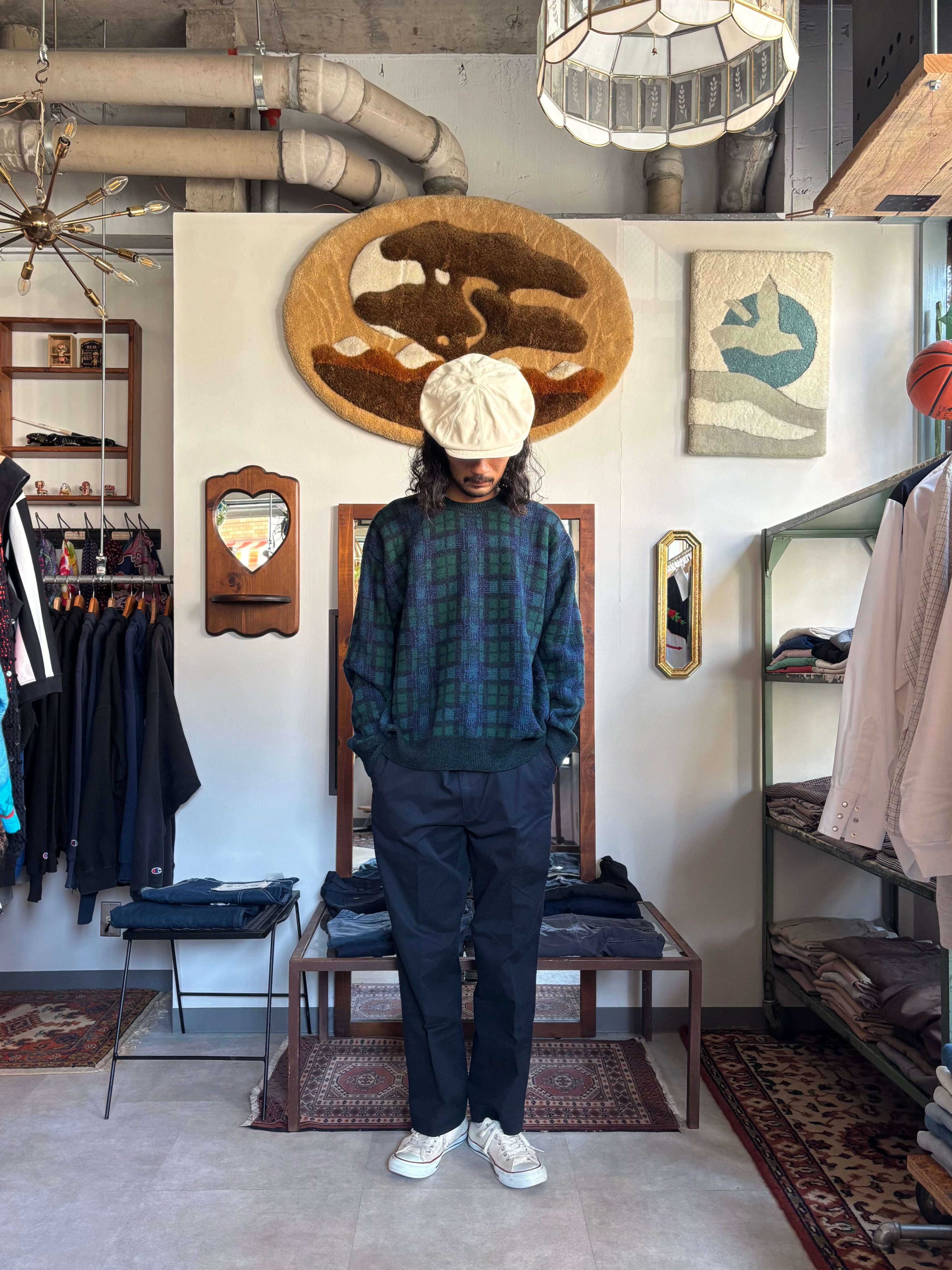 中厚のウールアクリル素材。リラックスフィット。トラディショナルなブラックウォッチパターン。イタリア製のOLDモデル。