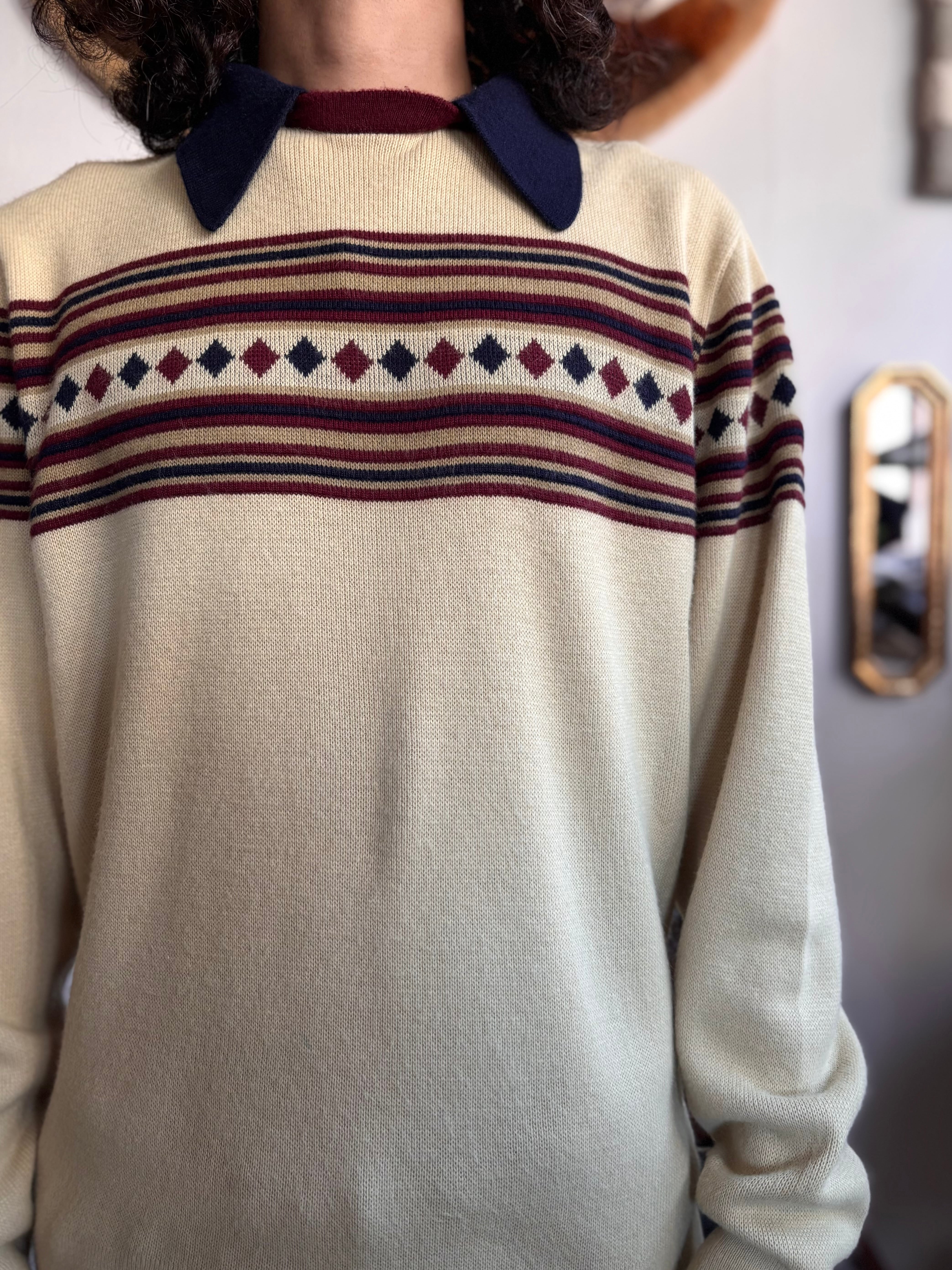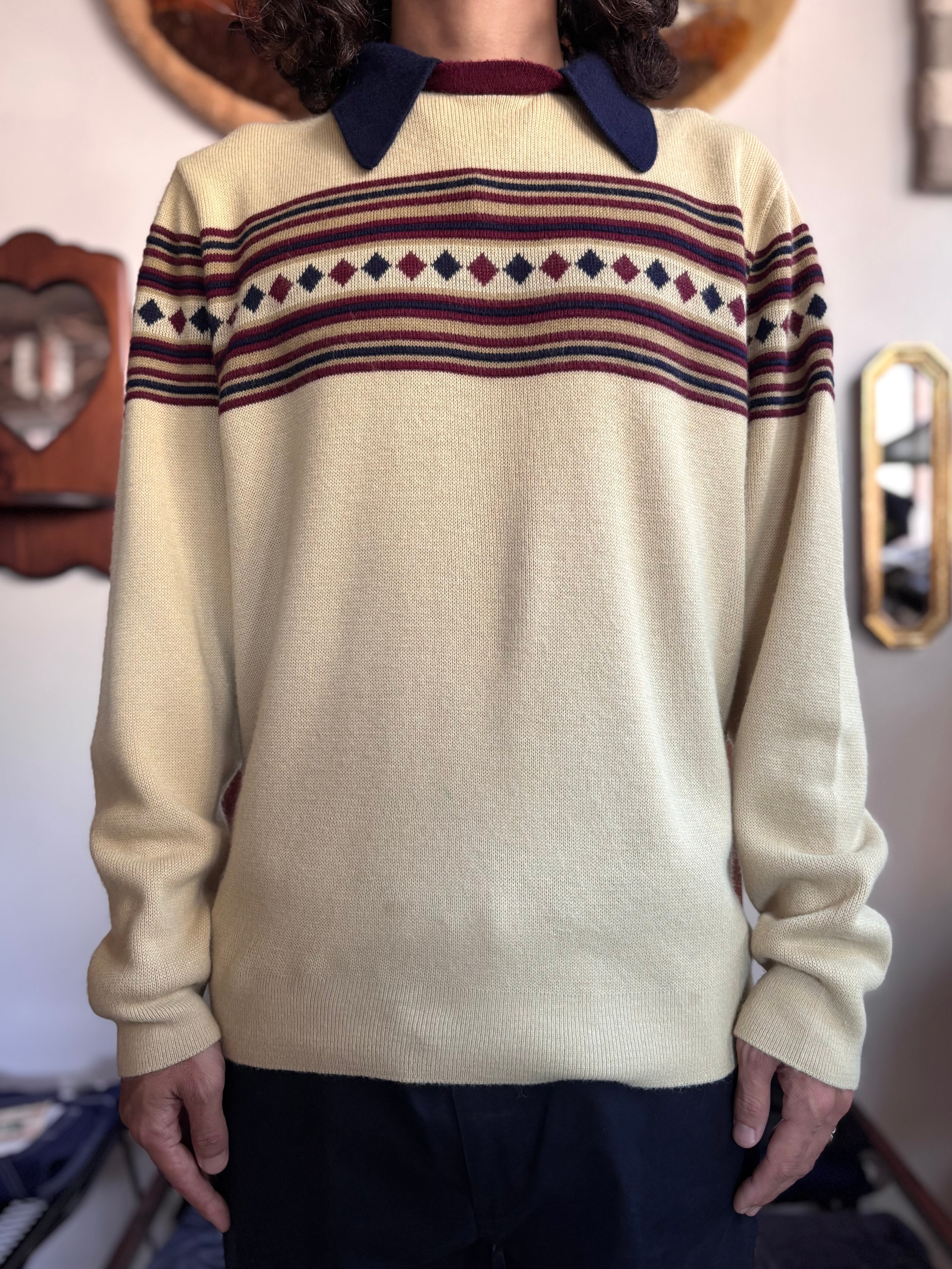 中厚のアクリル素材。オーセンティックフィット。レトロな襟付きタイプ。軽くポロシャツ感覚で着用できます。70s LORD JEFF のvintageモデル。