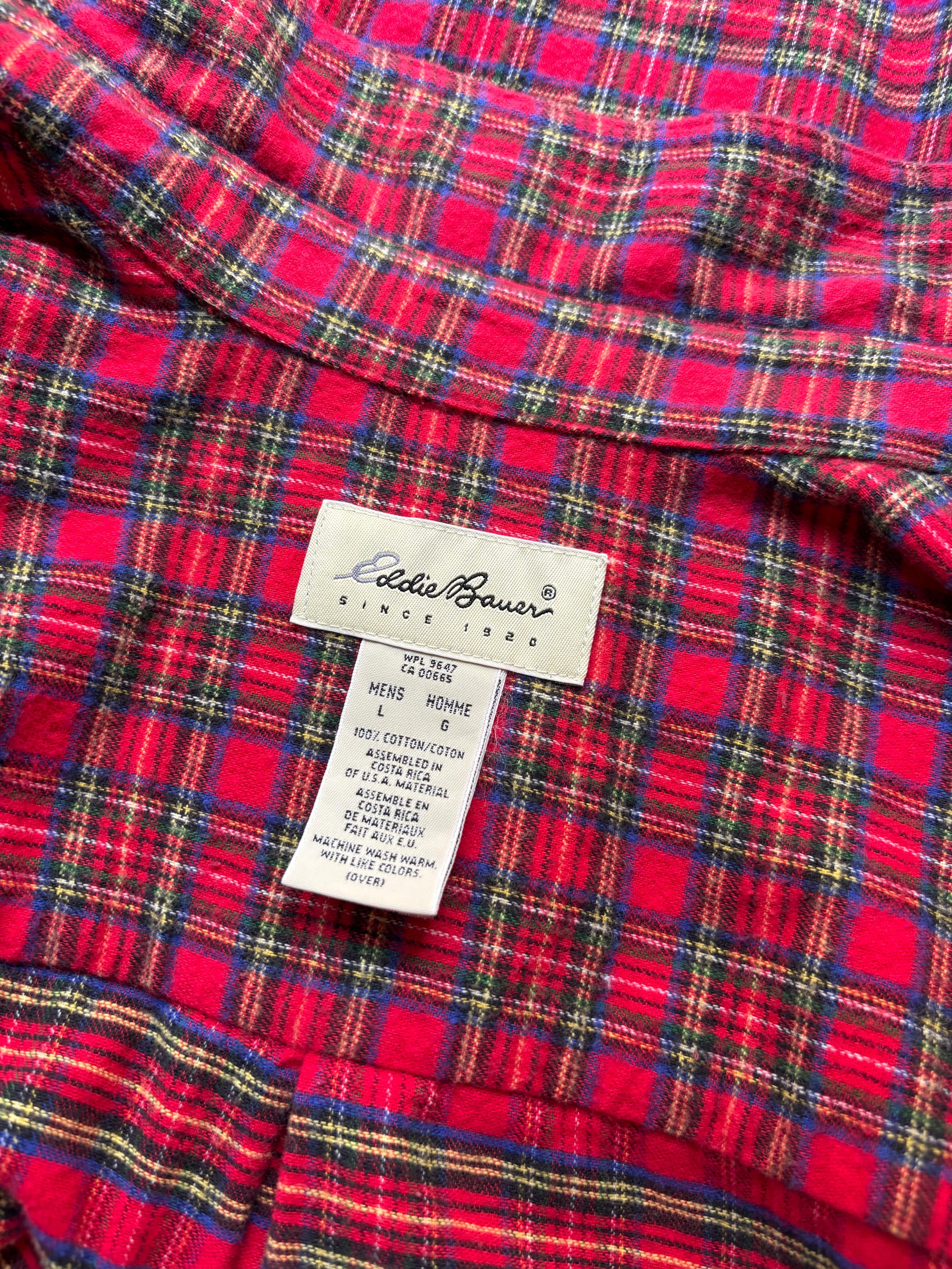 中厚のコットン素材。リラックスフィット。片胸ポケットのレギュラーカラー仕様にタータンチェックがトラディショナルな印象。00s 白タグのEDDIE BAUER製。