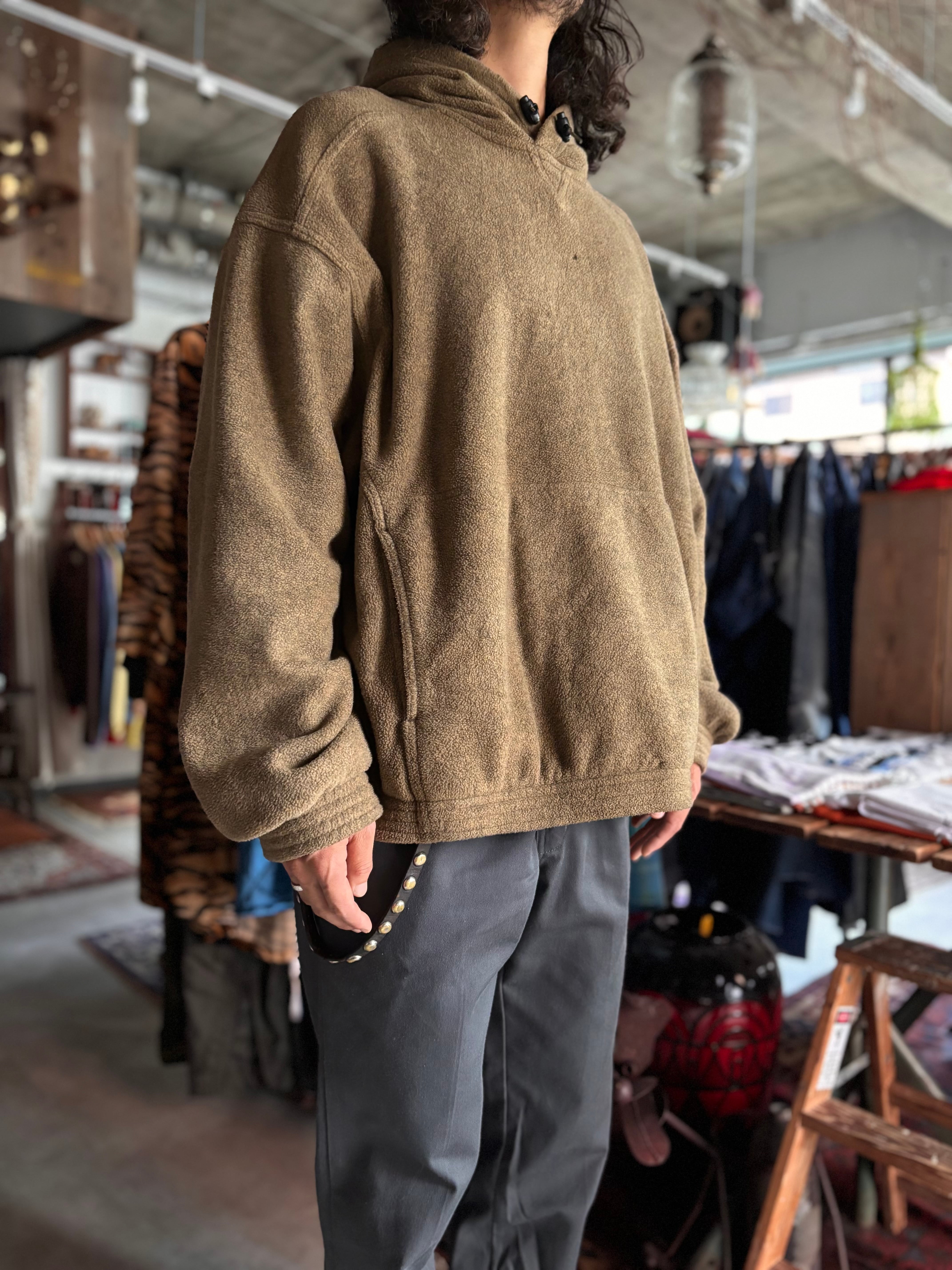 防寒製の高い肉厚なフリース素材。ルーズシルエット。サイドに切り替えが入るリバースウィーブ仕様。00s USA製の EDDIE BAUER。