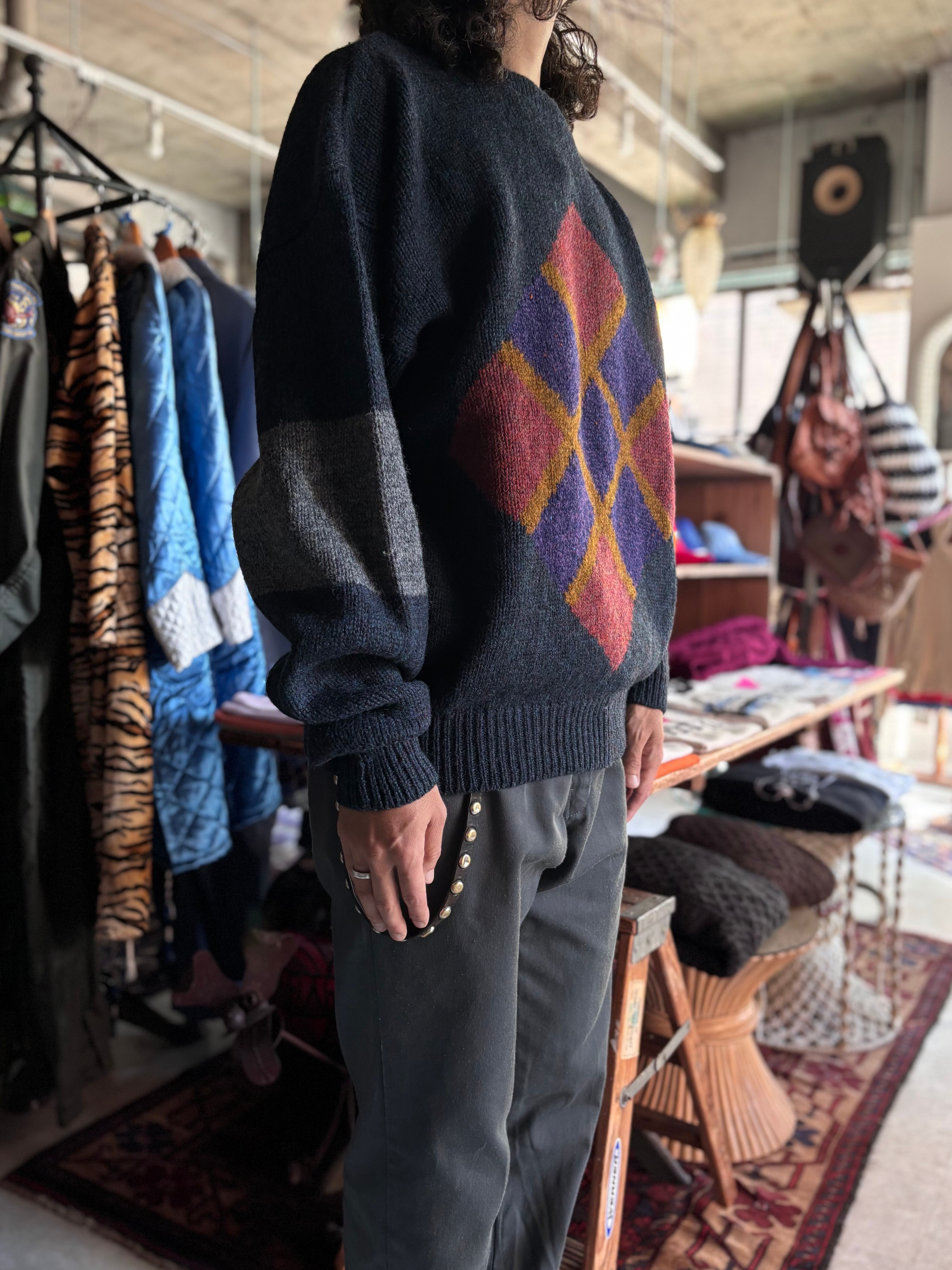 厚手のウール生地。リラックスフィット。良質なミックスカラーの糸に、珍しい編み込みデザイン。
