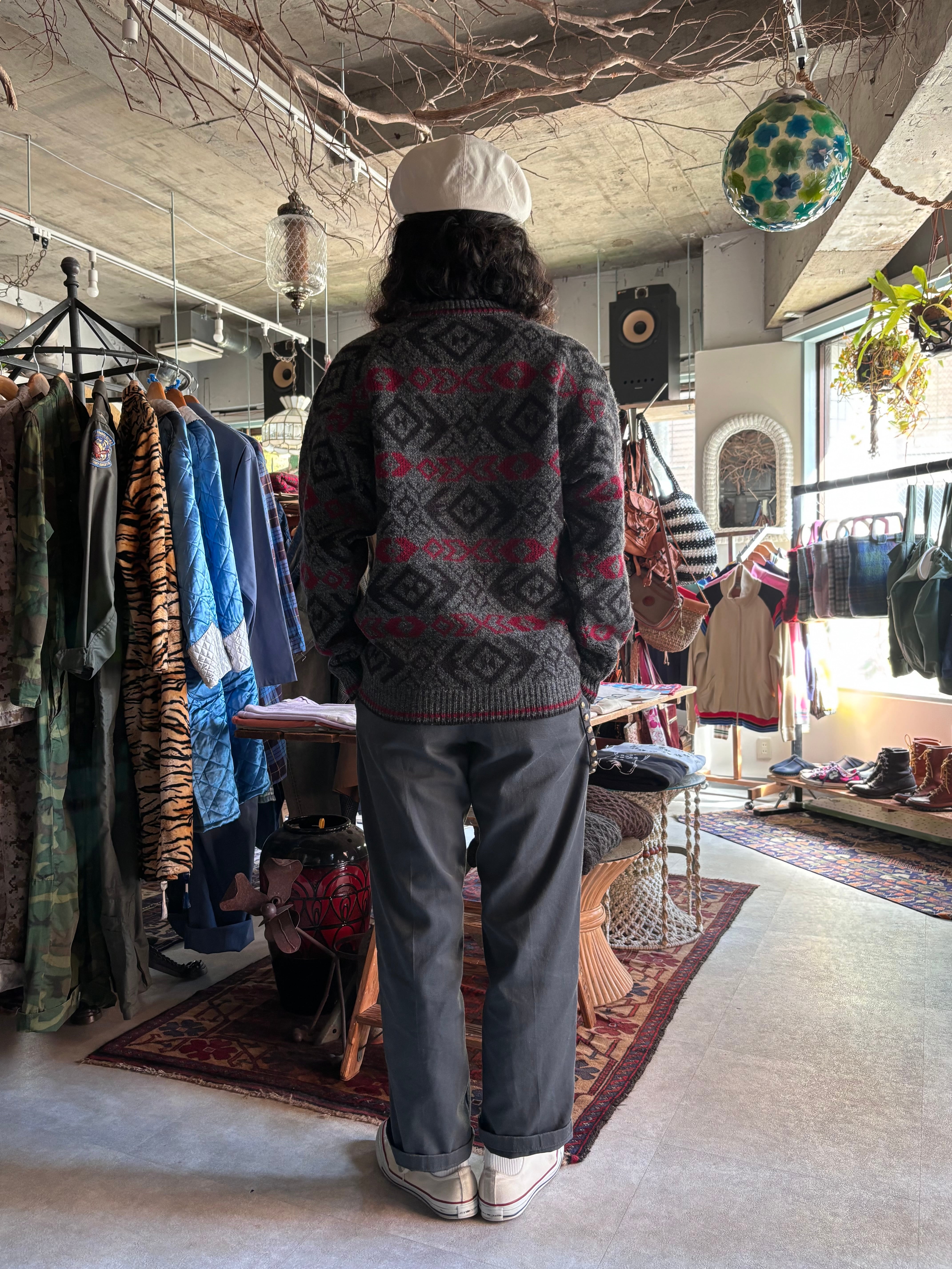 中厚のウール生地。リラックスフィット。トライバル柄の編み模様。90s OLDのLAND'S END製。