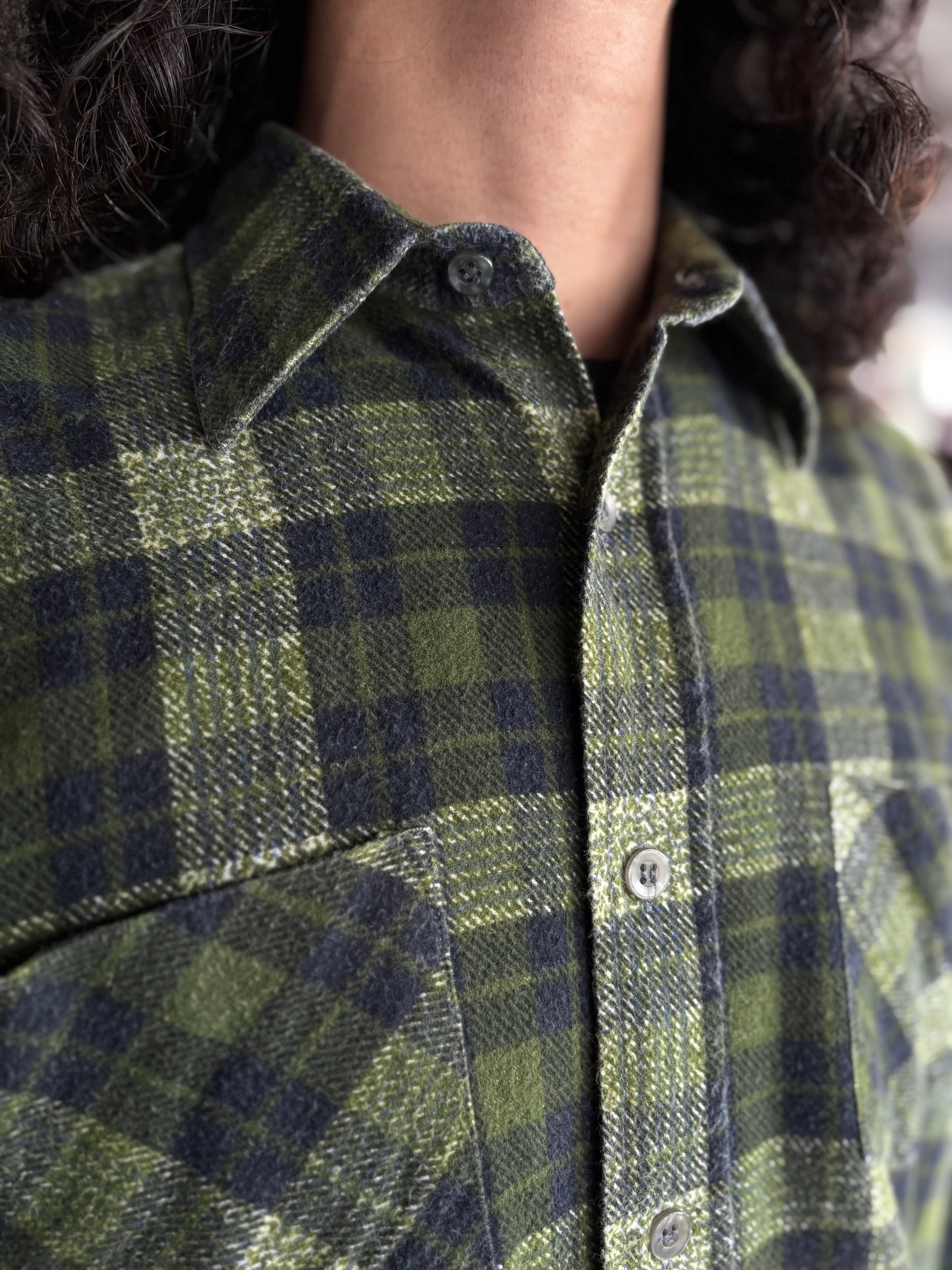 柔らかいフランネル生地。オーセンティックフィット。綺麗なコンディション。OLD感抜群のグリーンカラーのプリントネル。とても珍しい色合いでおすすめです。