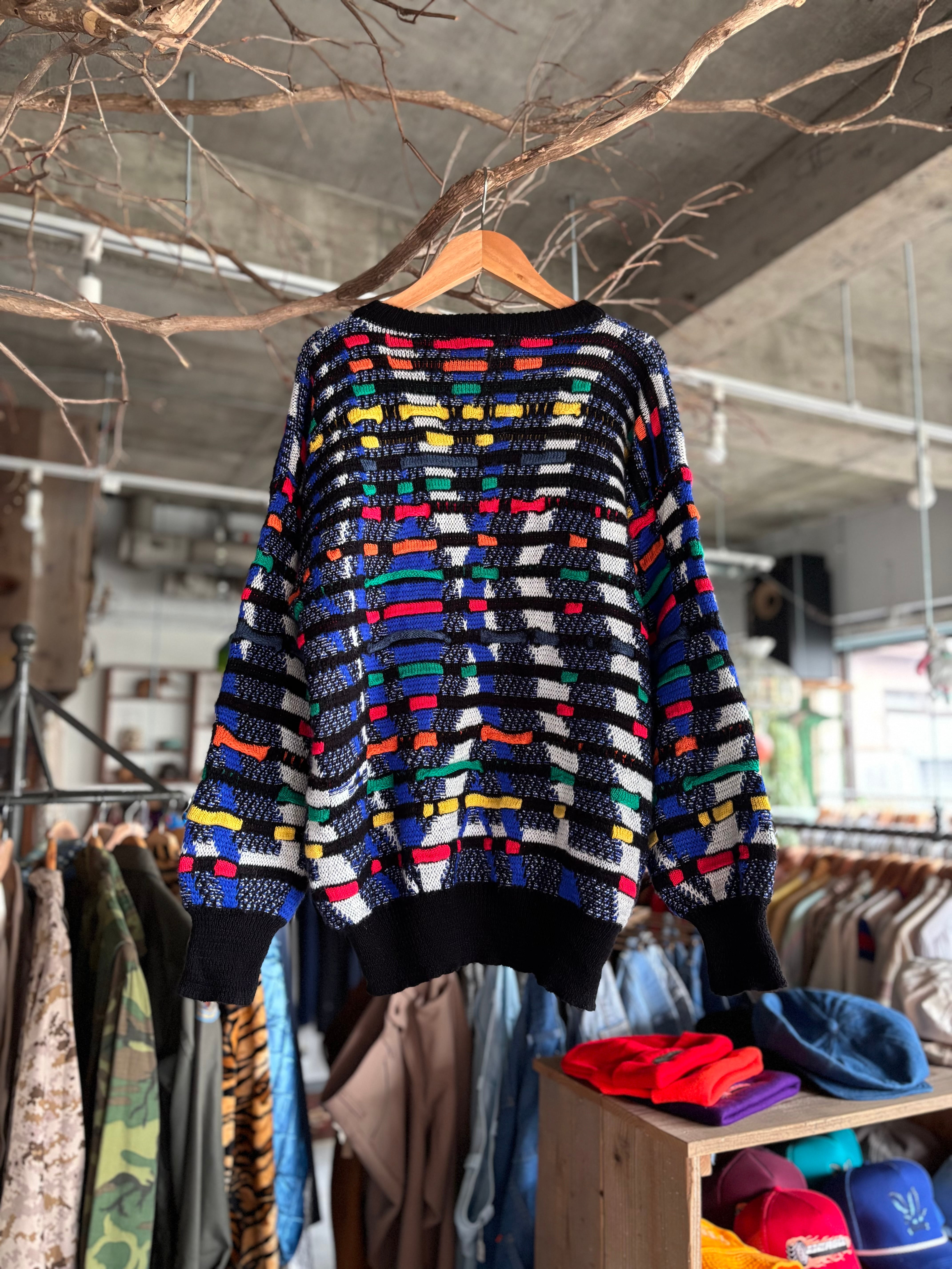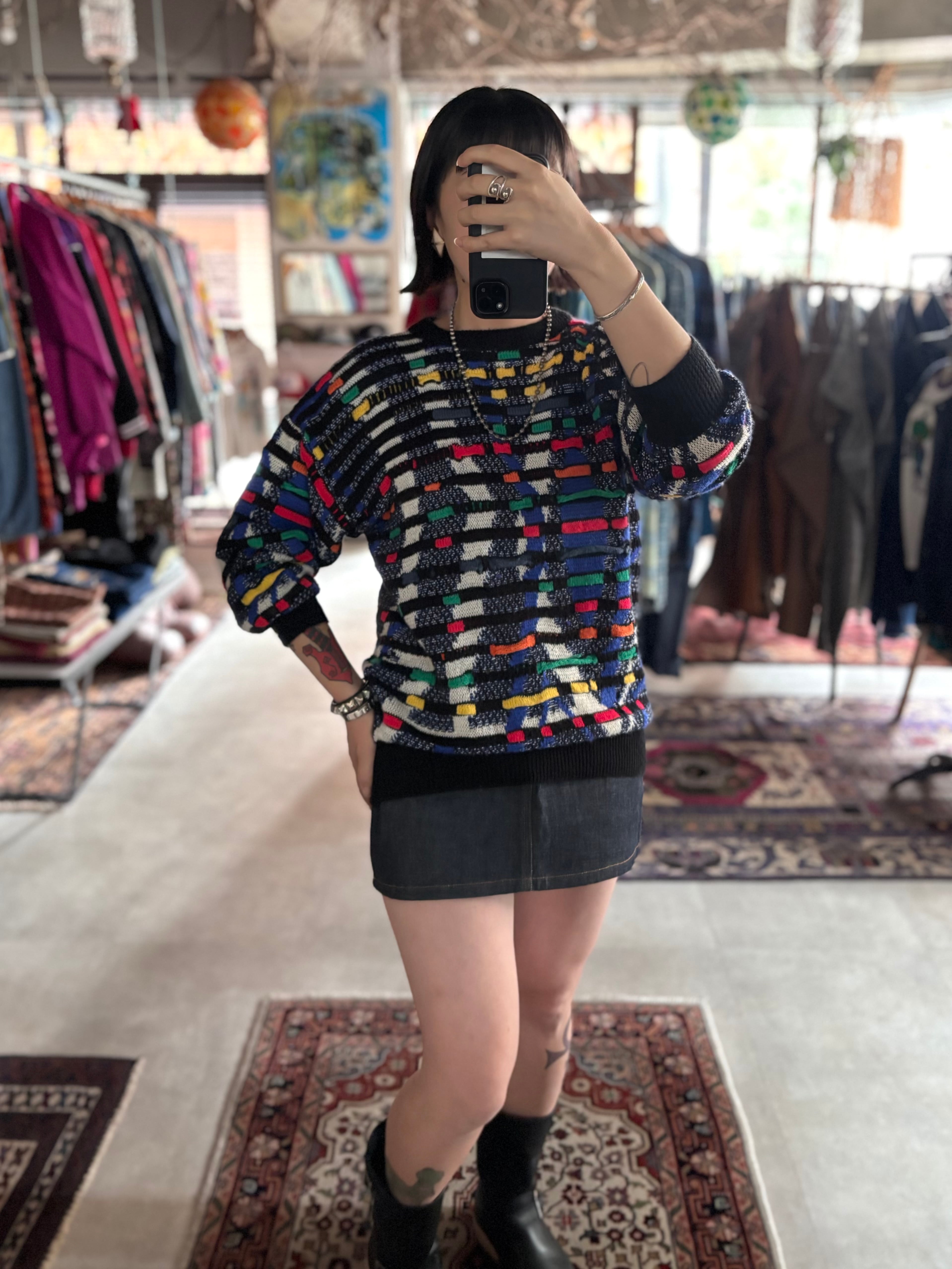 しっかりとしたアクリル×ウール混紡素材。リラックスシルエット。立体的でカラフルなデザインがとても可愛い一着。インナーにも映えるおすすめニットです◎