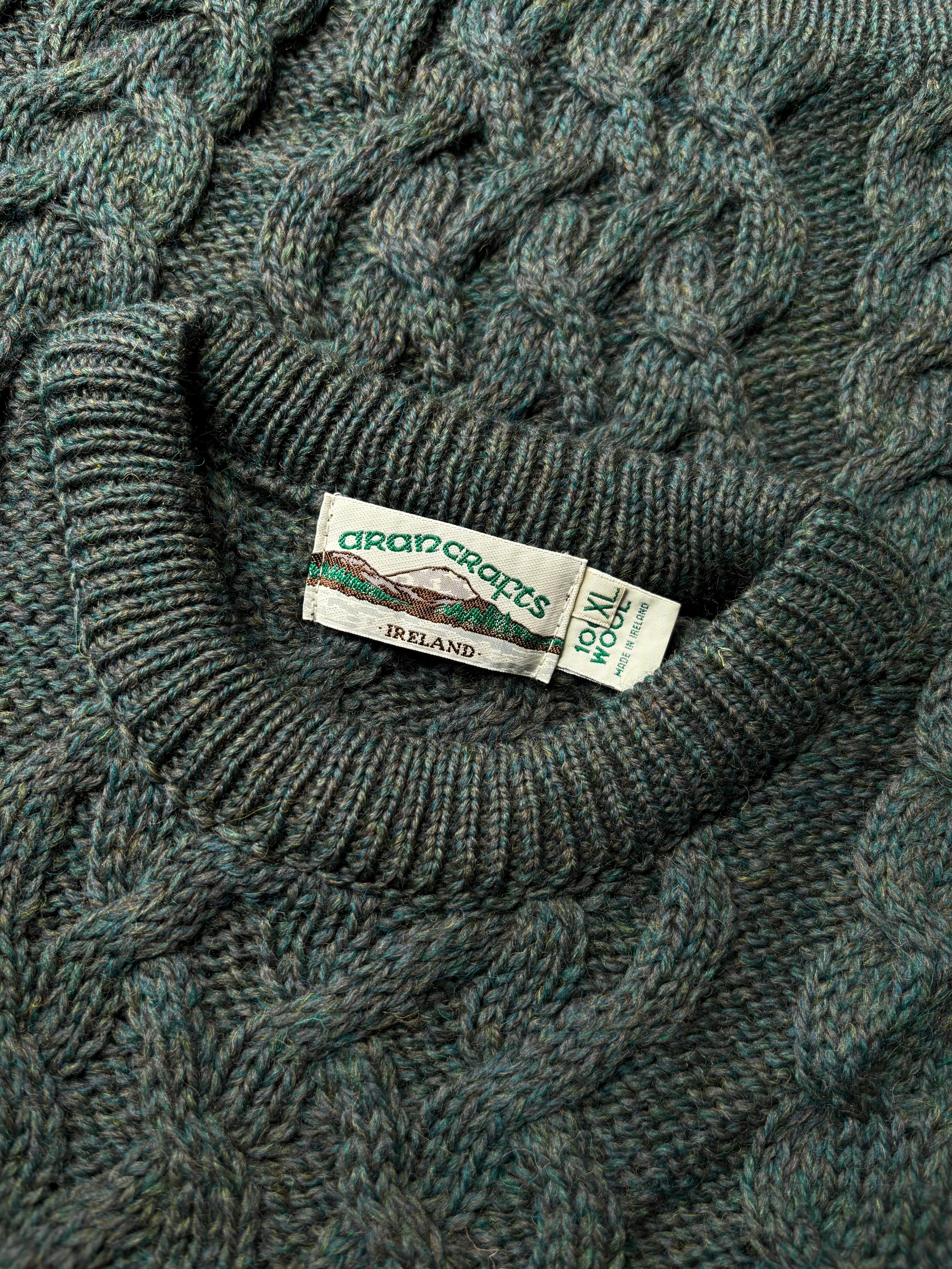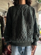 厚手のウール素材。リラックスシルエット。質感の良さが際立つ本場アイルランド製。見る角度によって色の印象が変わるgreen × kahki のミックスカラーが可愛いです。