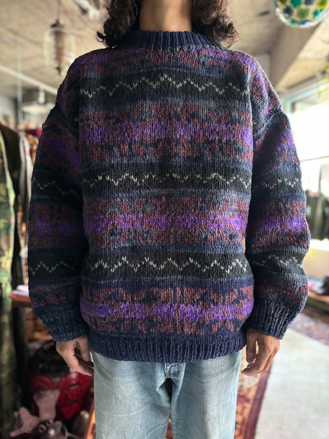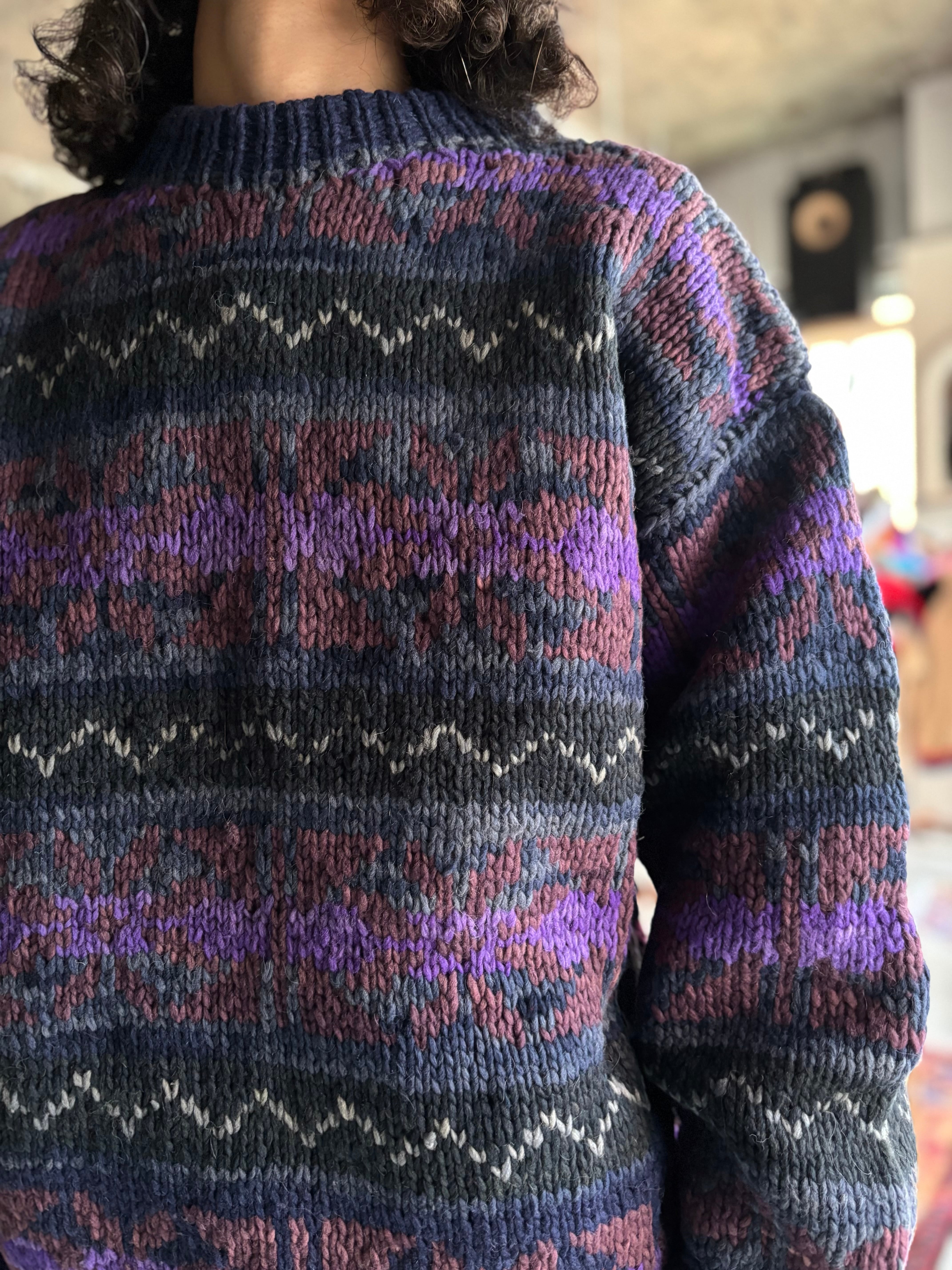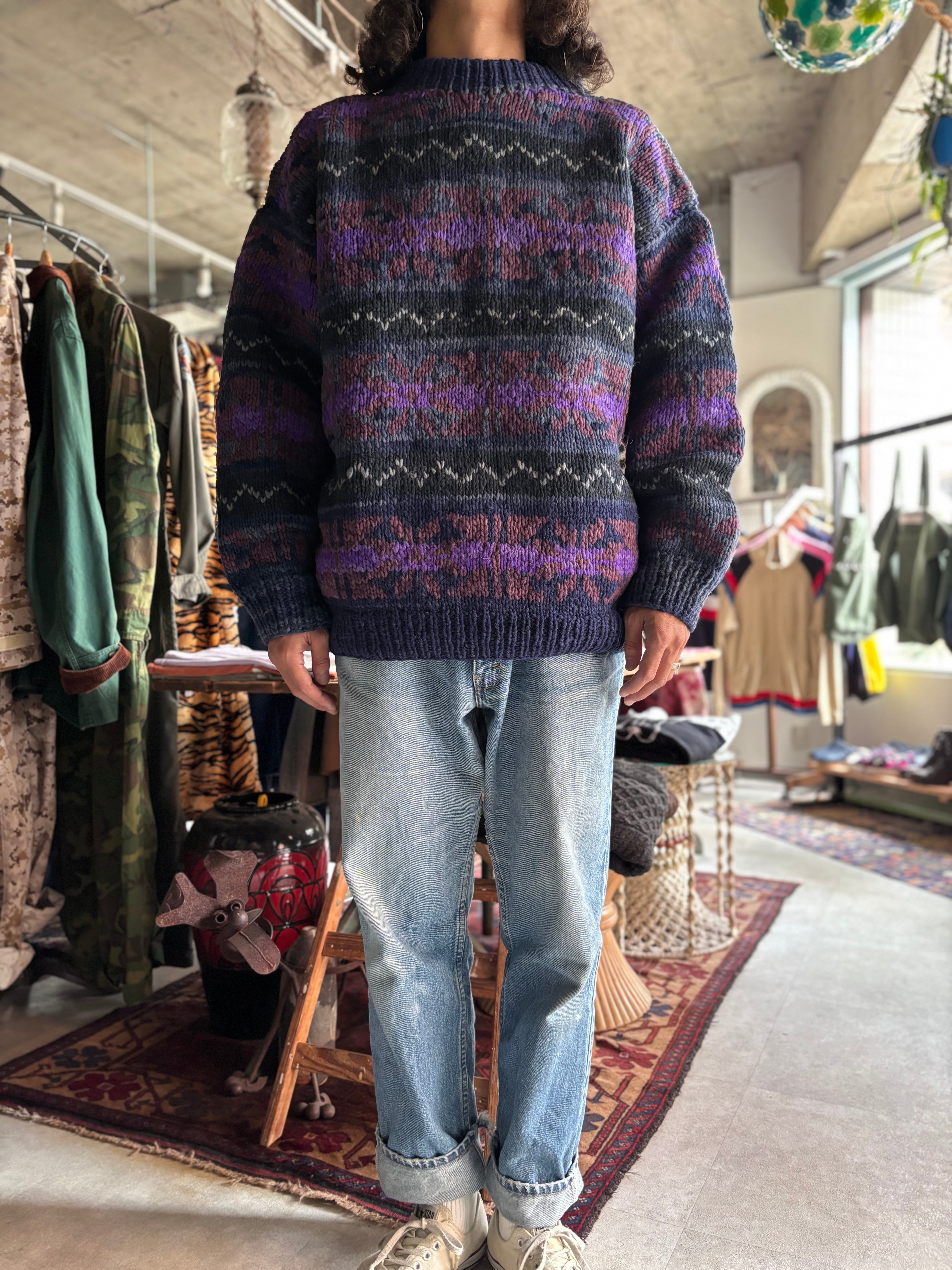 肉厚なウール素材。リラックスシルエット。エクアドルニットらしい鮮やかなカラーリング。身ごろやスリーブまで丸みのあるシルエットが可愛いです。