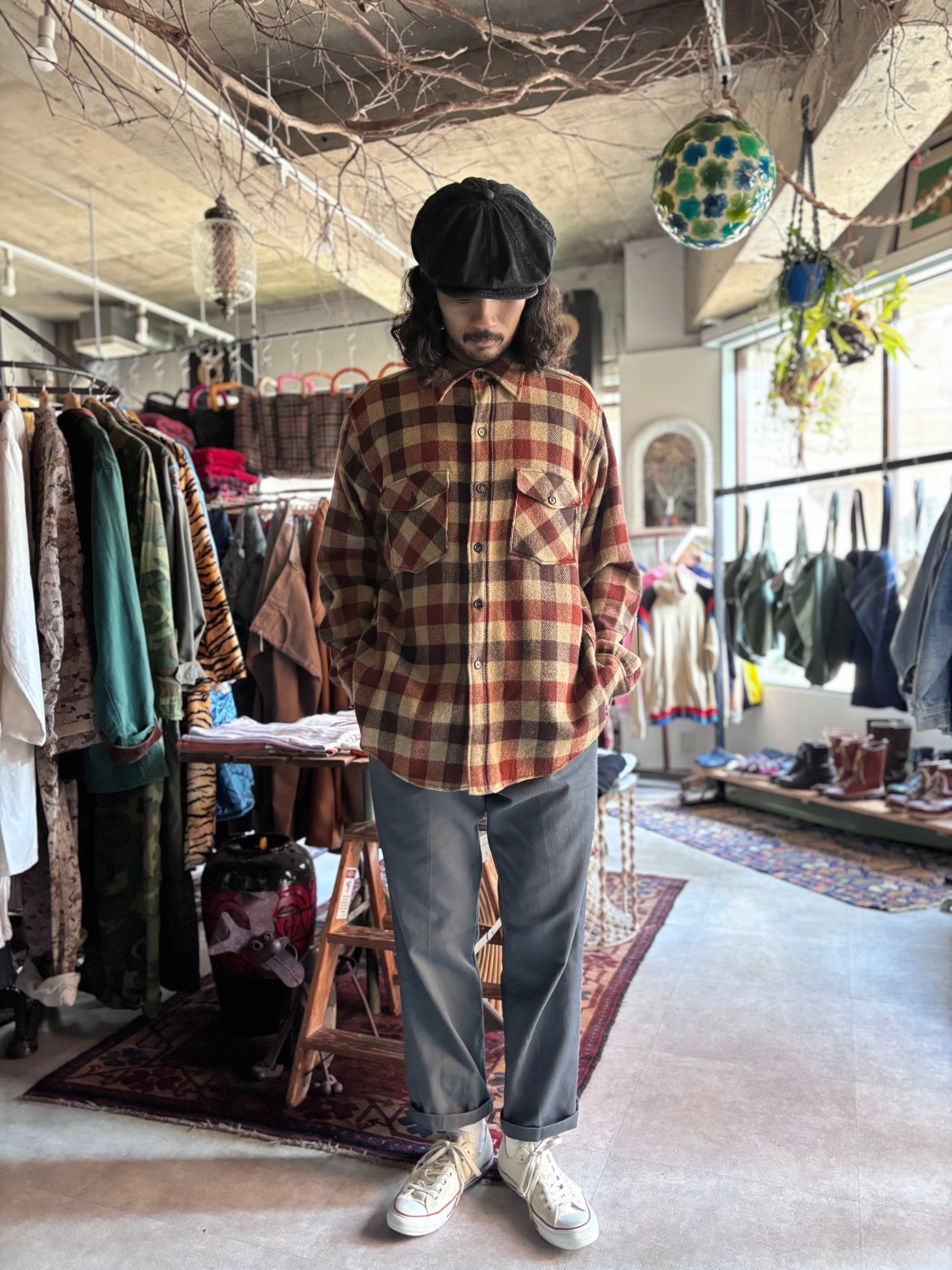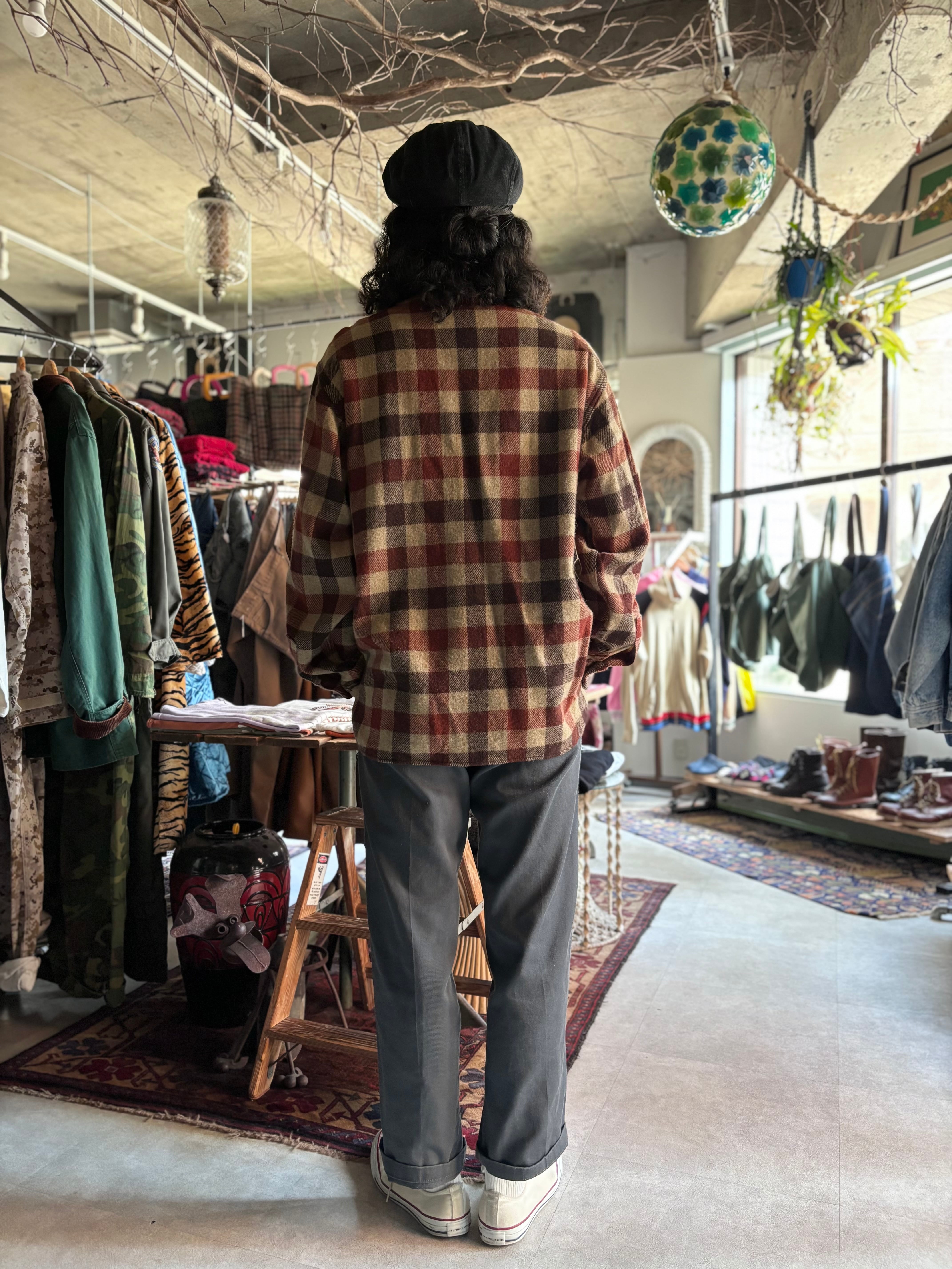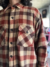 軽く暖かいウール素材。リラックスフィット。オーセンティックなワークシャツスタイル。綺麗なコンディション。80s USA製のWOOLRICH。ブラウンワントーンのブランケットのようなチェックが可愛いです。