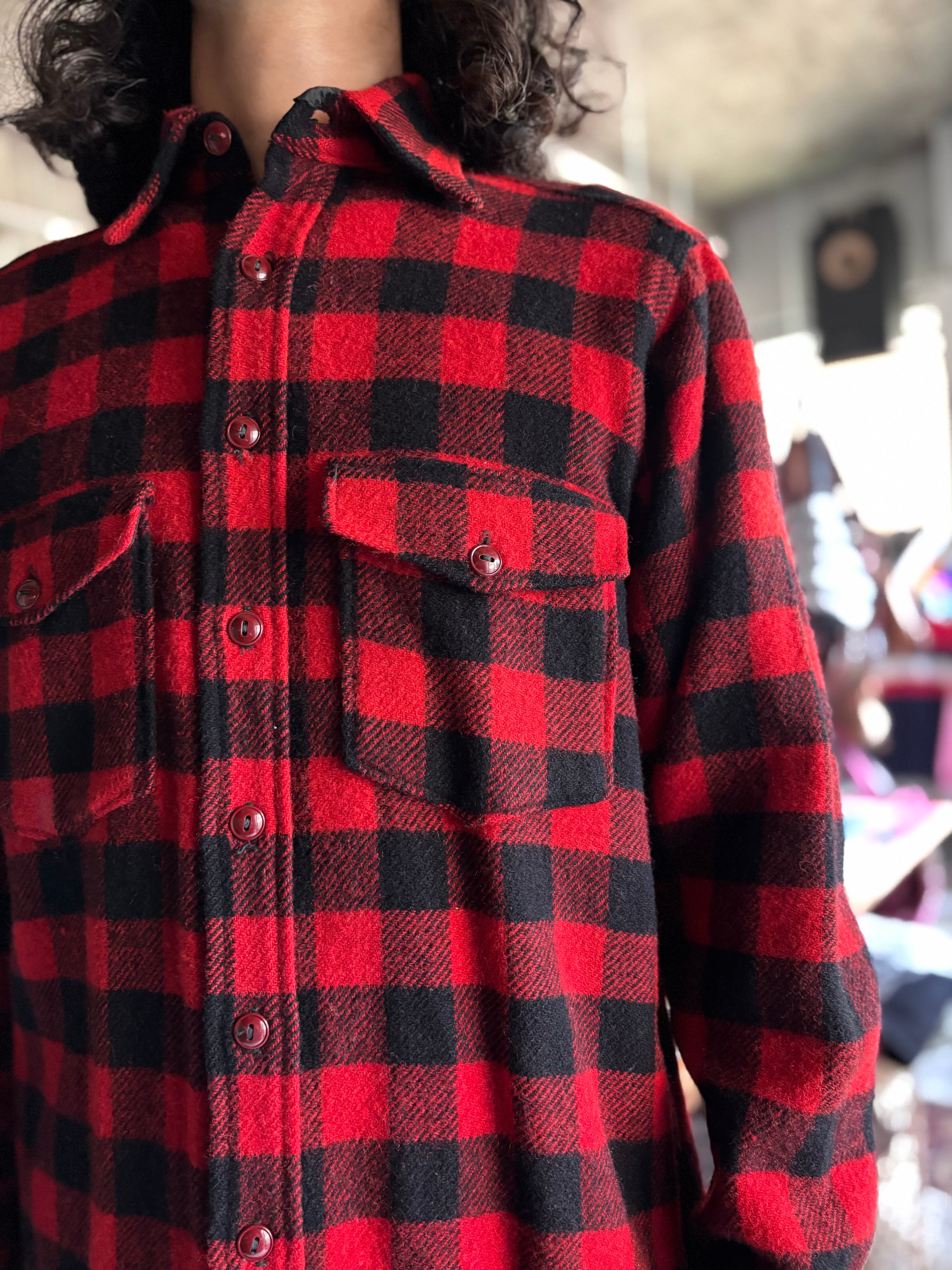 厚手のウール素材。オーセンティックフィット。最もクラシカルなバッファローチェック。綺麗なコンディション。現代的なコーディネートに合わせ易い良質ビンテージです。