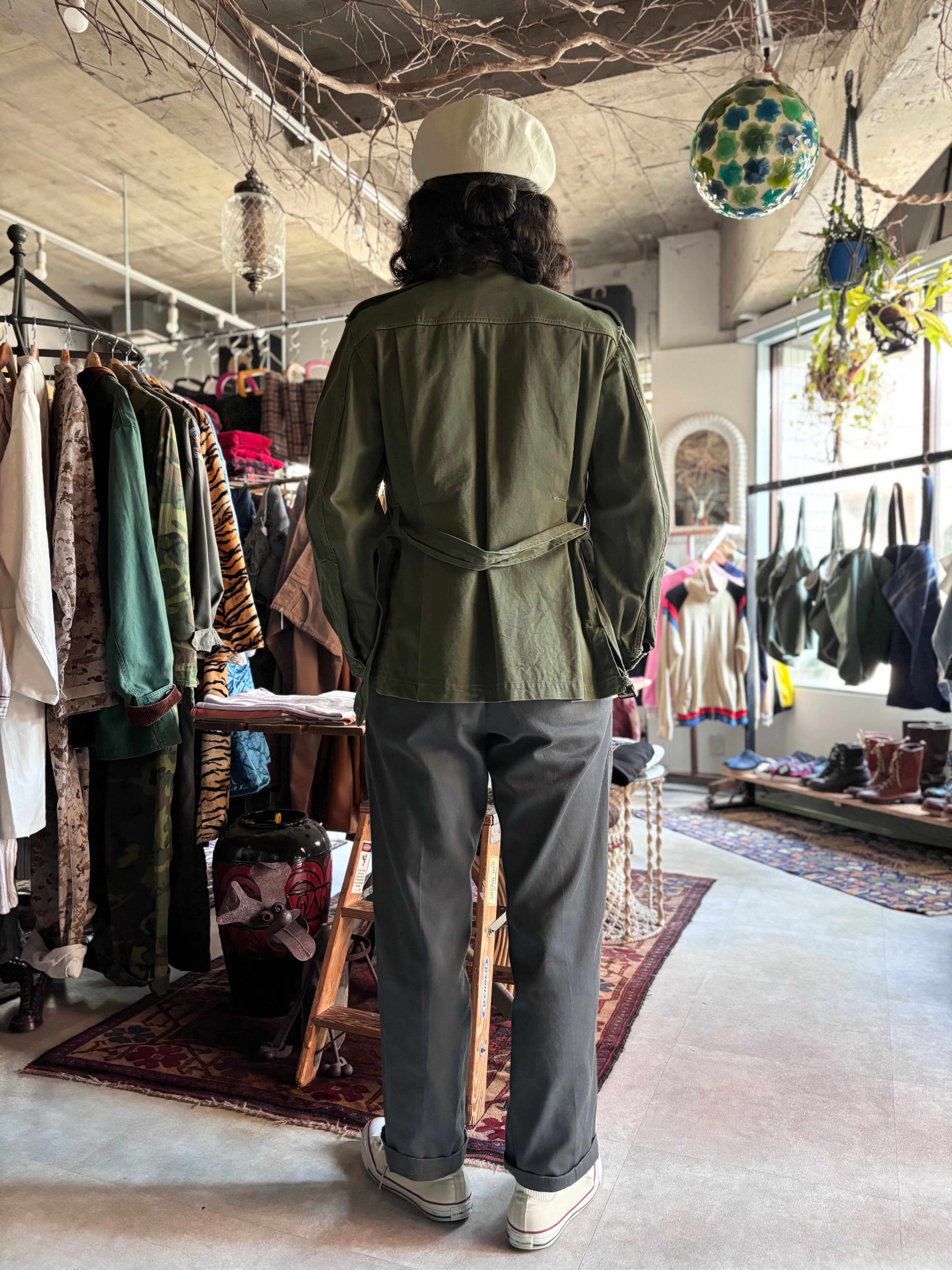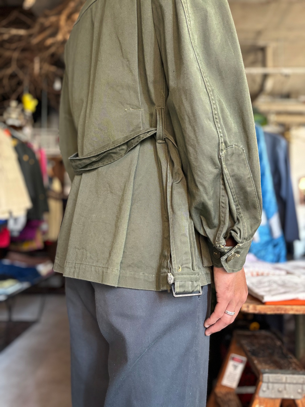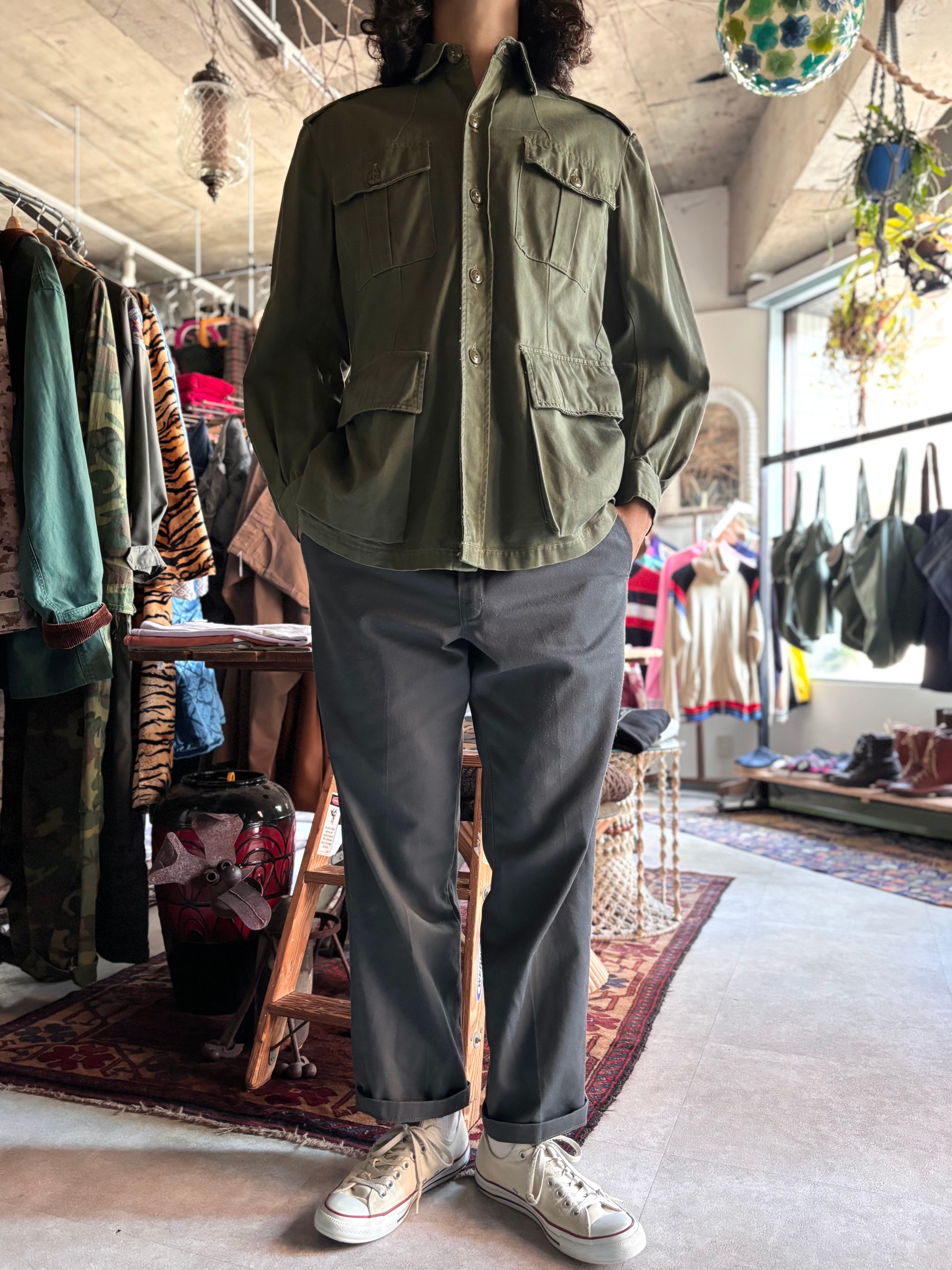 しっかりめのコットンツイル生地。オーセンティックフィット。ディテールや縫製から70s前後のユーロミリタリーものと推定。モダンな印象の1着。