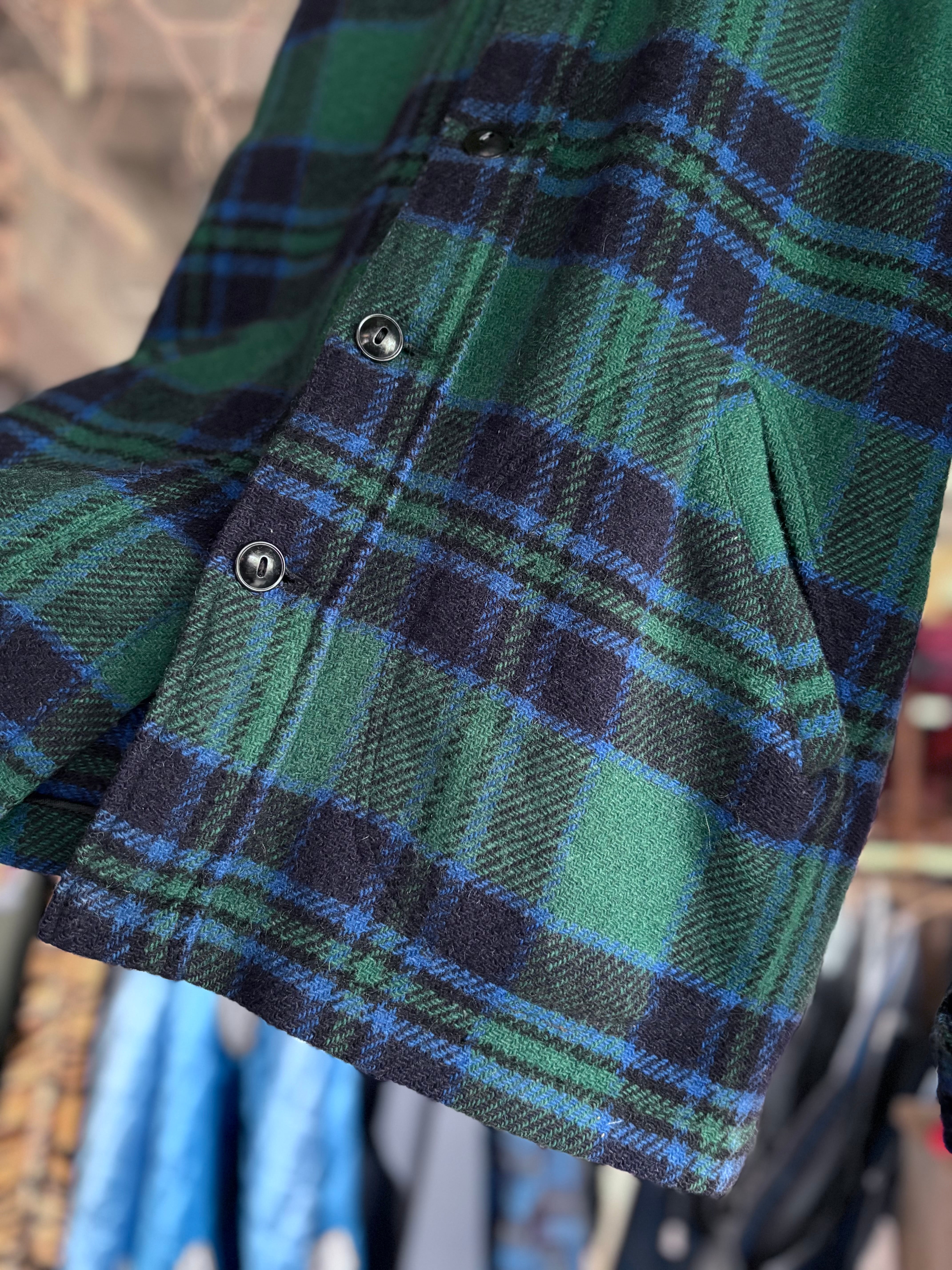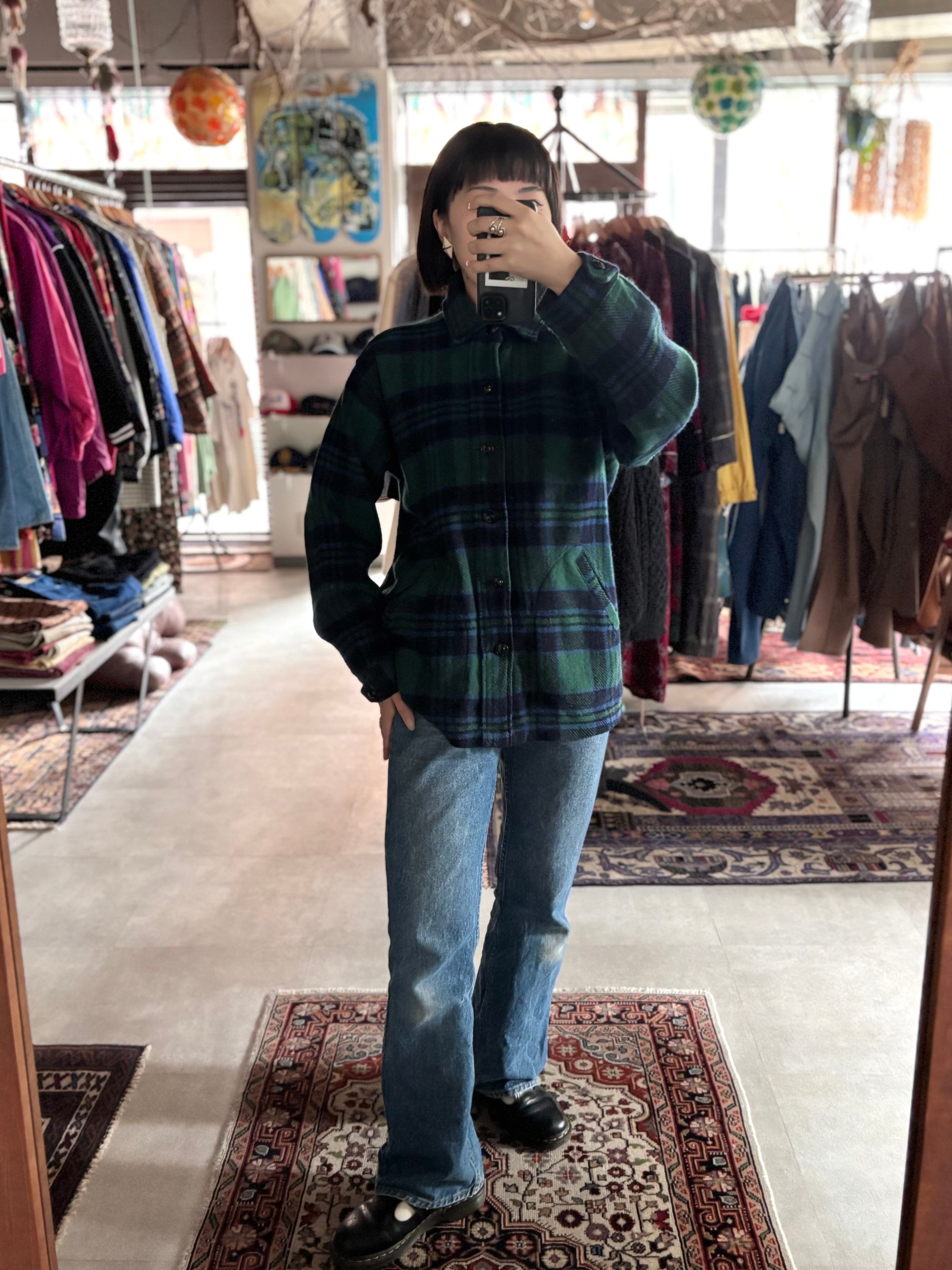 しっかりとした厚みのウール生地。リラックスフィット。ポケット付きで、シャツとジャケットの中間のようなアイテム。トラディショナルなブラックウォッチ柄。カジュアルかつスマートな印象で、大人の女性におすすめです◎
