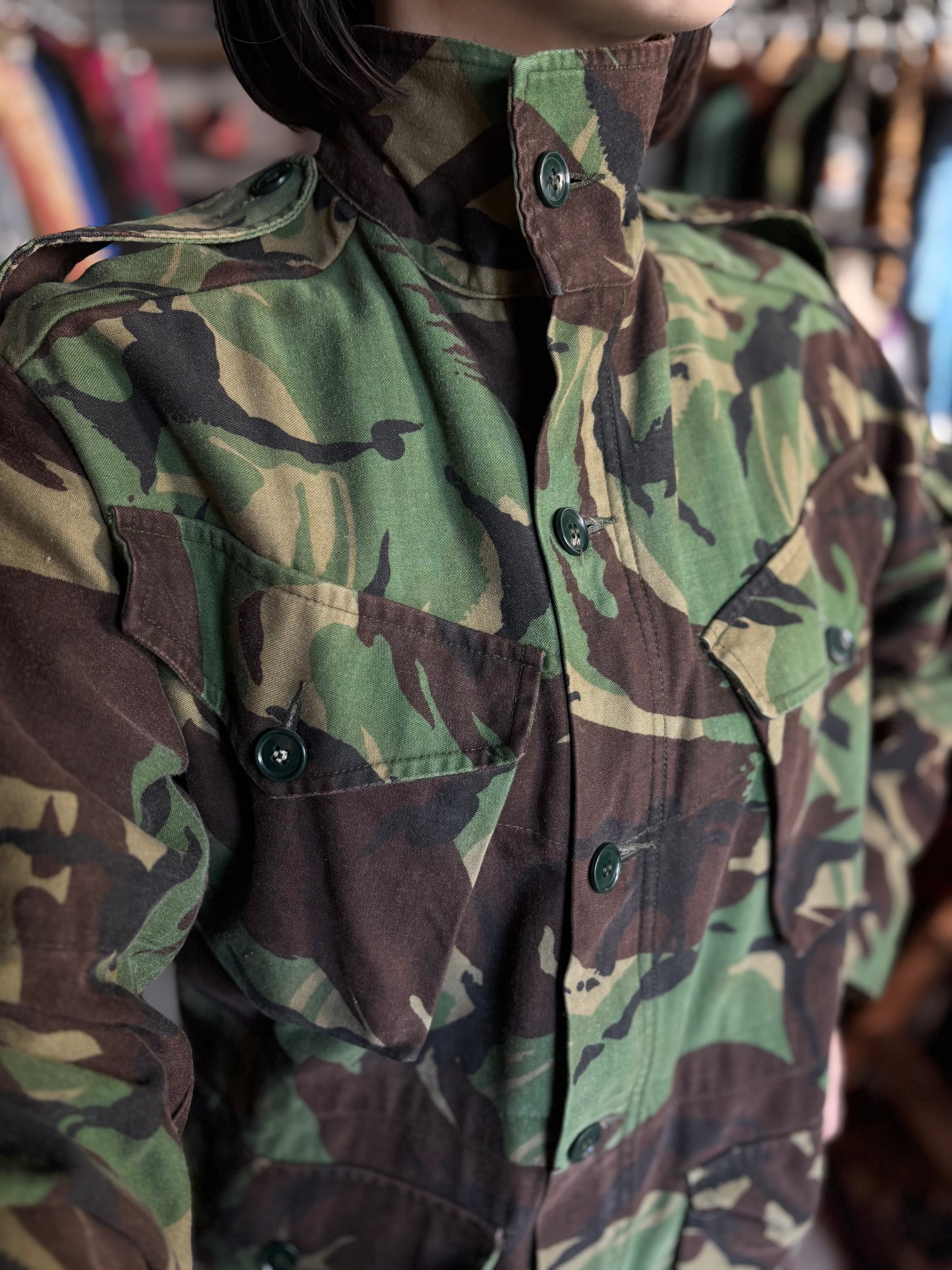 柔らかめのコットンポリエステル素材。ジャストフィット。綺麗なパターンが際立つミリタリージャケット。ユニセックスでおすすめです。