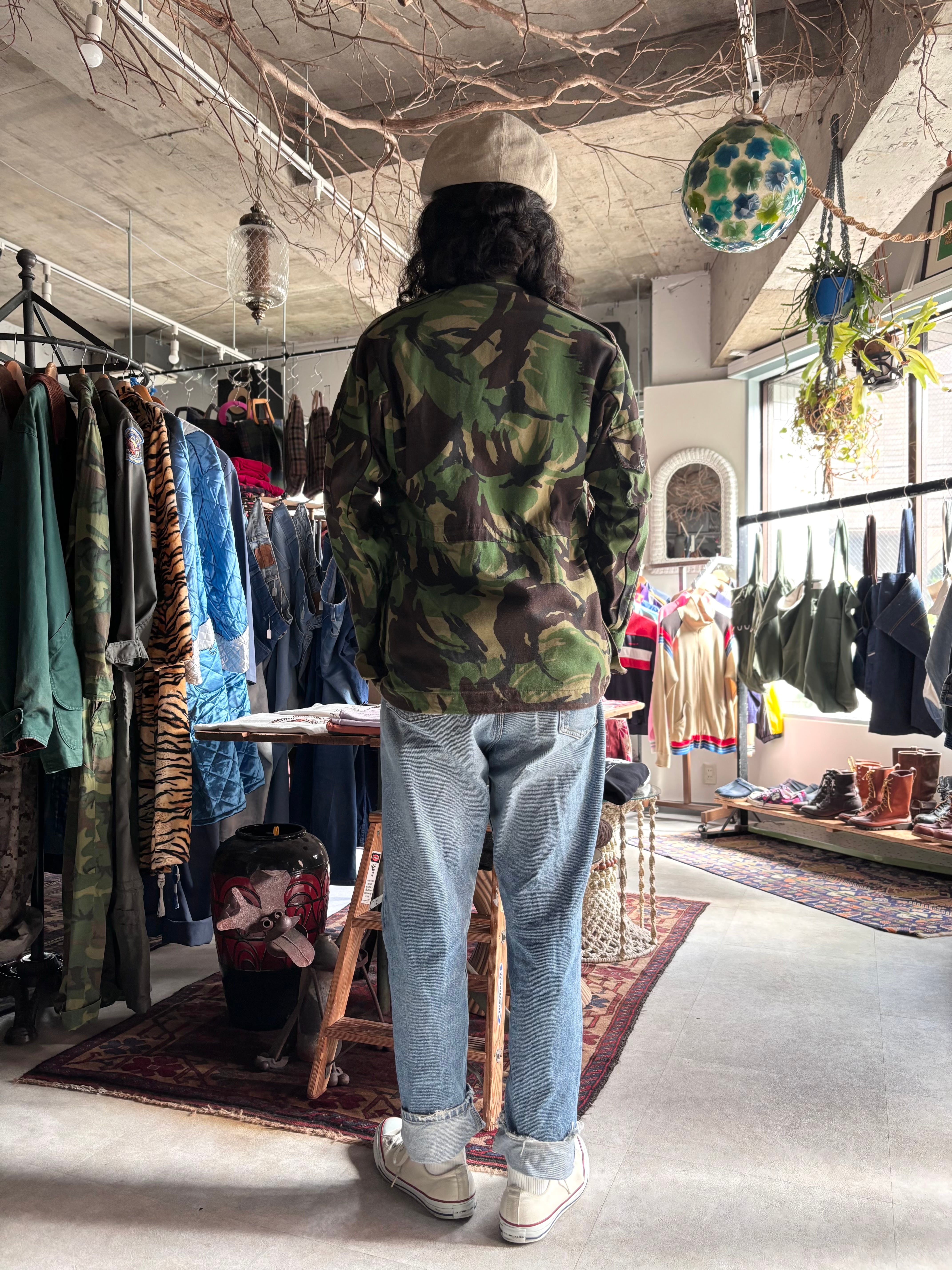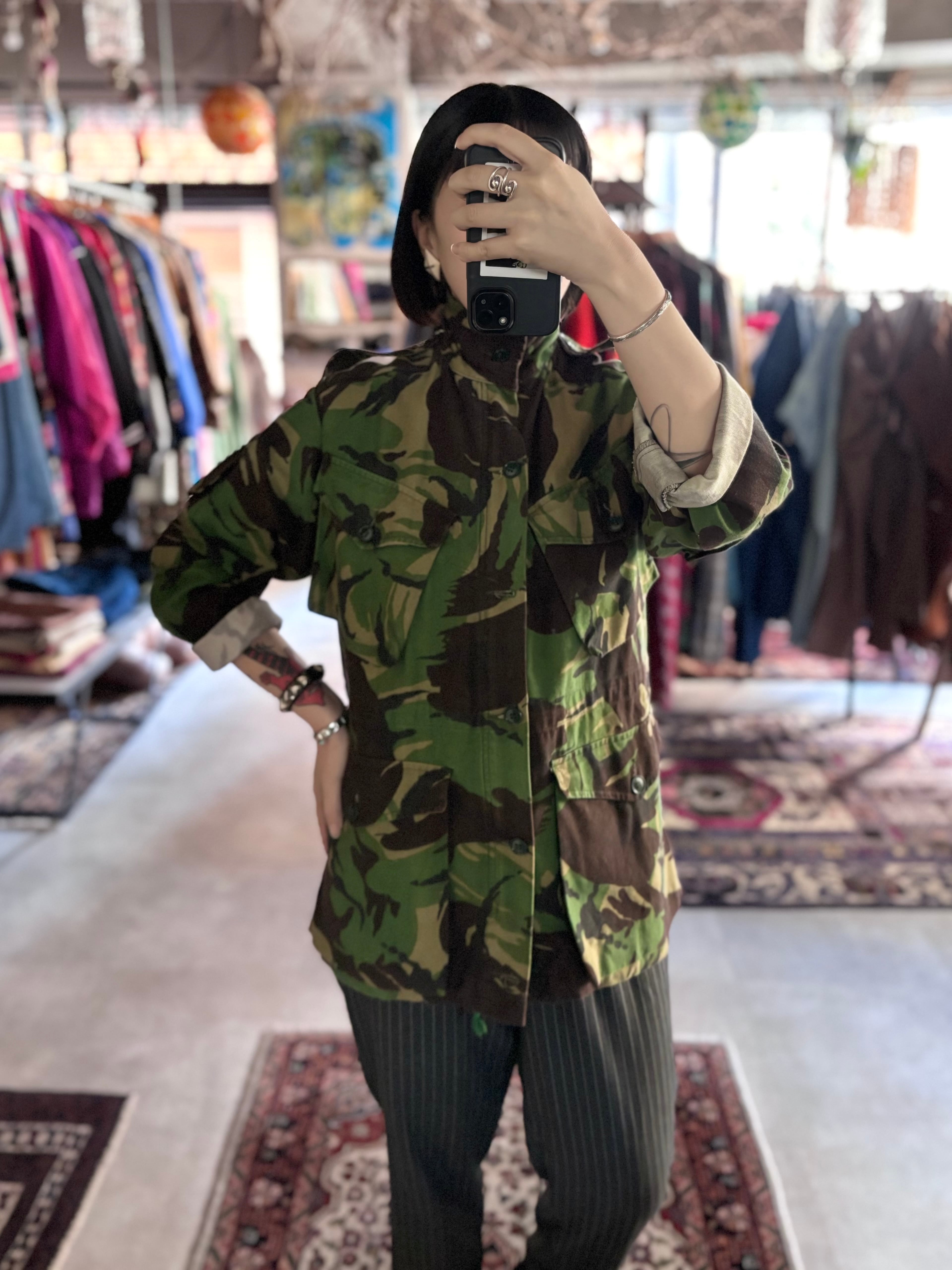 柔らかめのコットンポリエステル素材。ジャストフィット。綺麗なパターンが際立つミリタリージャケット。ユニセックスでおすすめです。