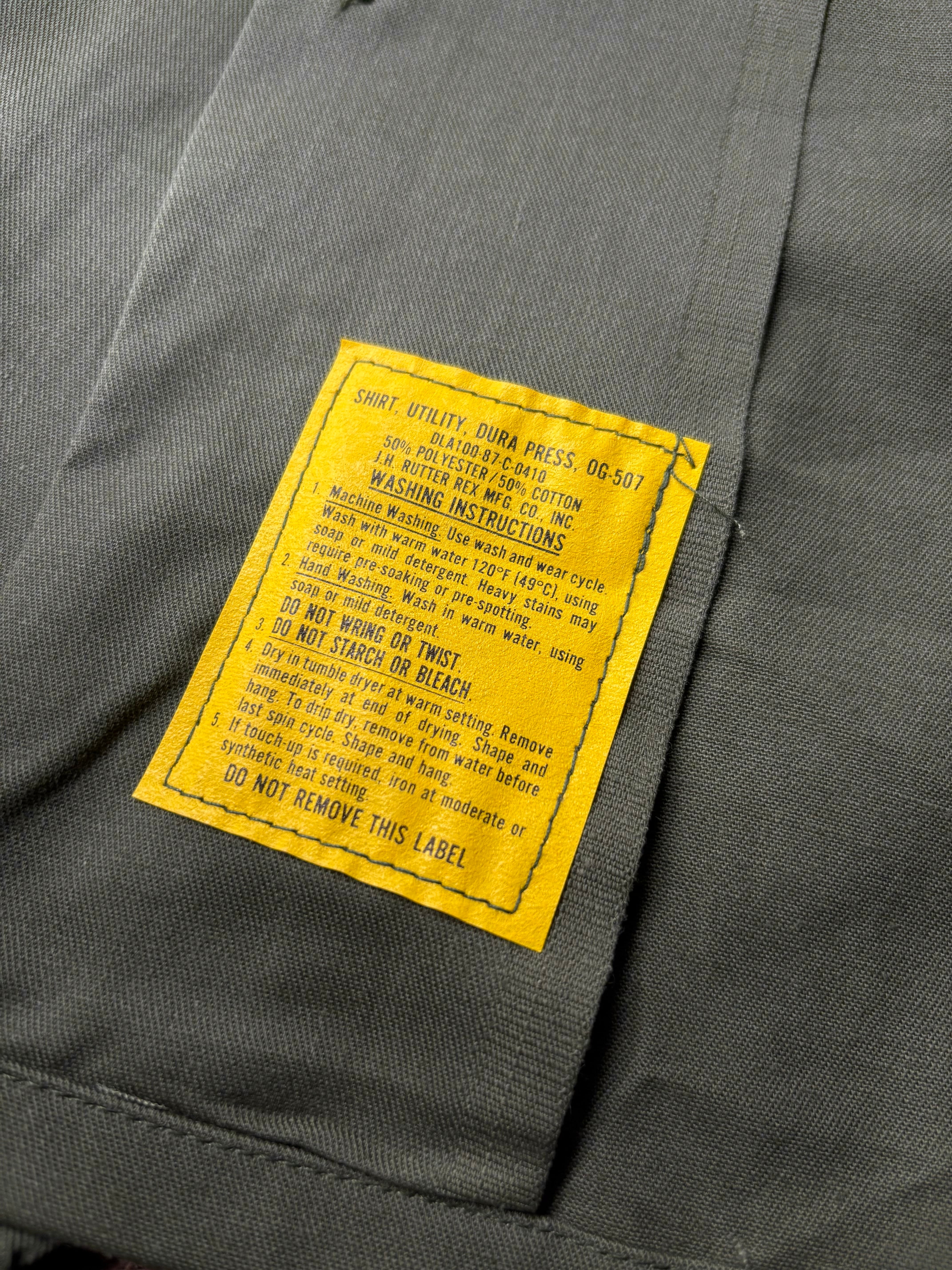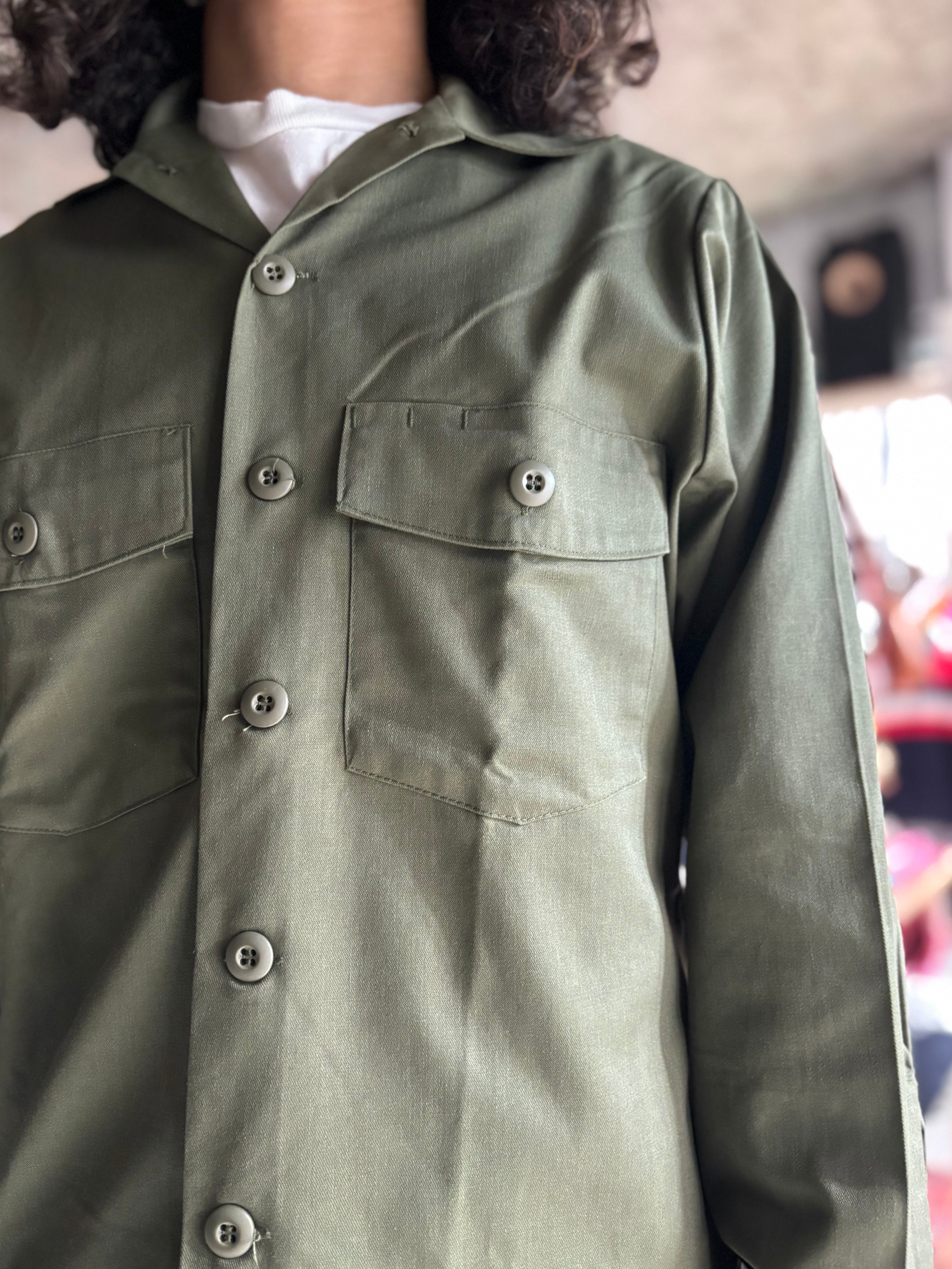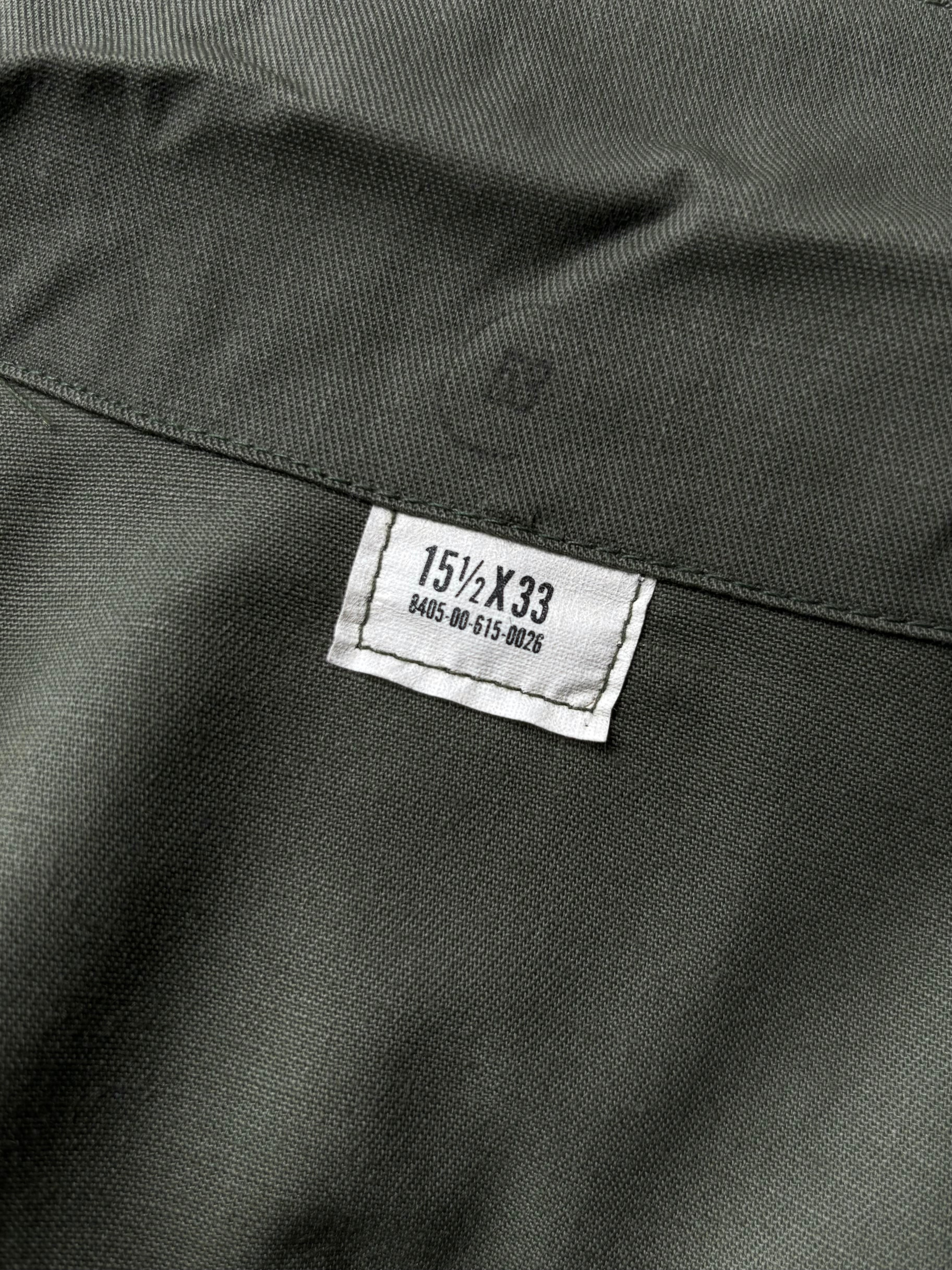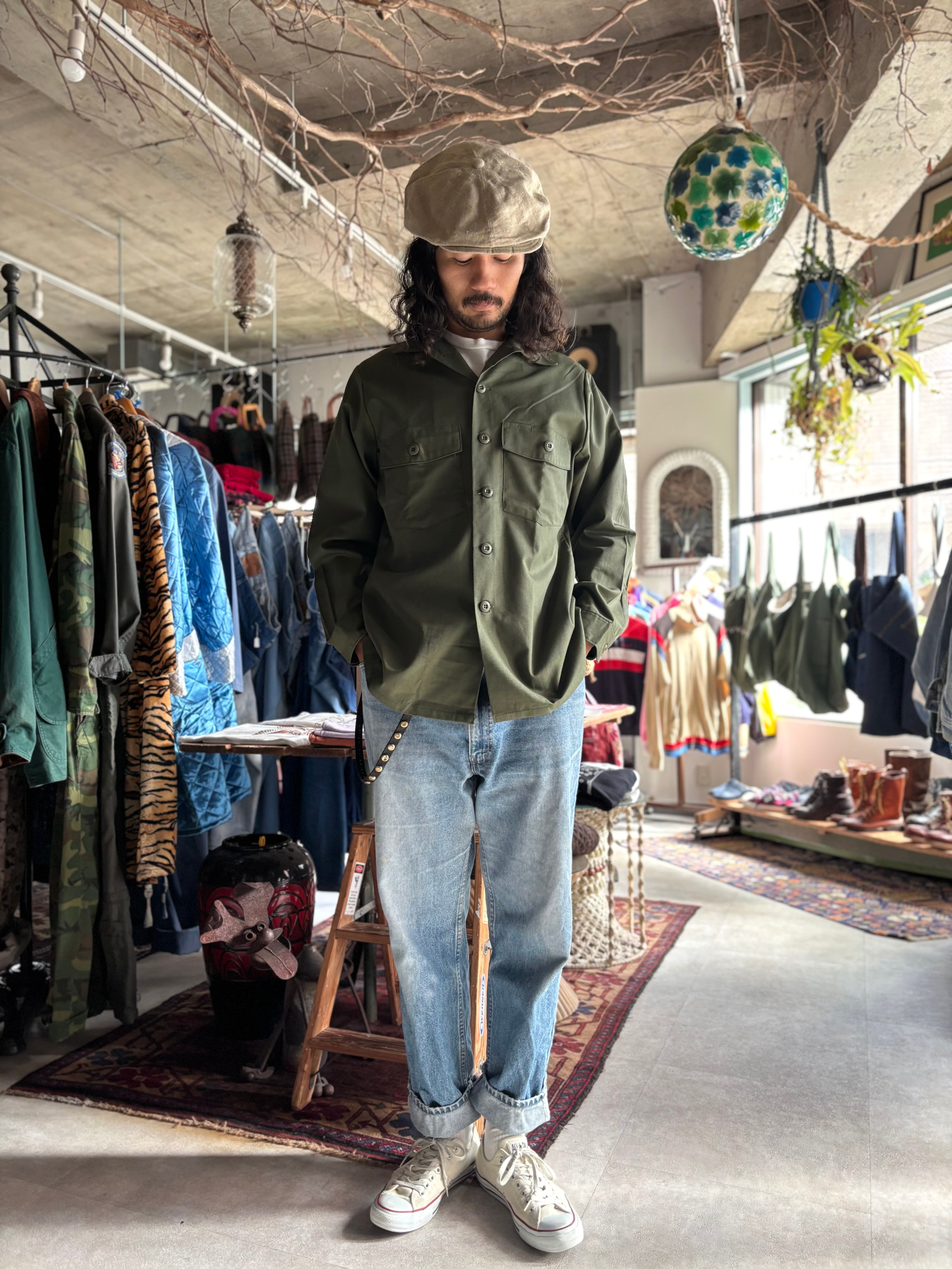 ハリのあるコットンポリエステル素材。オーセンティックフィット。最もスタンダードなユーティリティシャツ。80s DEAD STOCK モデル。