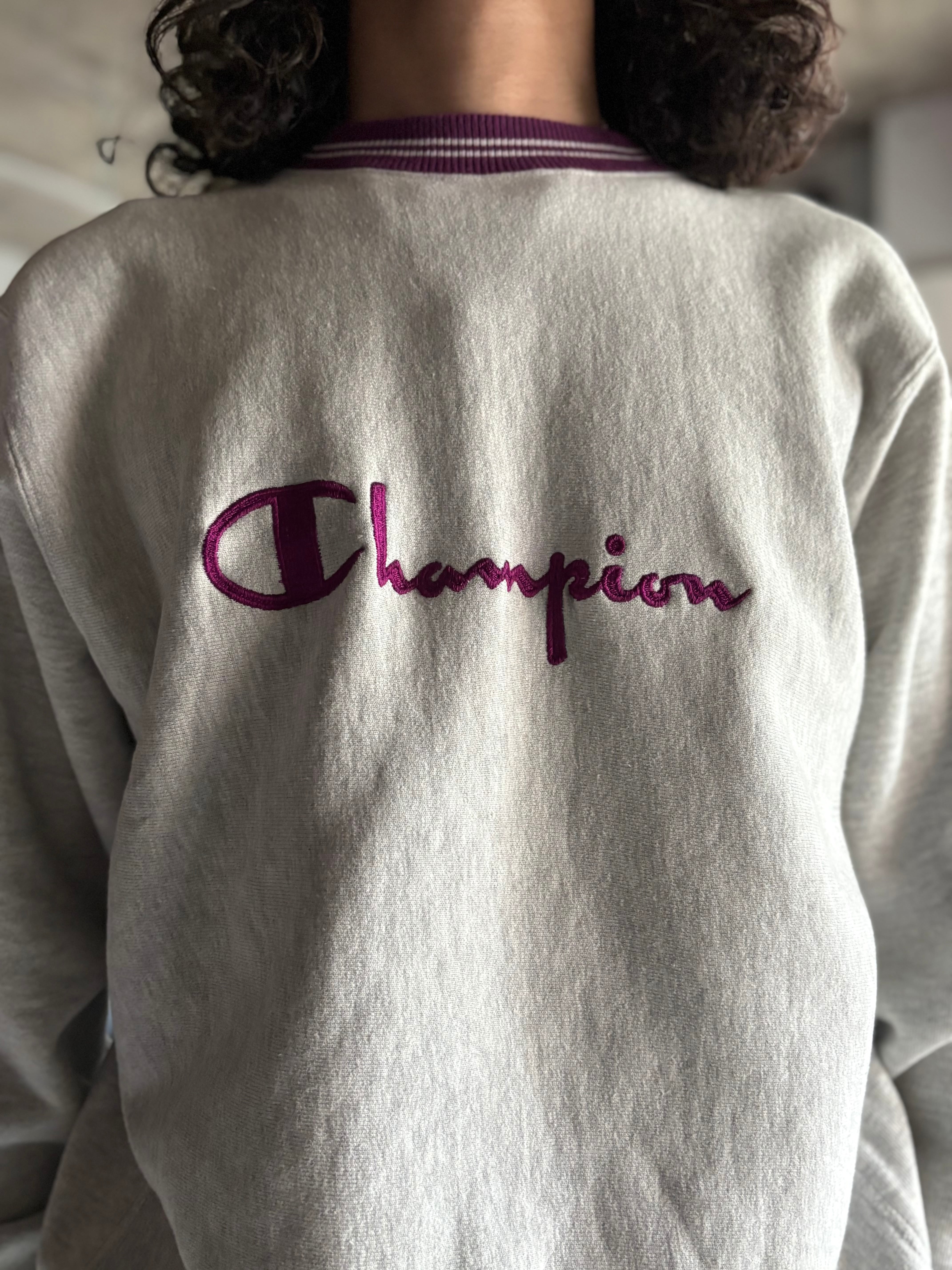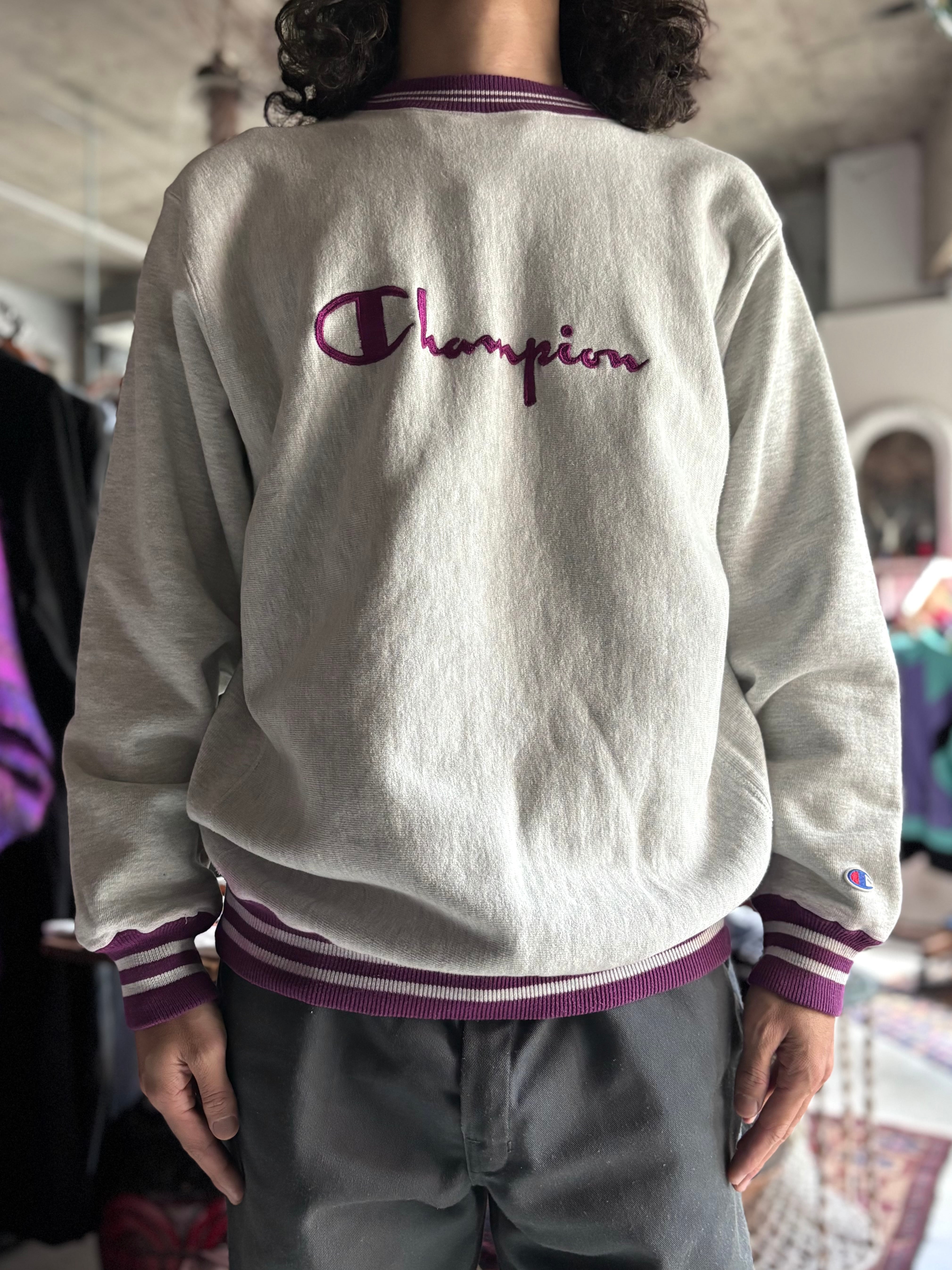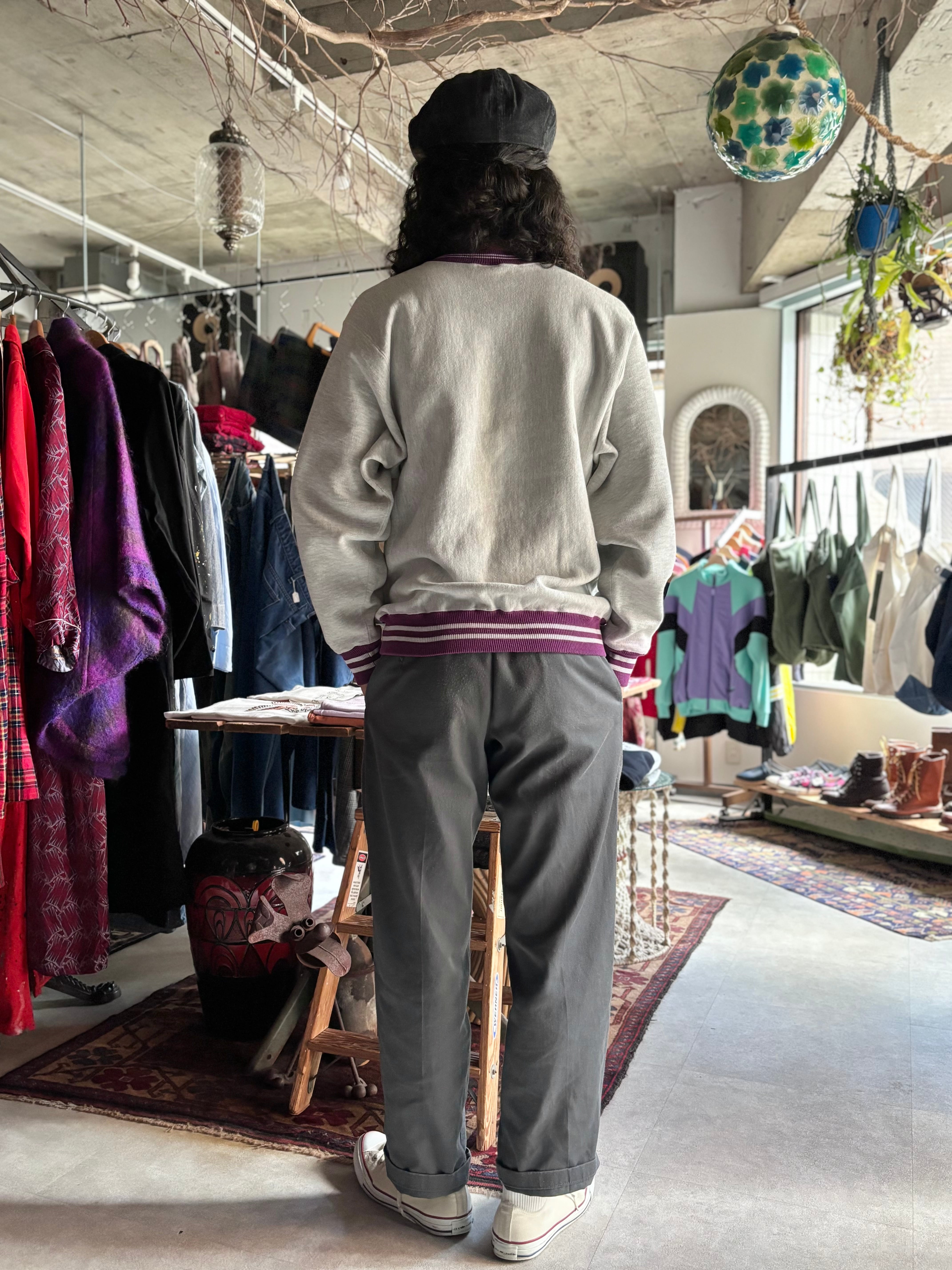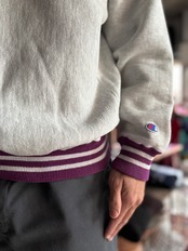 しっかりした厚みのコットン素材。リラックスシルエット。USA製のVINTAGEリバースウィーブ。リブラインにフロントにロゴ刺繍が入るタイプ。