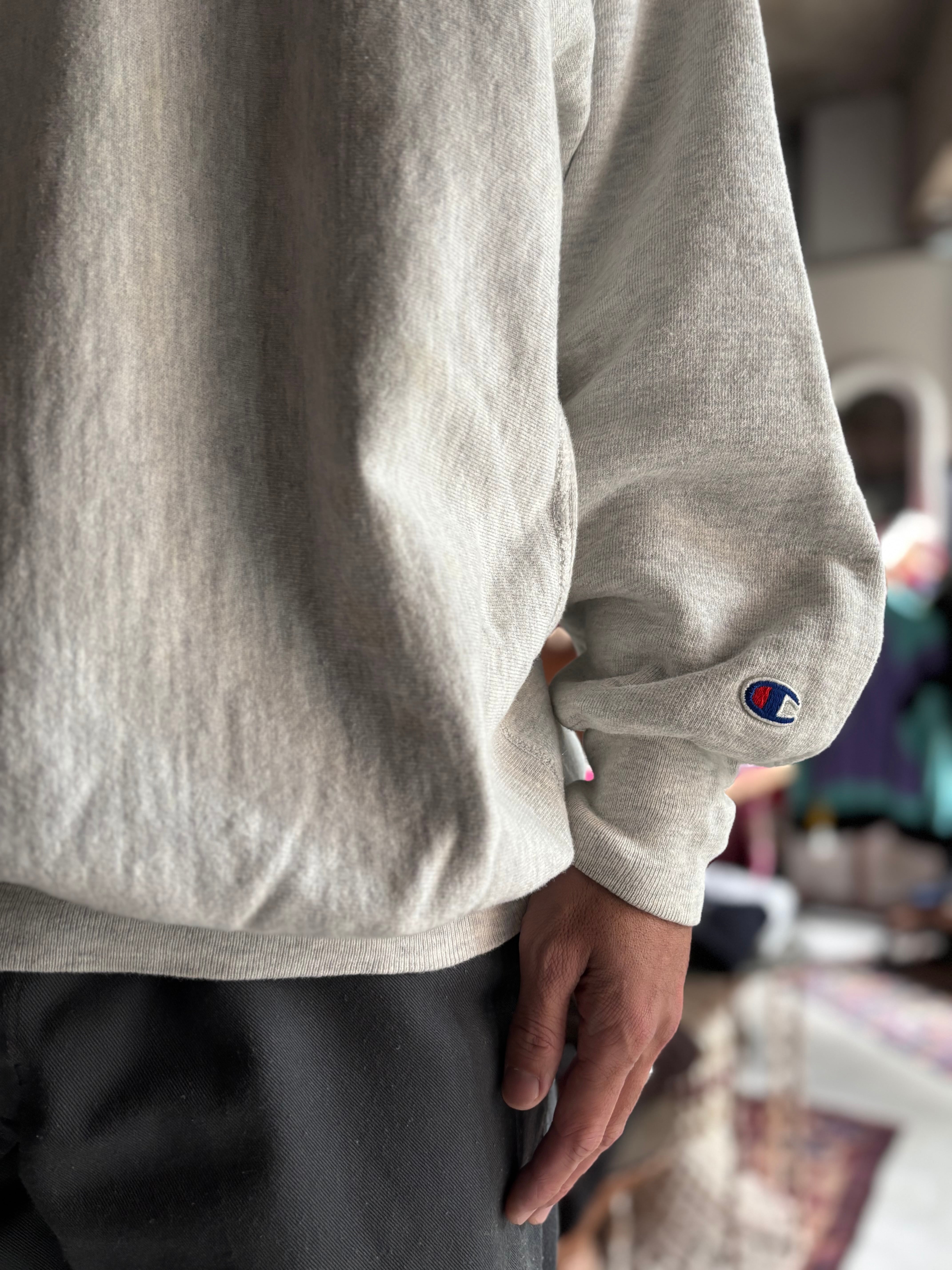 しっかりした厚みのコットン素材。リラックスシルエット。胸にワッペンの剥がし跡あり。USA製のVINTAGEリバースウィーブ。