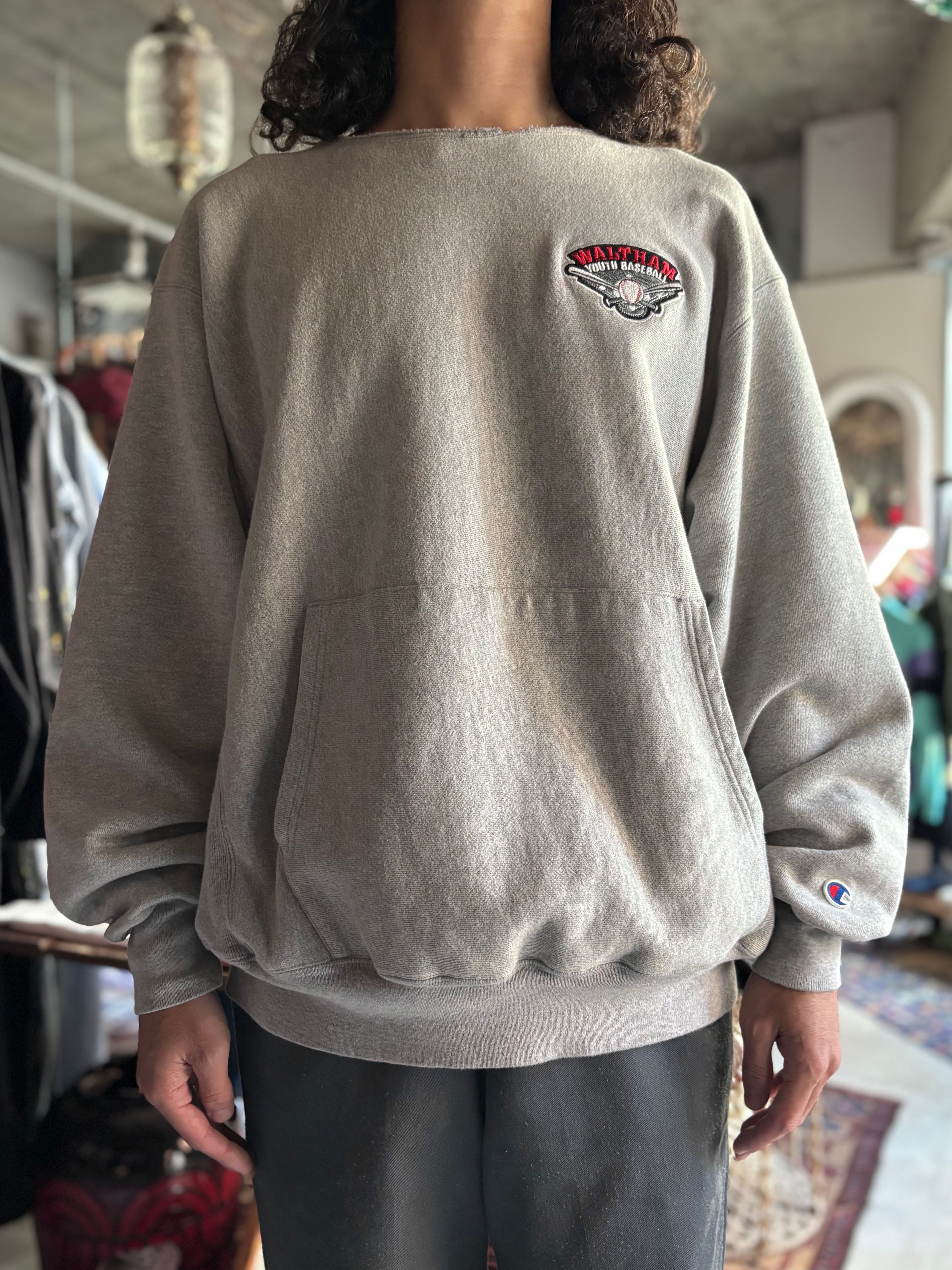 しっかりした厚みのコットン素材。リラックスシルエット。胸に刺繍グラフィック、フードカットオフ仕様。