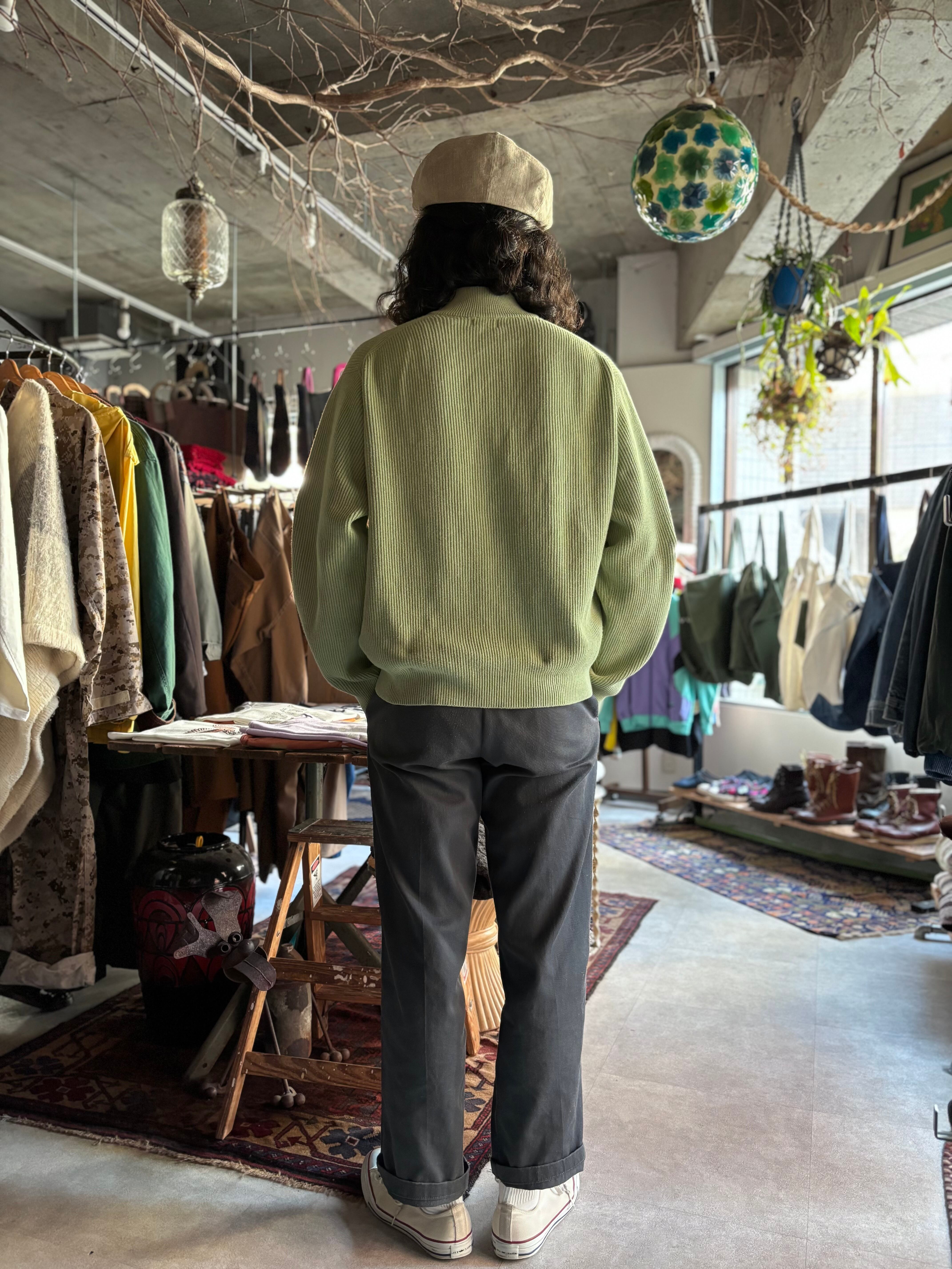 しっかりした厚みのコットンニット。コンパクトな着丈のリラックスフィット。ハーフジップ仕様。淡いライトグリーンカラー。肌あたりが良く、スウェット感覚で着用できるニットです。ユニセックスでおすすめ◎