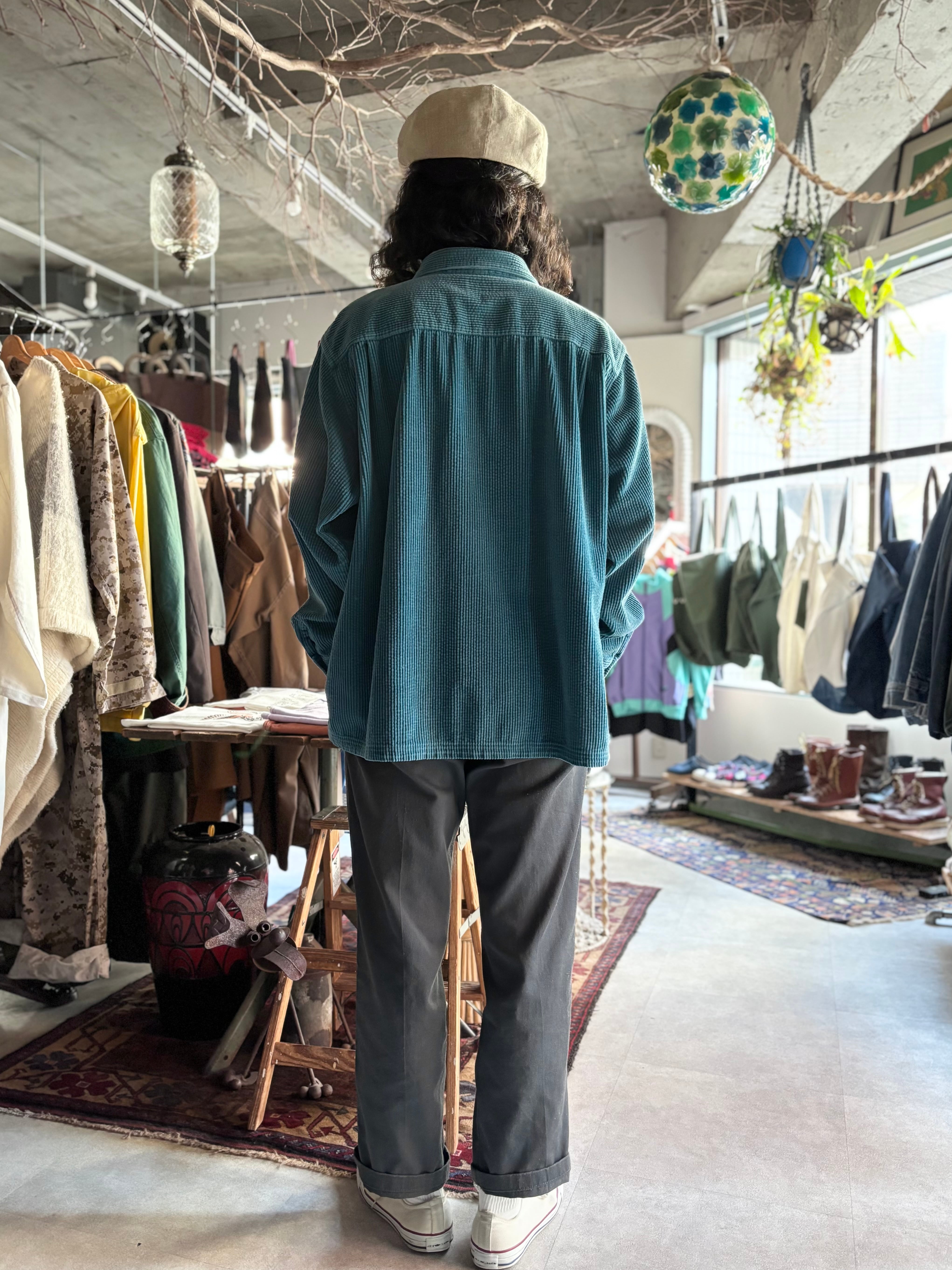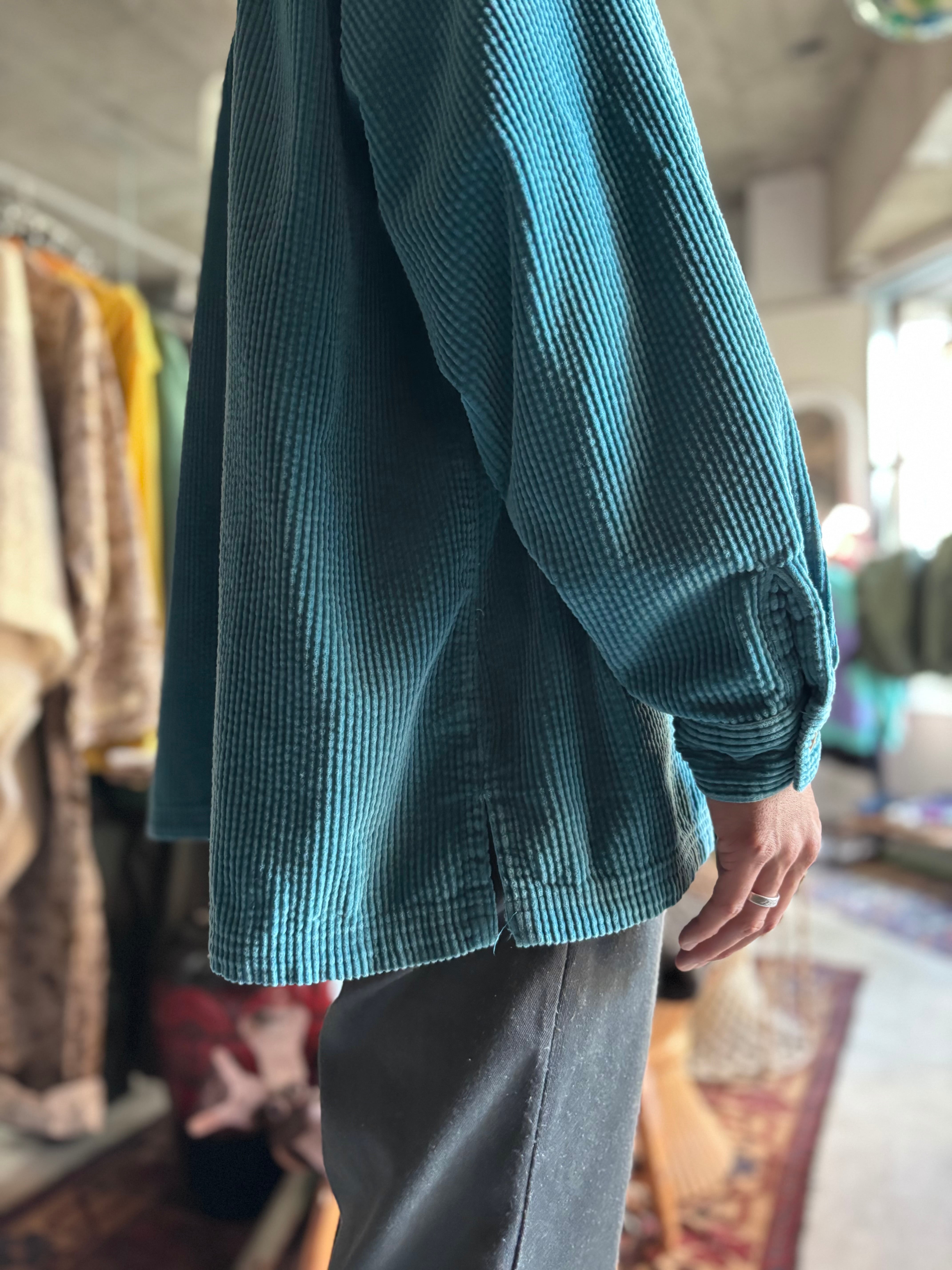 太軸のコーデュロイシャツ。リラックスフィット。くすみライトブルーカラー。羽織りとしても抜群のアイテムです。ユニセックスでおすすめ◎