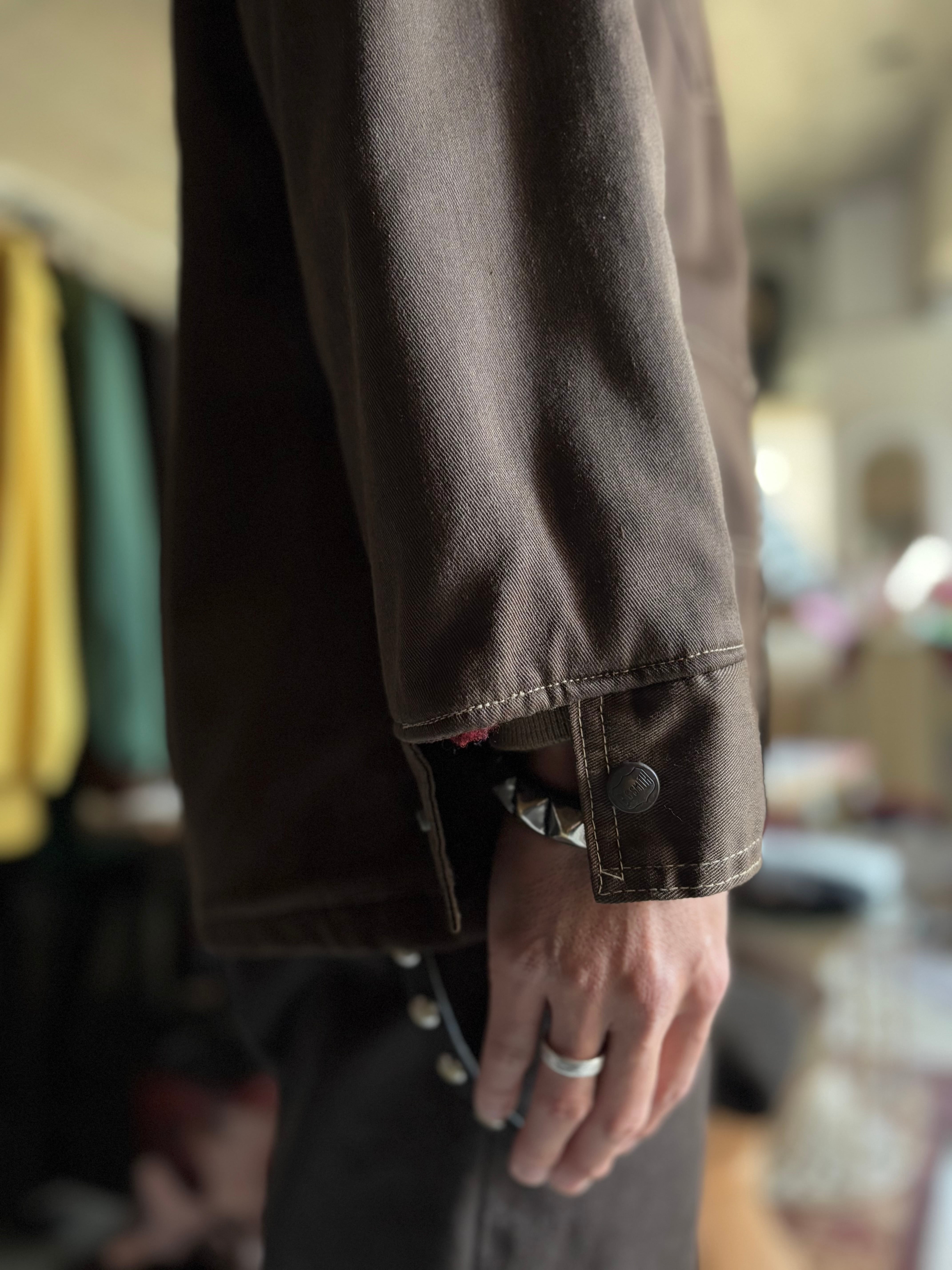 コットンポリのツイル生地。リサイクルウールライナー。オーセンティックフィット。スタンダードな4ポケットスタイル。珍しいチョコブラウンカラーに、軽めの着心地が魅力の良質vintage。