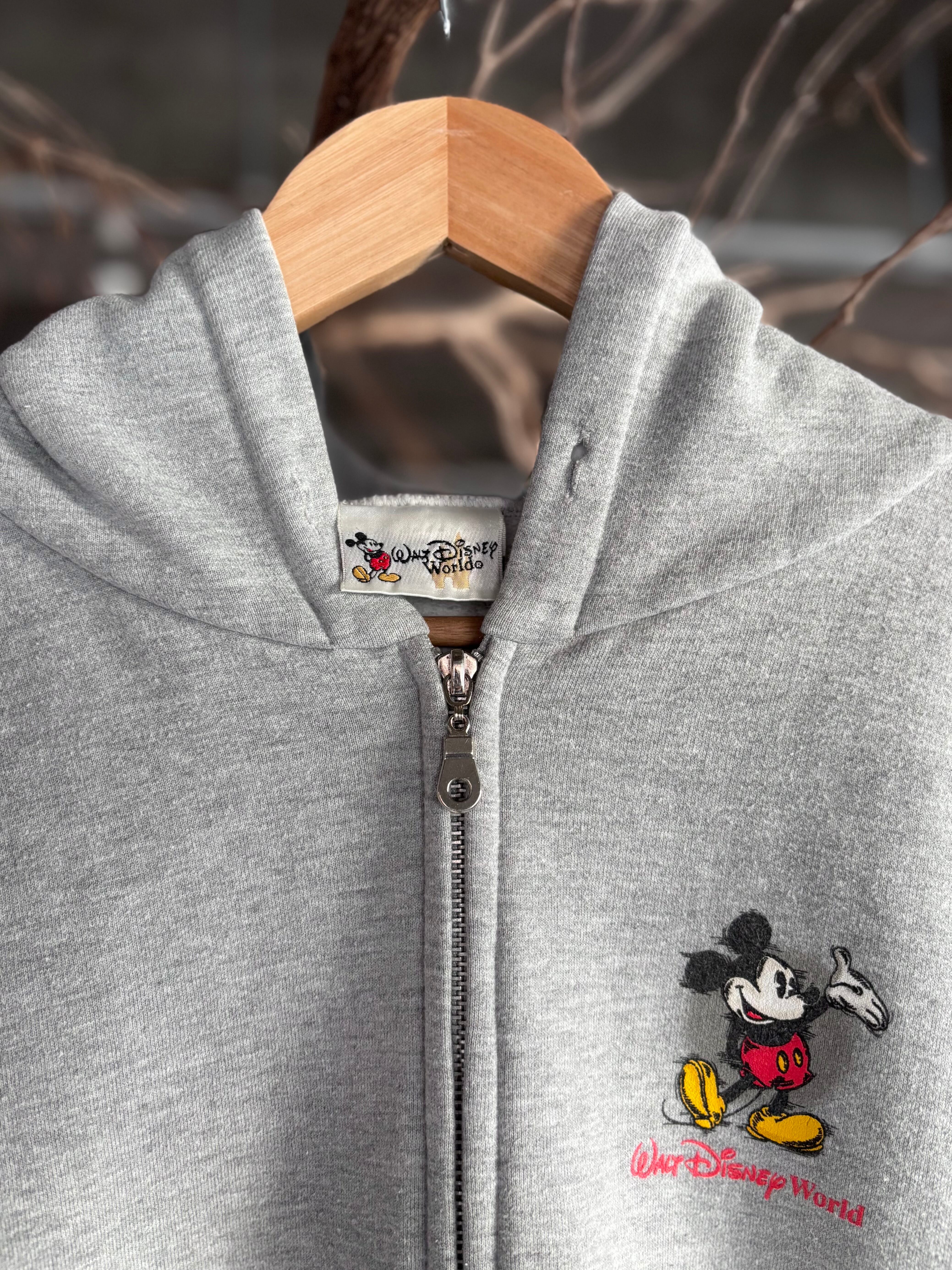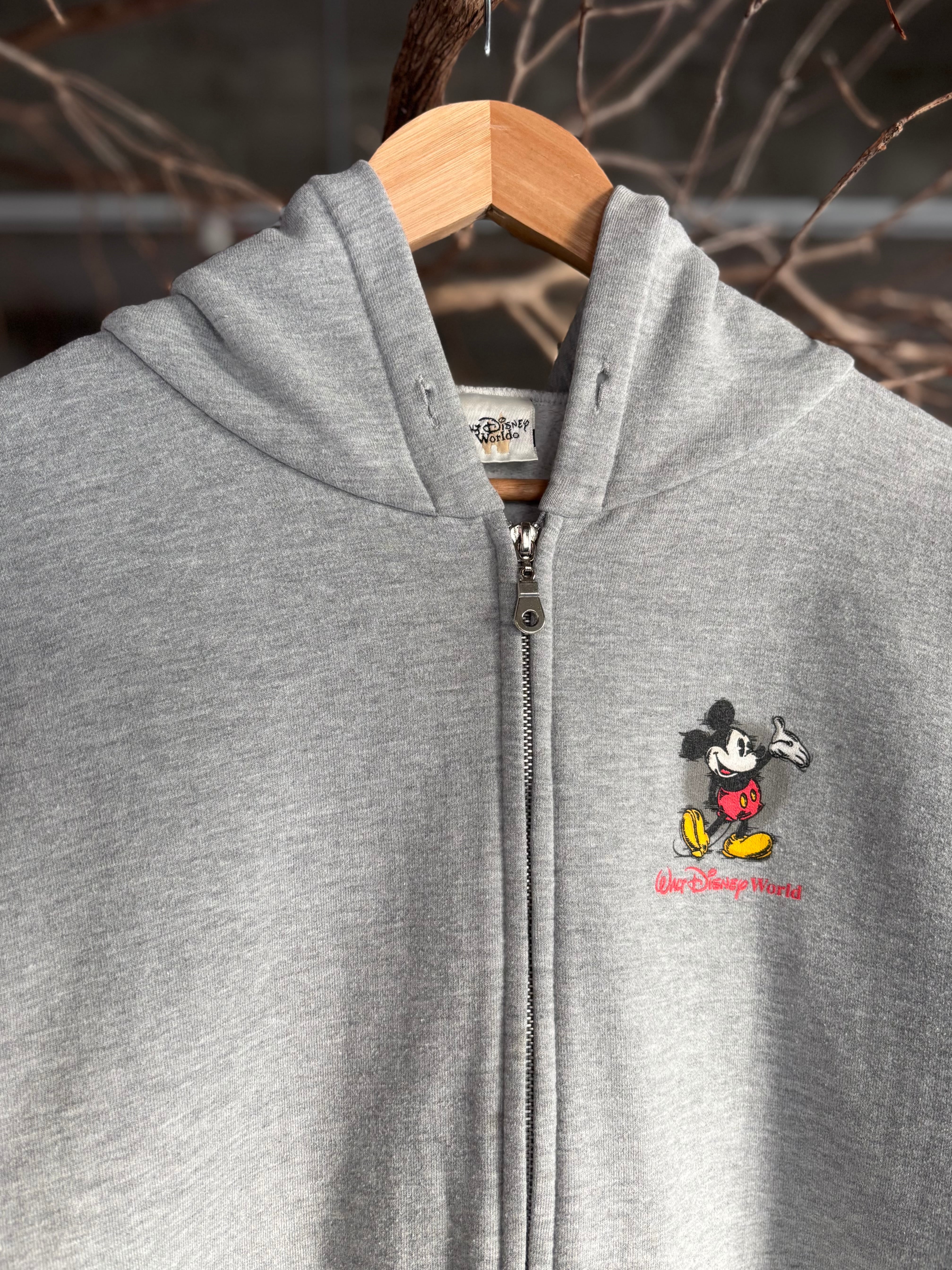 しっかりと厚みのある生地感のジップフーディー。リラックスフィット。左胸にミッキープリント入りのオフィシャル物。ユニセックスでおすすめです。