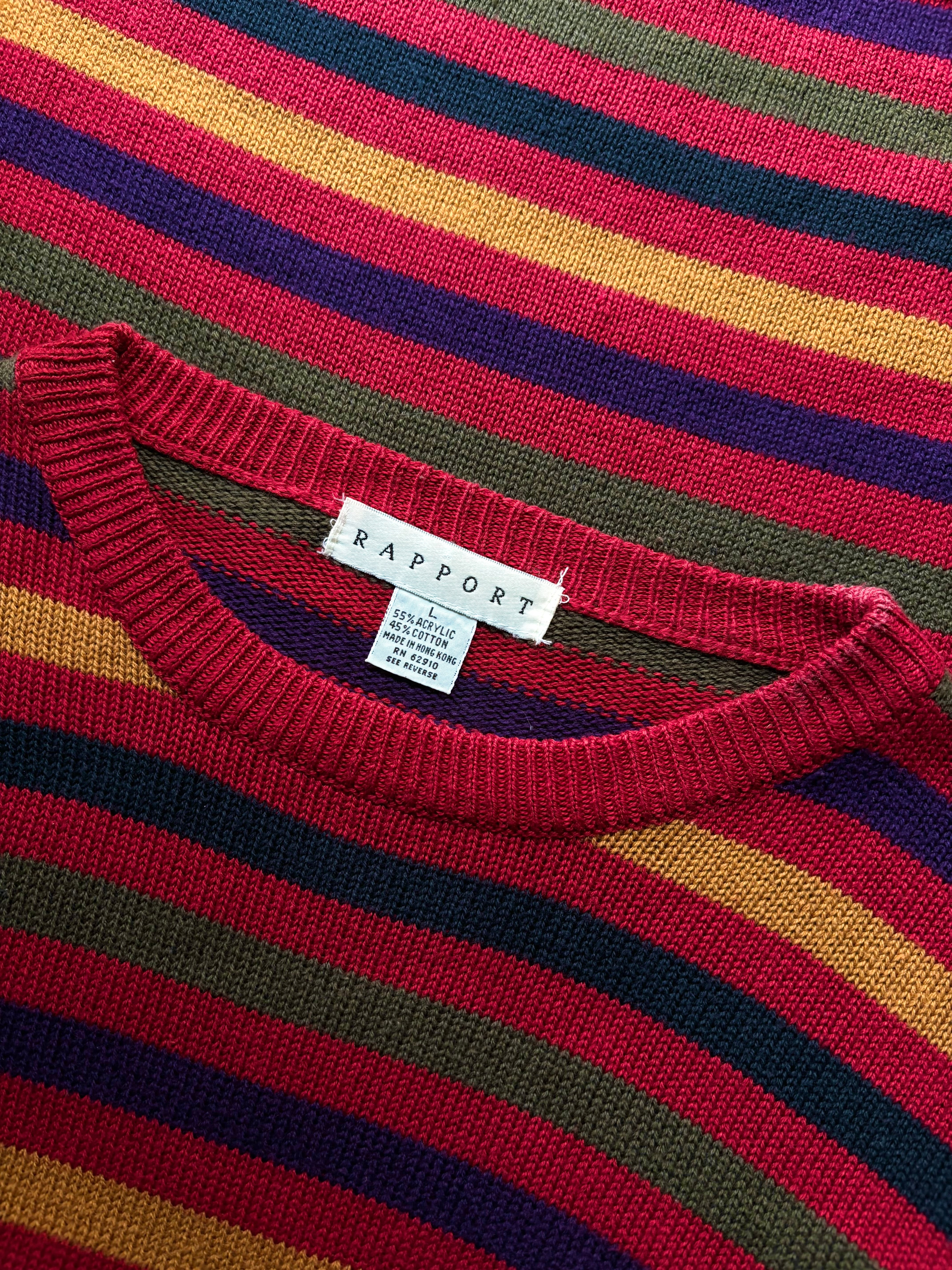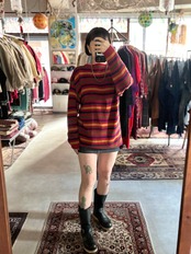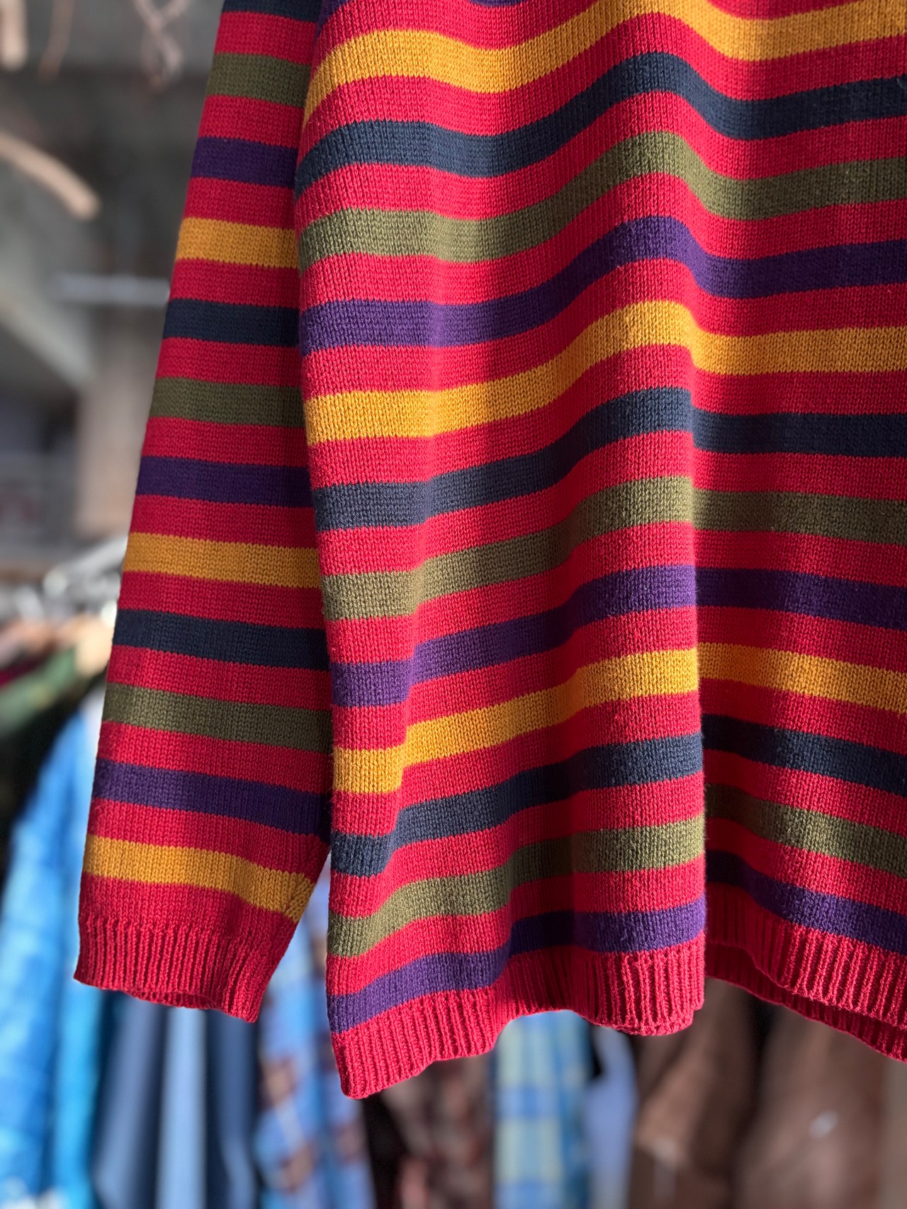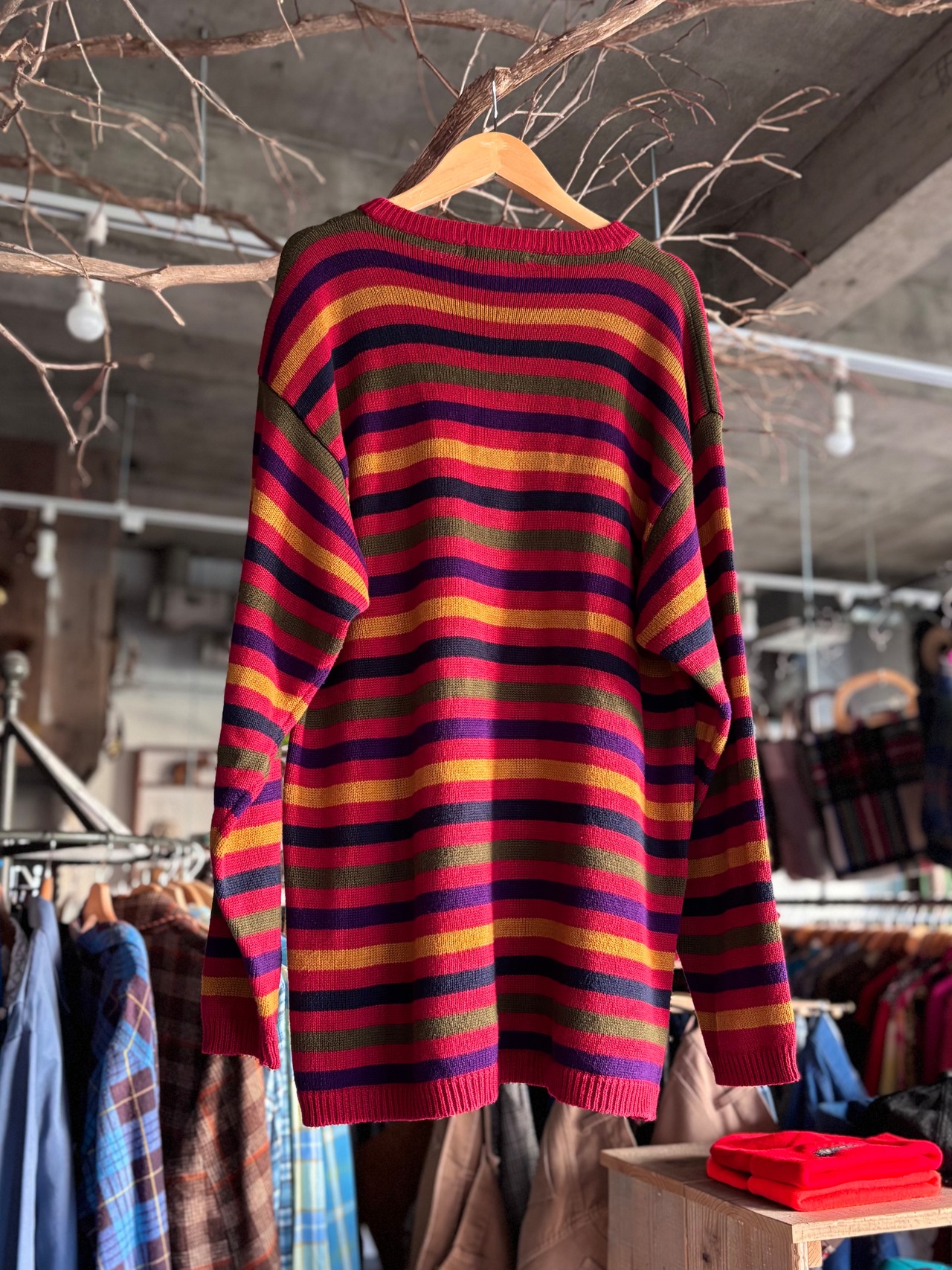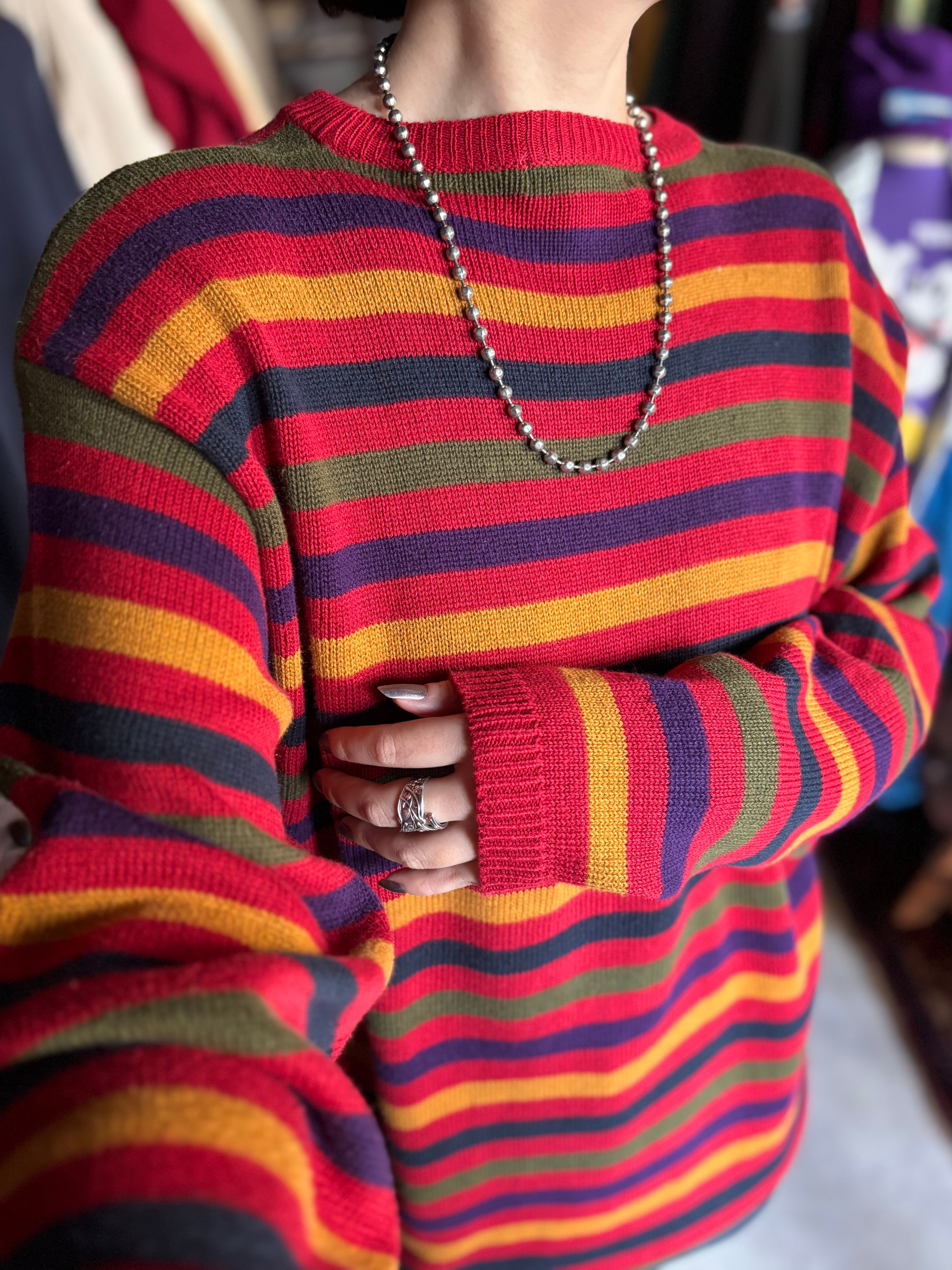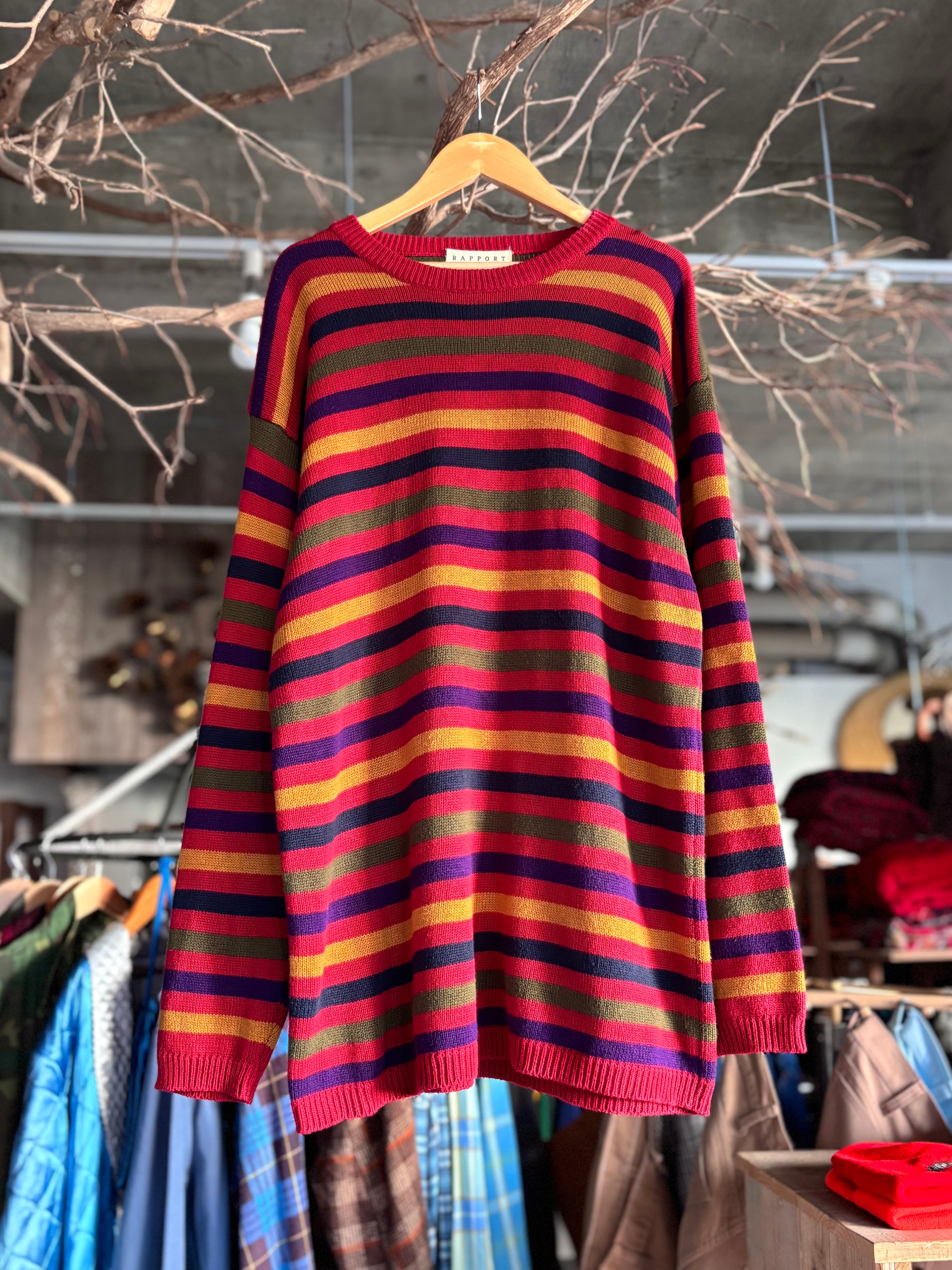 程よく薄手でやわらかいコットン×アクリル混紡素材のニット。リラックスフィット。インナーにも映えるマルチボーダー。カットソー感覚で着用できます◎ユニセックスでおすすめ。