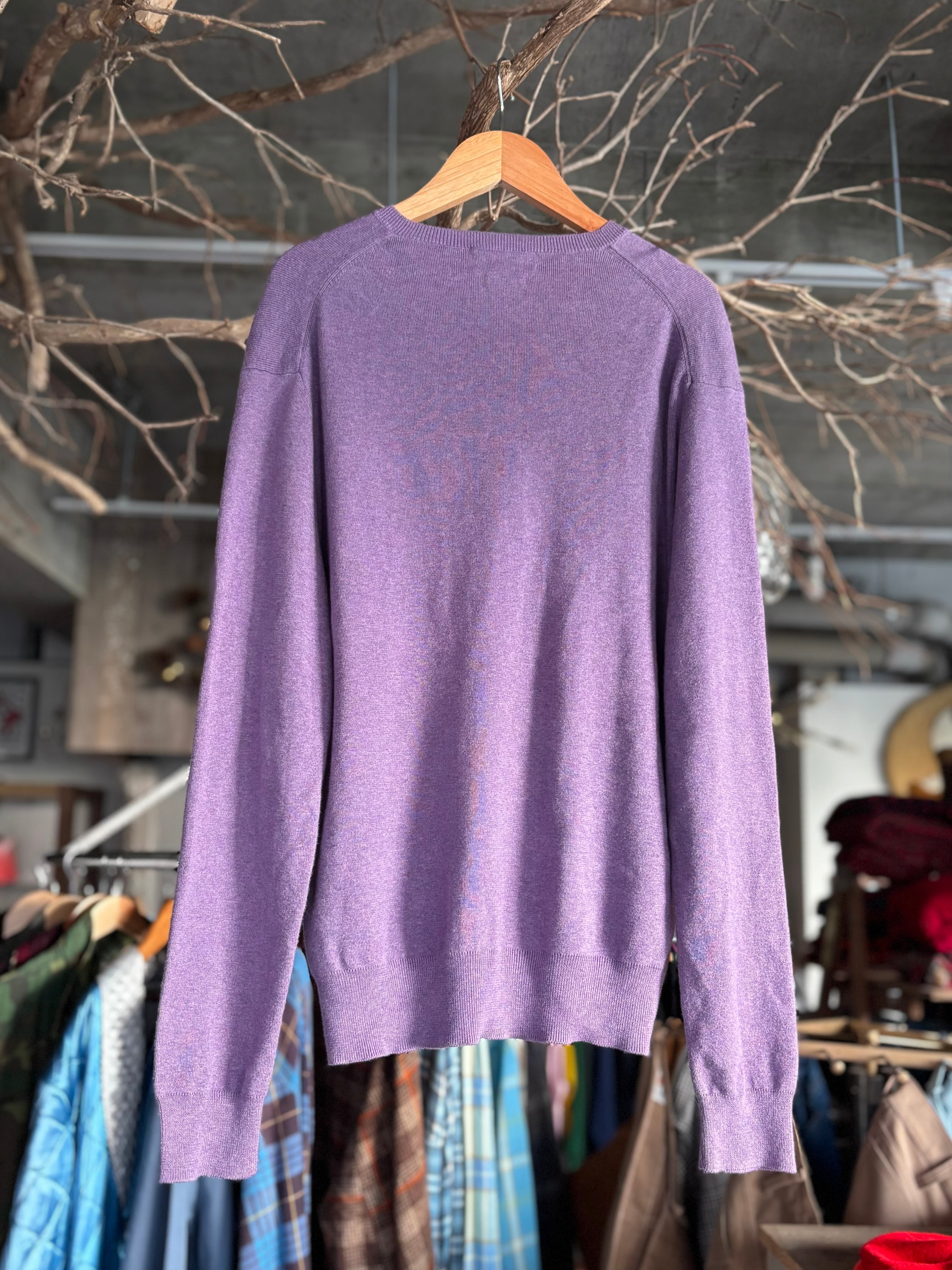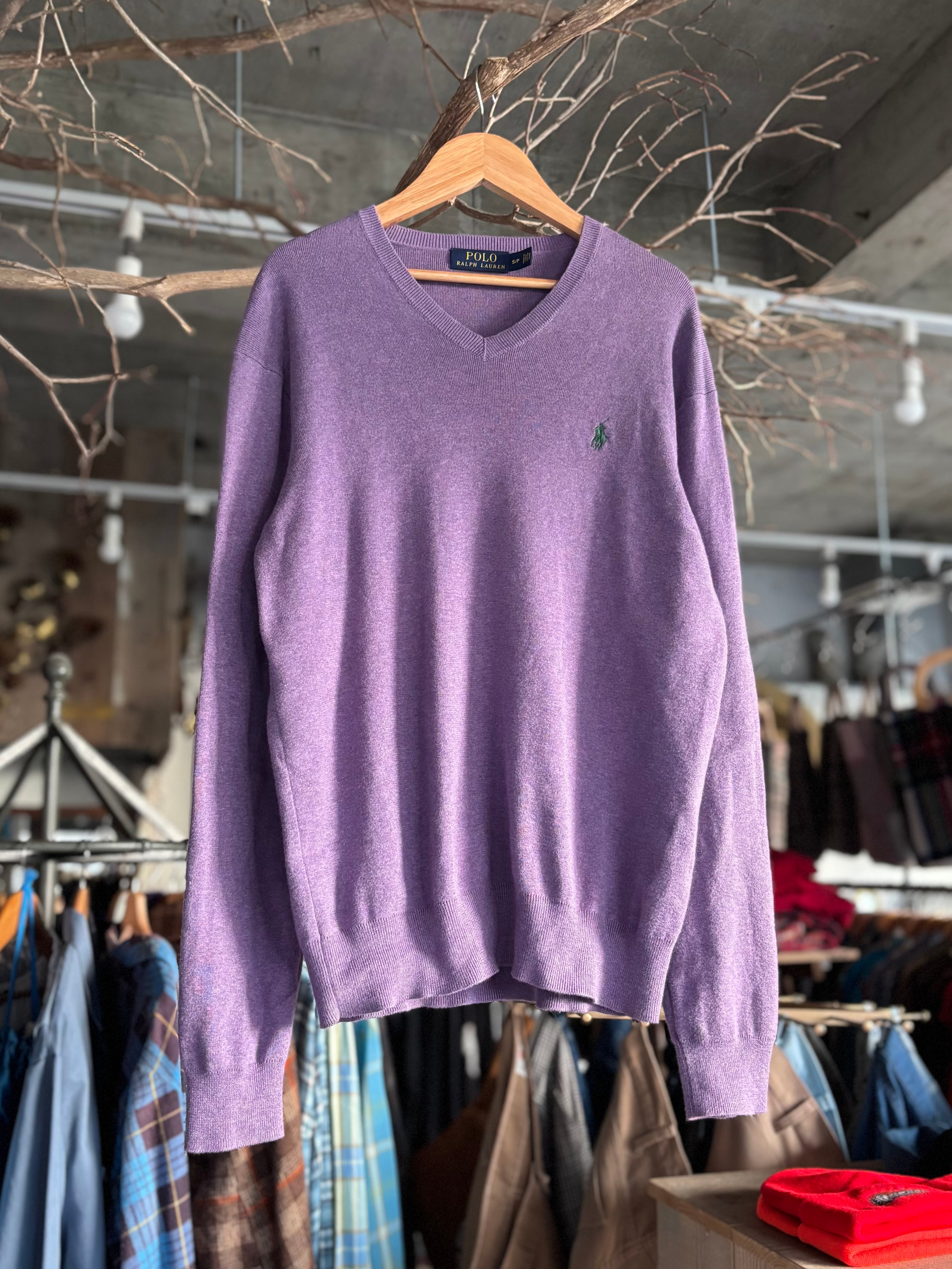 程よい厚みでなめらかな肌あたりのコットンカットソー。これ1枚で上品なRALPH LAUREN製。 S表記ですがタイトすぎずゆとりのあるフィット感。ややまるみのあるVネック仕様。インナーにも映えるライラックカラー。万能トップスをお探しの方におすすめです。