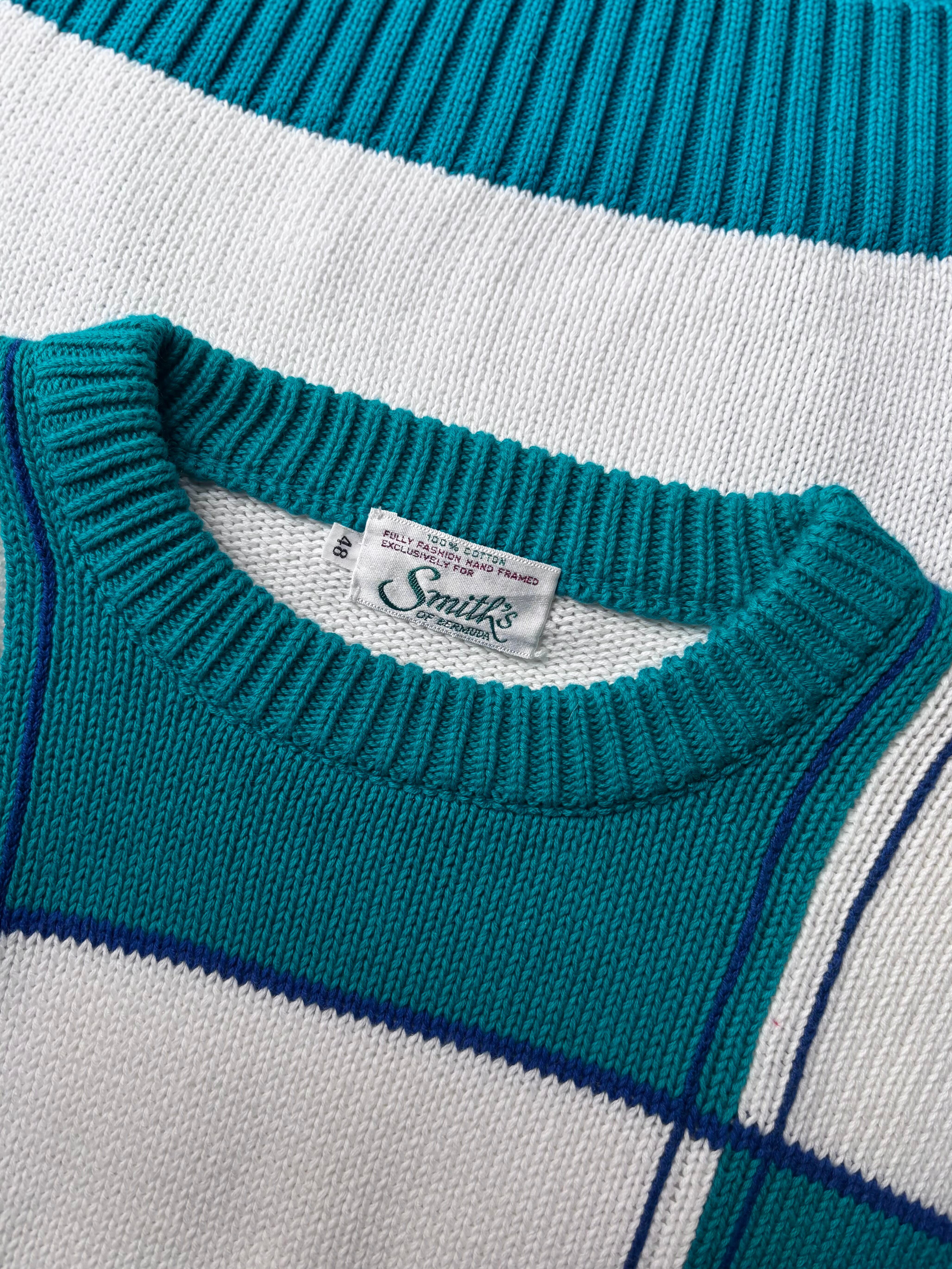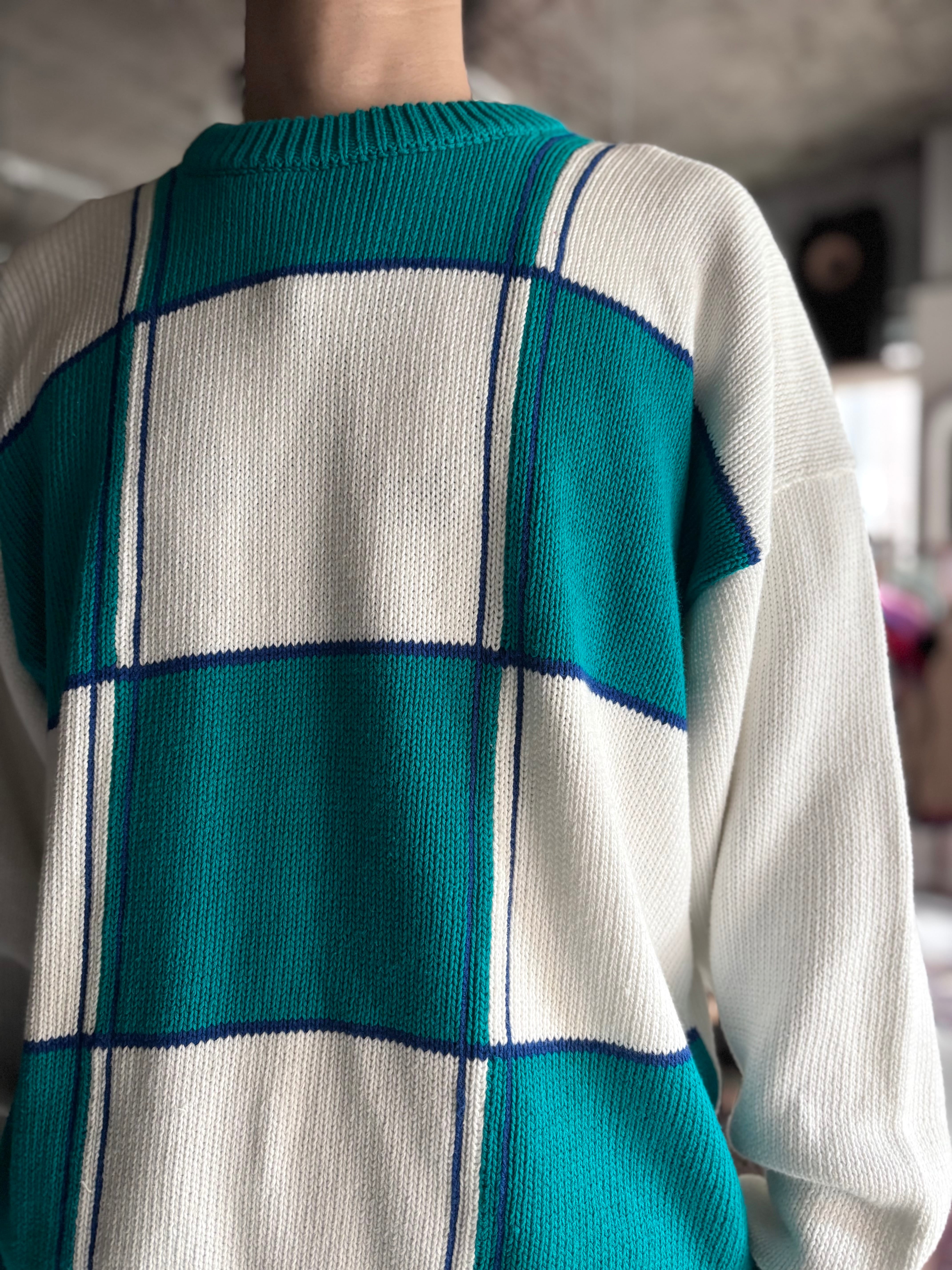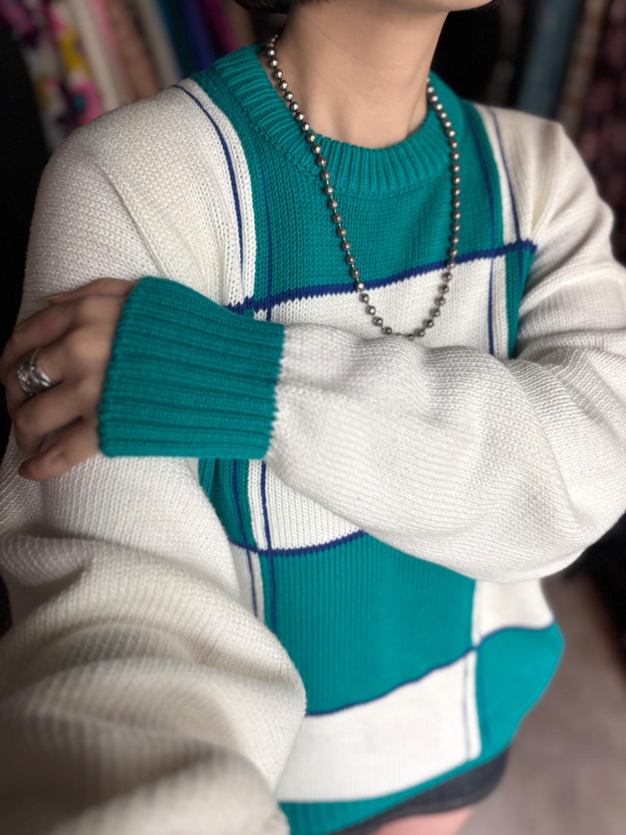 中厚のコットンニット。リラックスフィット。着こなしのアクセントになるパネルパターン。
