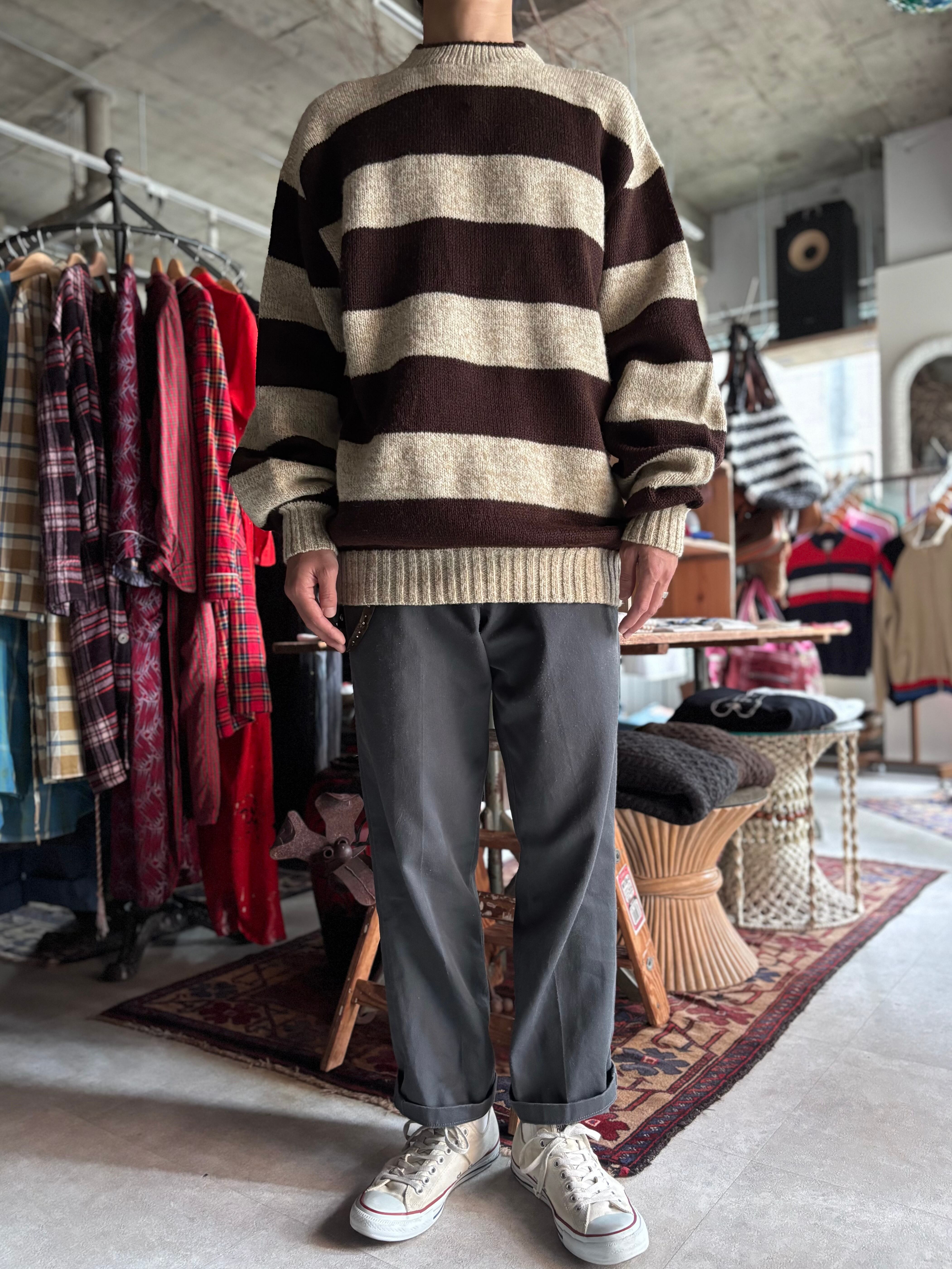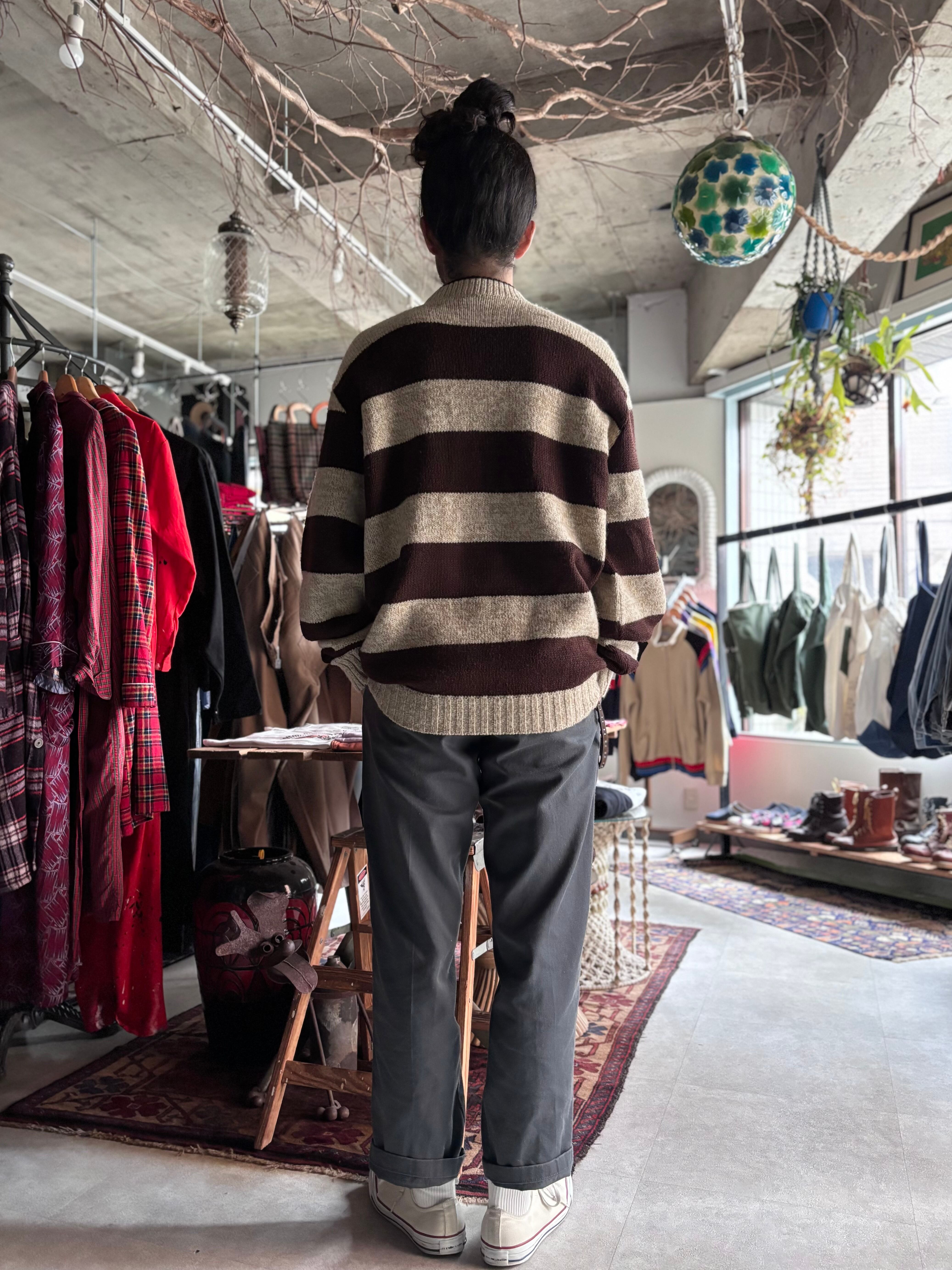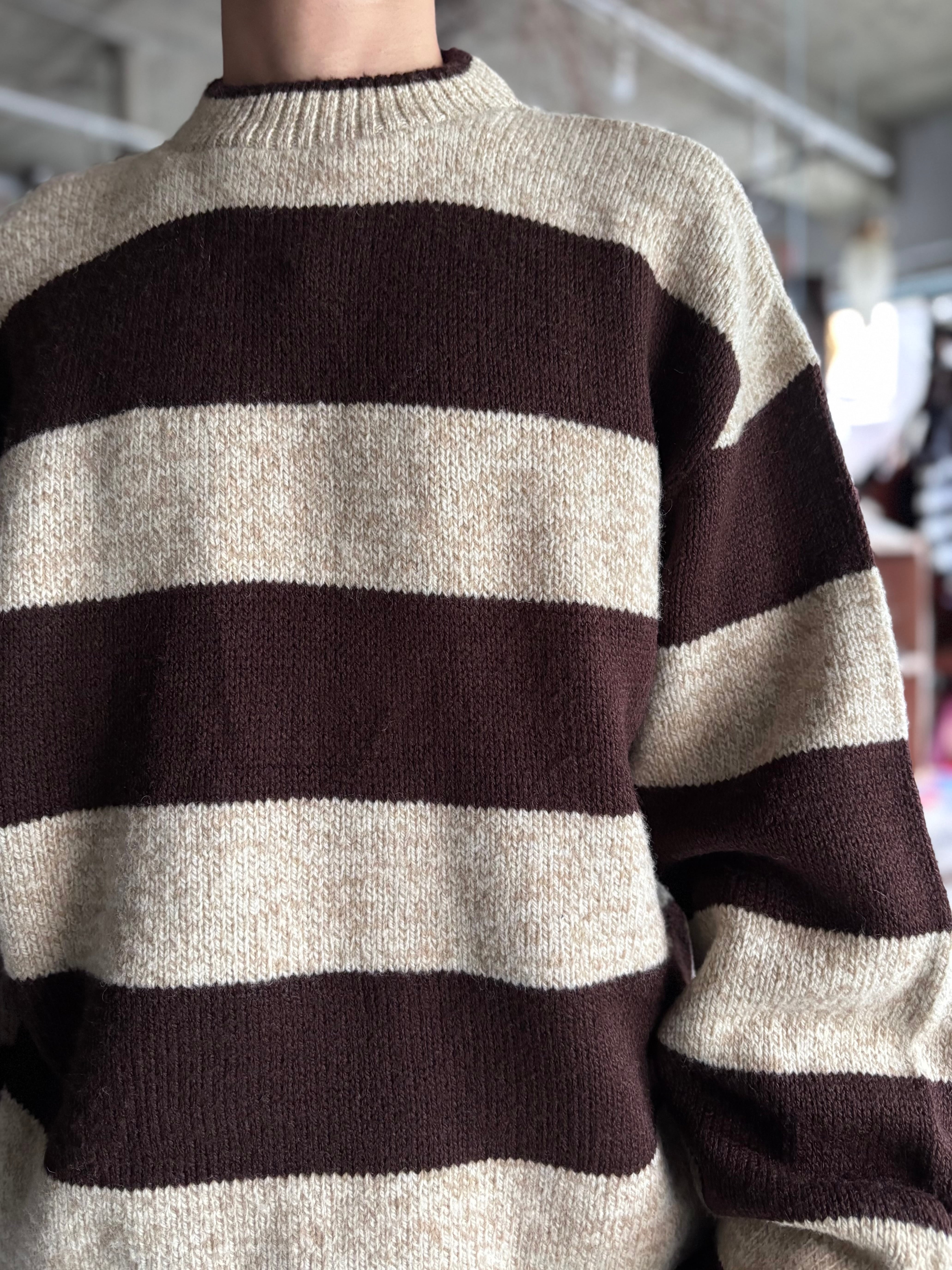 厚手のウールニット素材。ルーズフィット。オートミール×ブラウンカラーのボーダーが可愛いです。