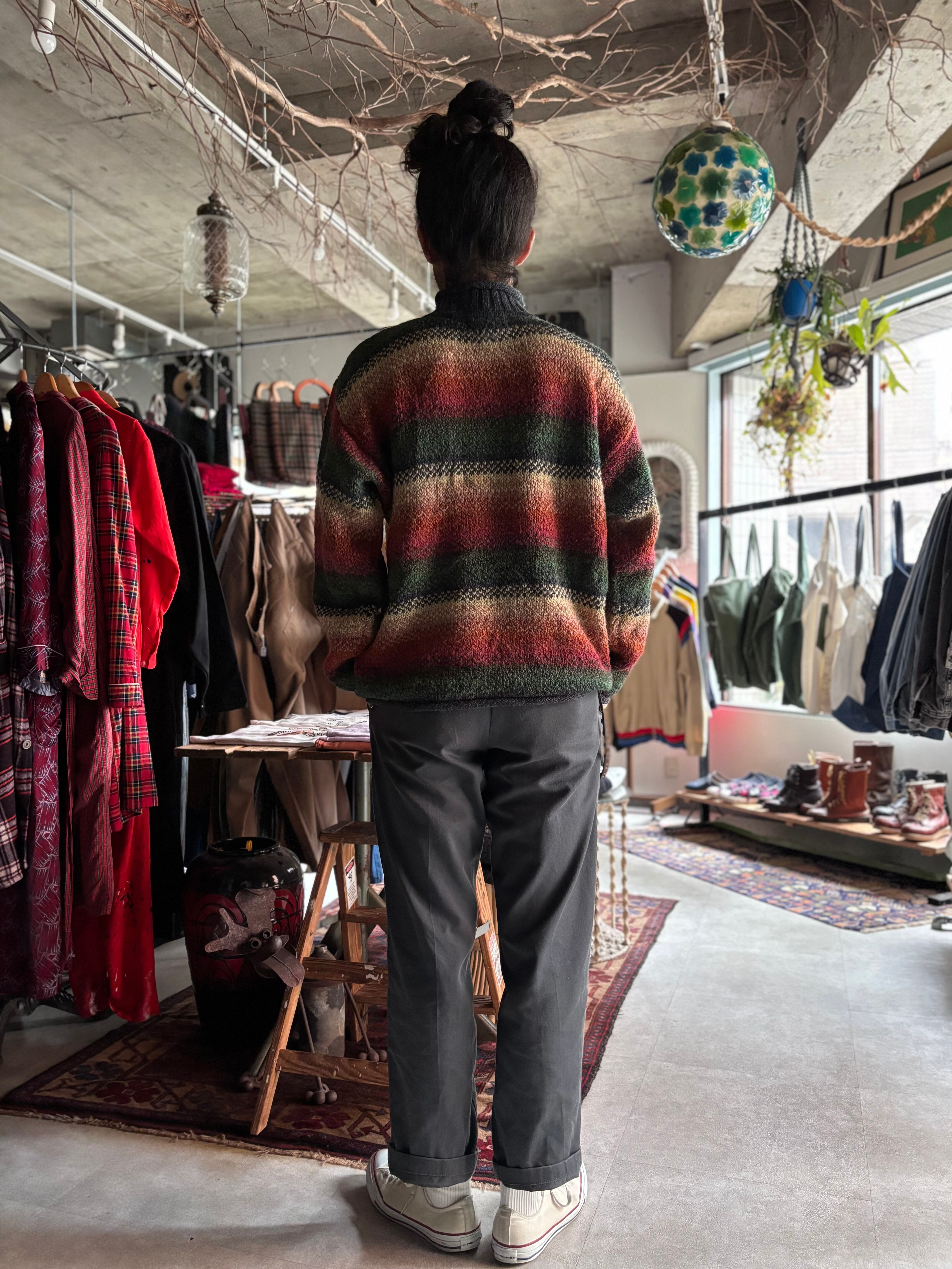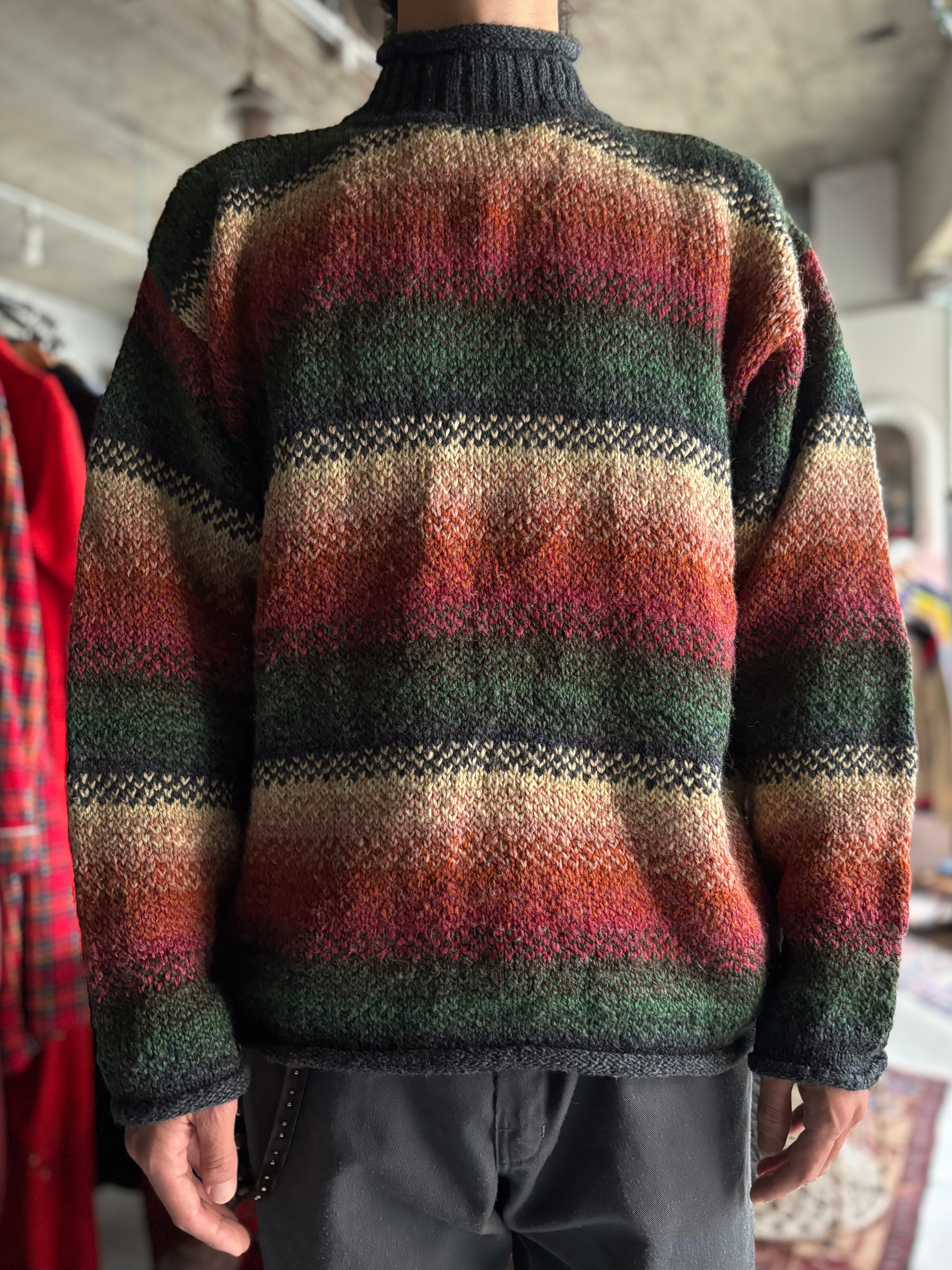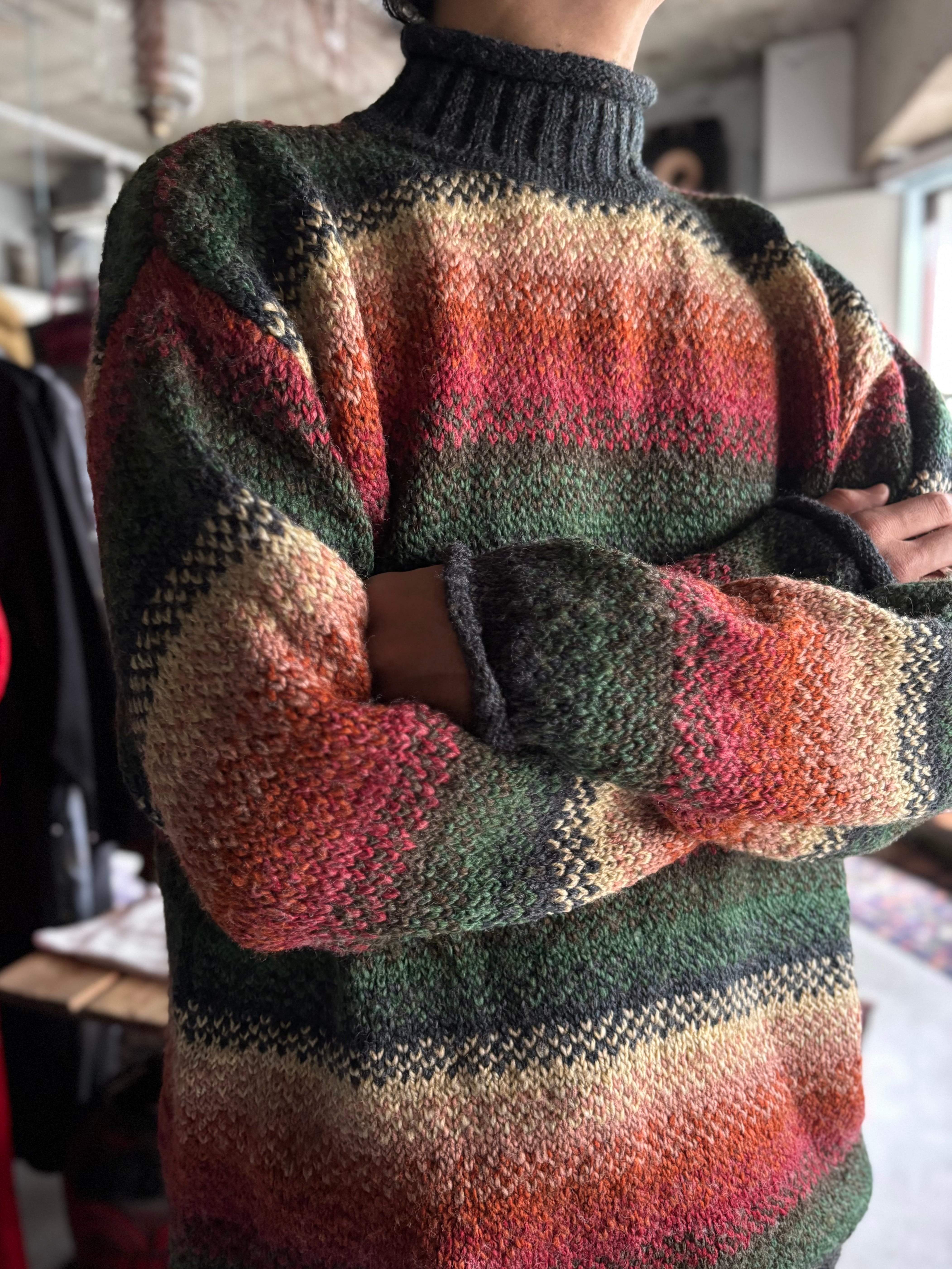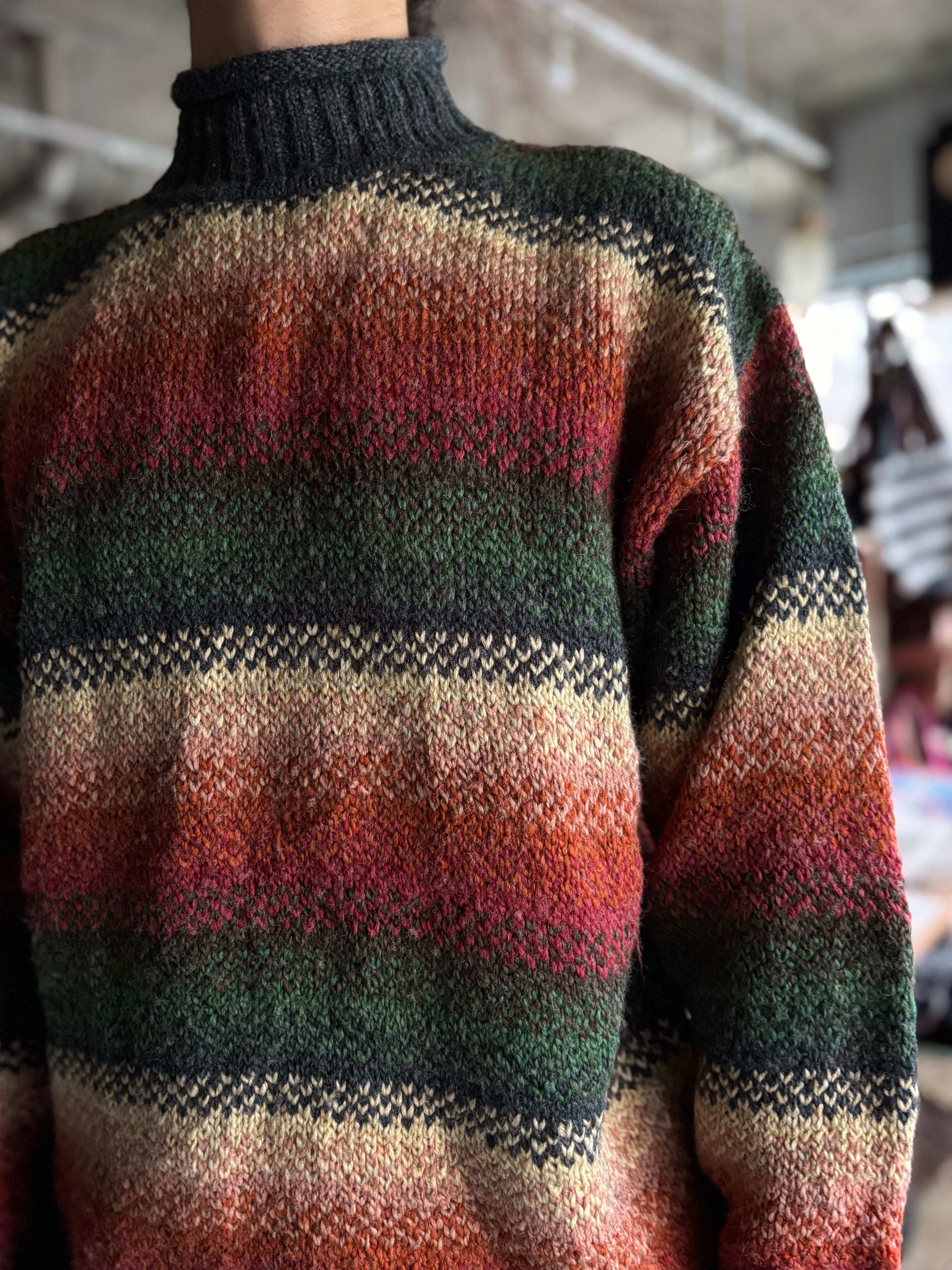 中厚のウール素材。オーセンティックフィット。綺麗なグラデーションボーダーに、ロールネック仕様。