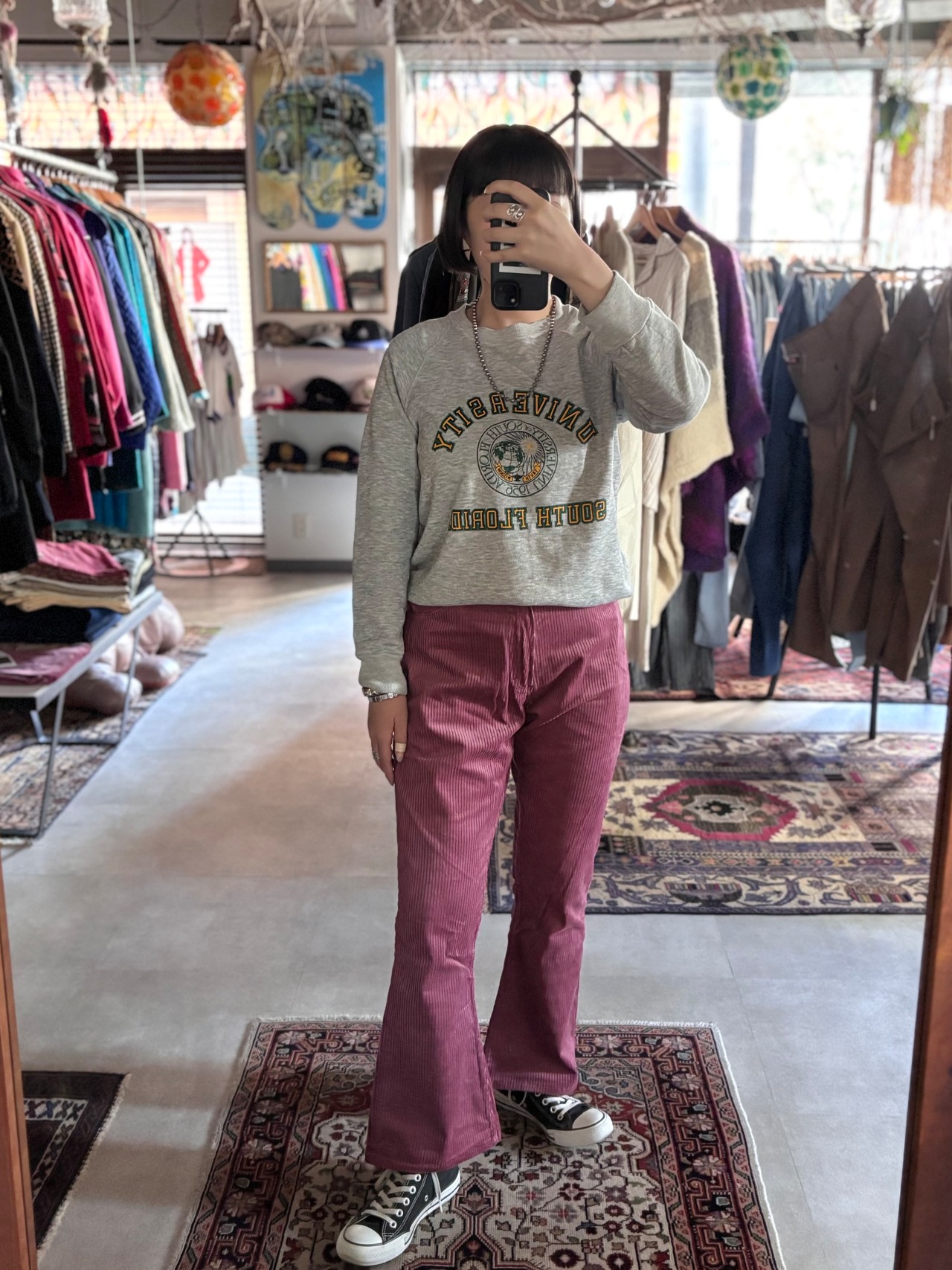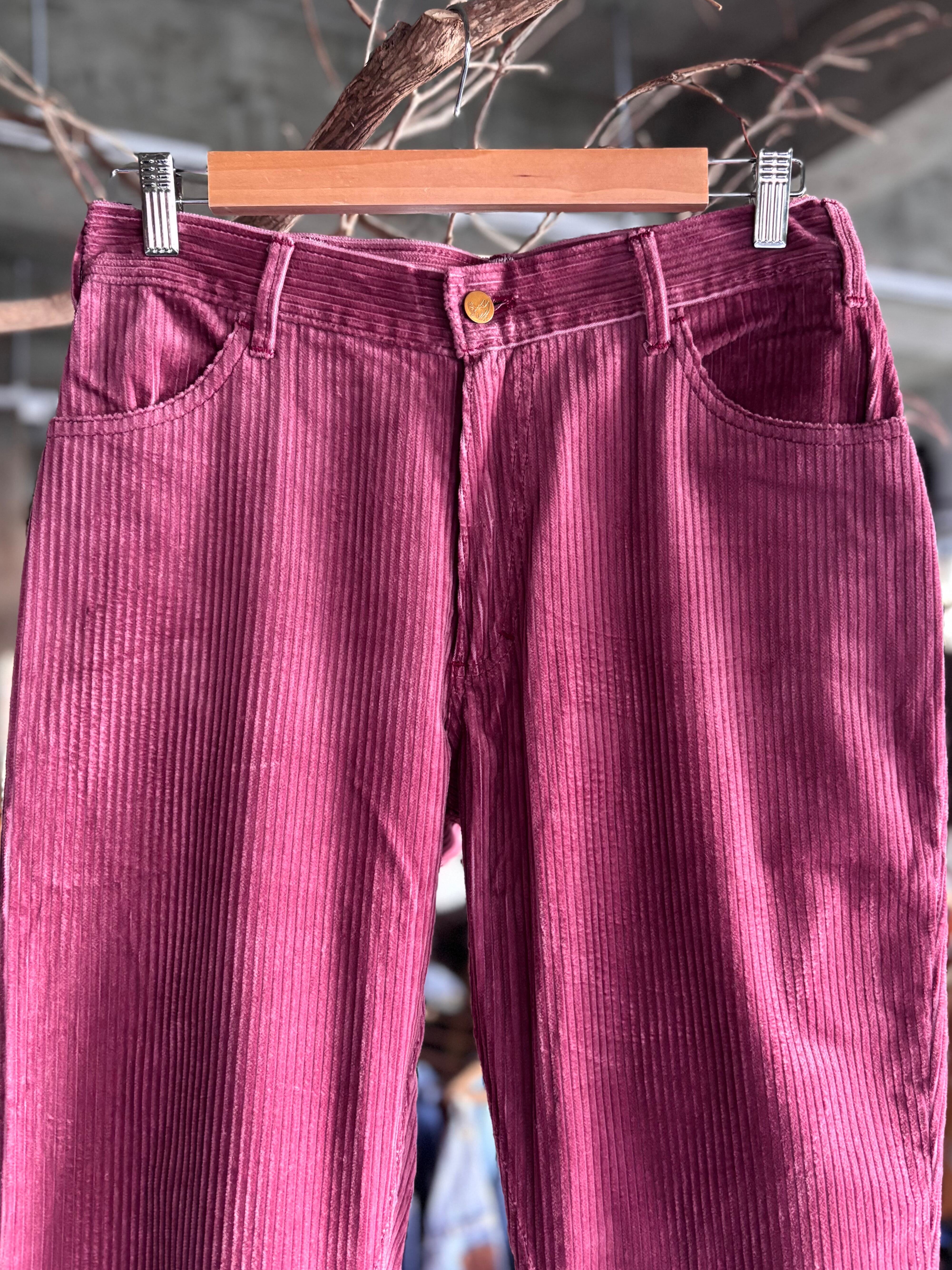 70s Levi's 646をサンプリングし製作した、BEAGLEオリジナルのフレアパンツ。しっかりとした厚みのあるピンクのコーデュロイ生地。ヒップ部分にややゆとりのあるつくりで履き心地抜群。