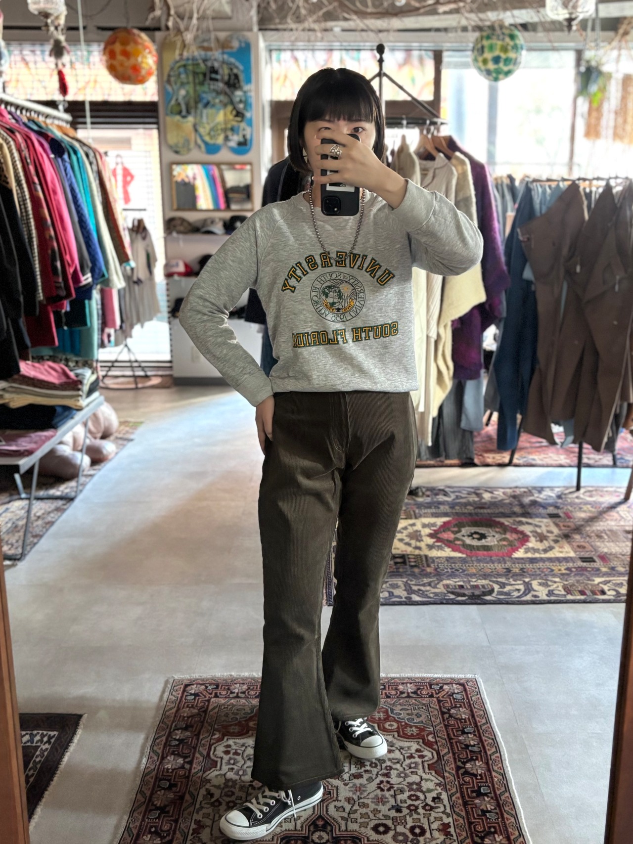 70s Levi's 646をサンプリングし製作した、BEAGLEオリジナルのフレアパンツ。しっかりとした厚みのあるオリーブのコーデュロイ生地。ヒップ部分にややゆとりのあるつくりで履き心地抜群。
