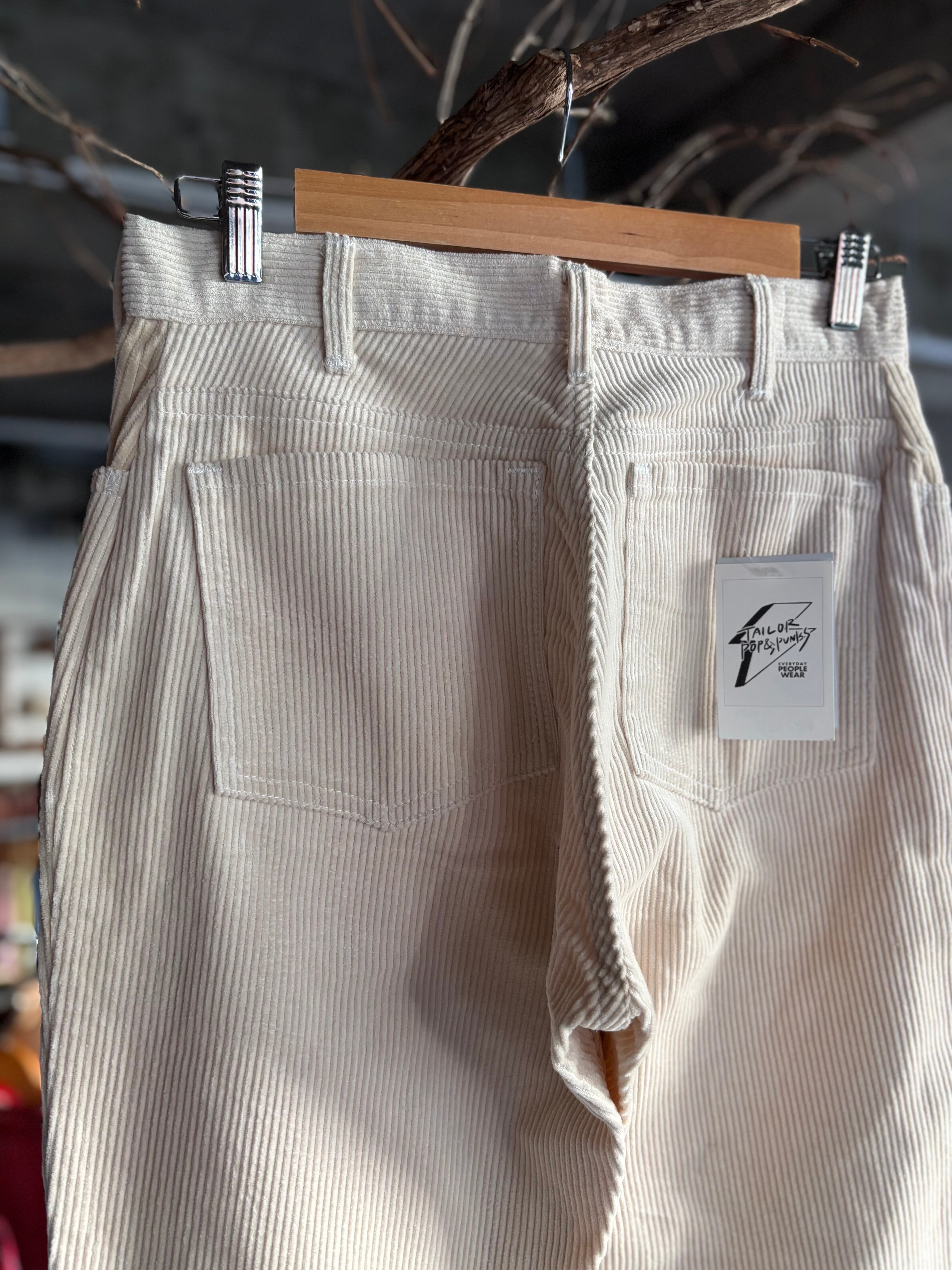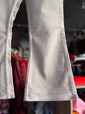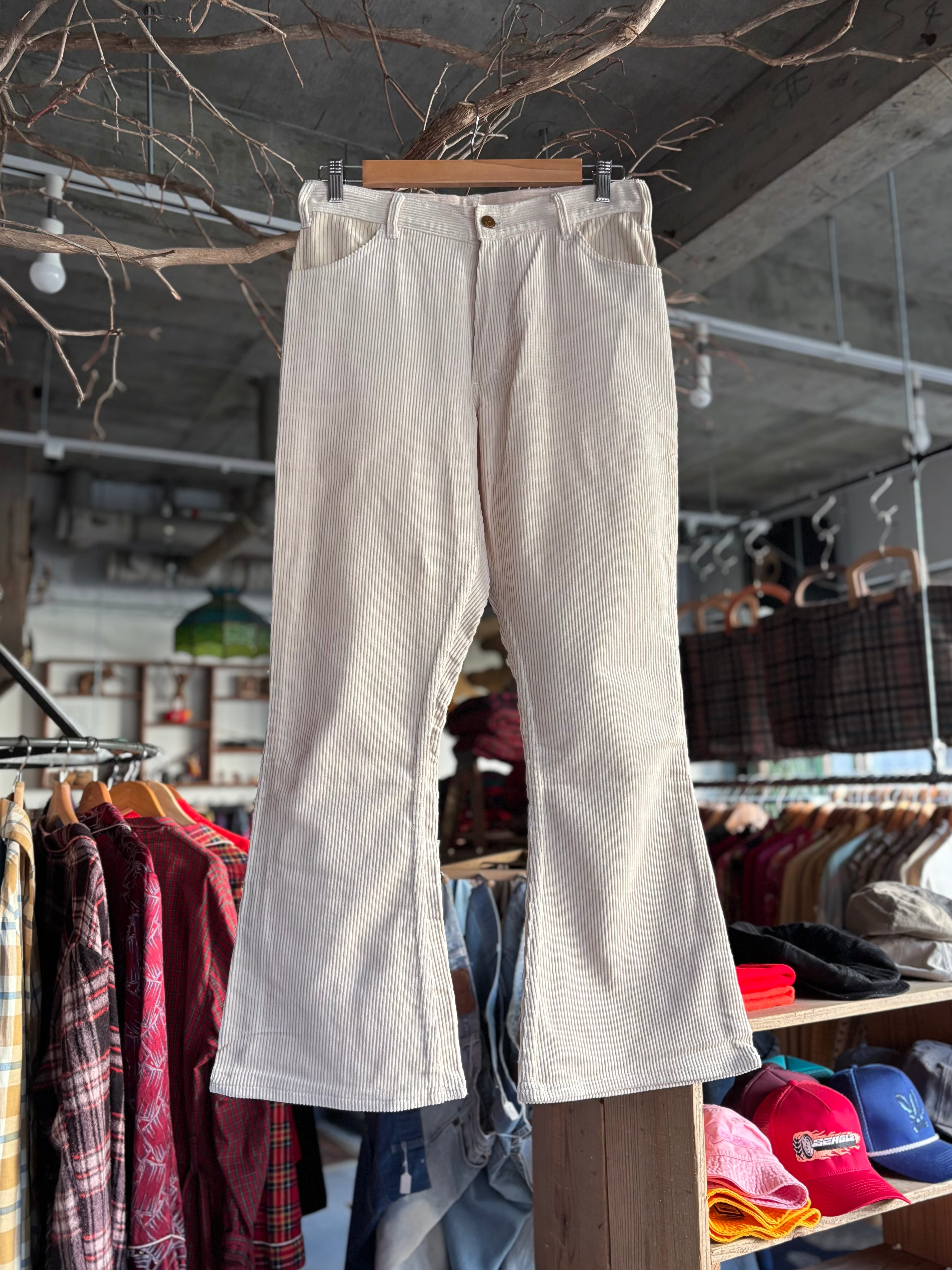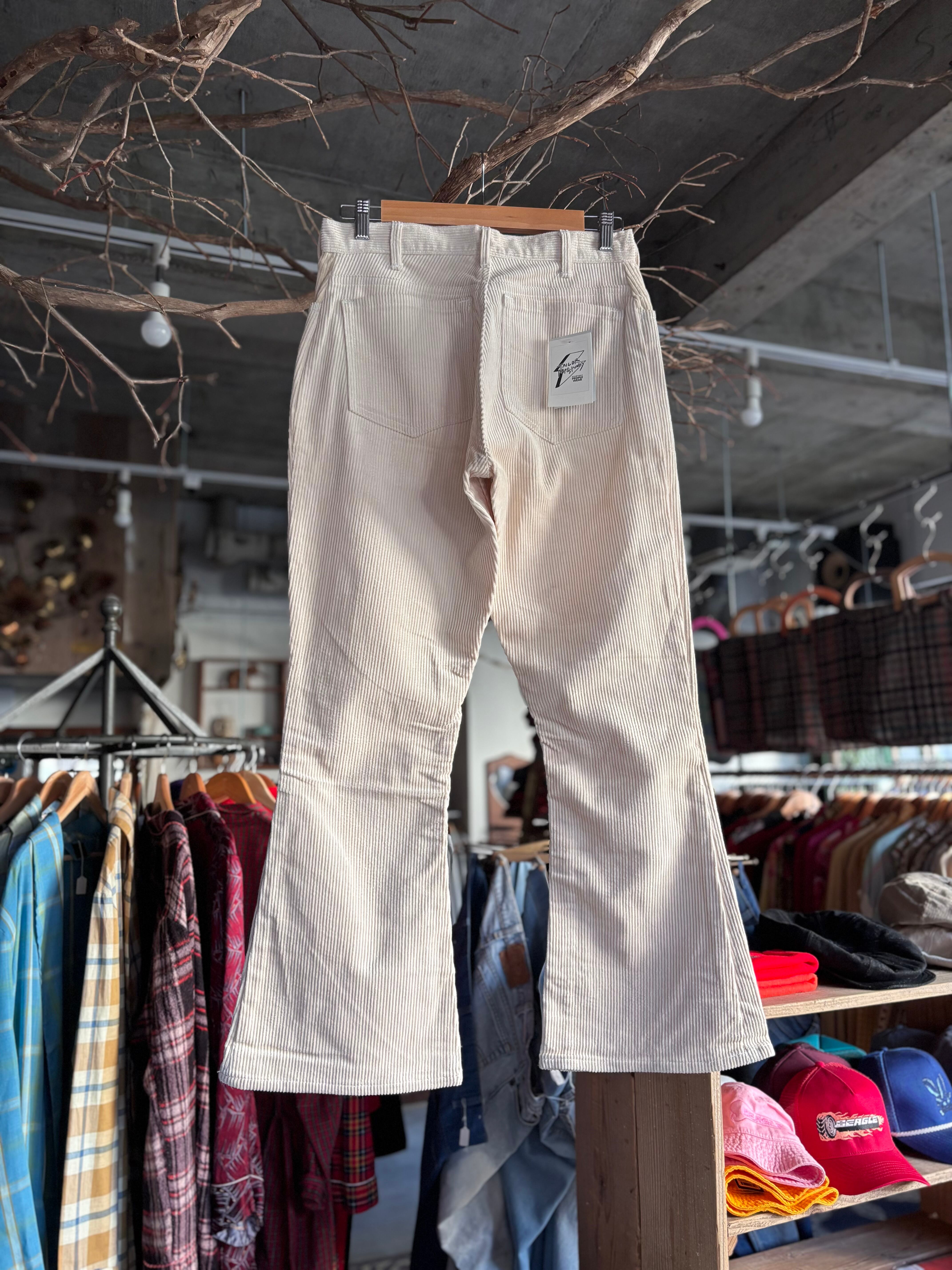 70s Levi's 646をサンプリングし製作した、BEAGLEオリジナルのフレアパンツ。しっかりとした厚みのあるホワイトのコーデュロイ生地。ヒップ部分にややゆとりのあるつくりで履き心地抜群。