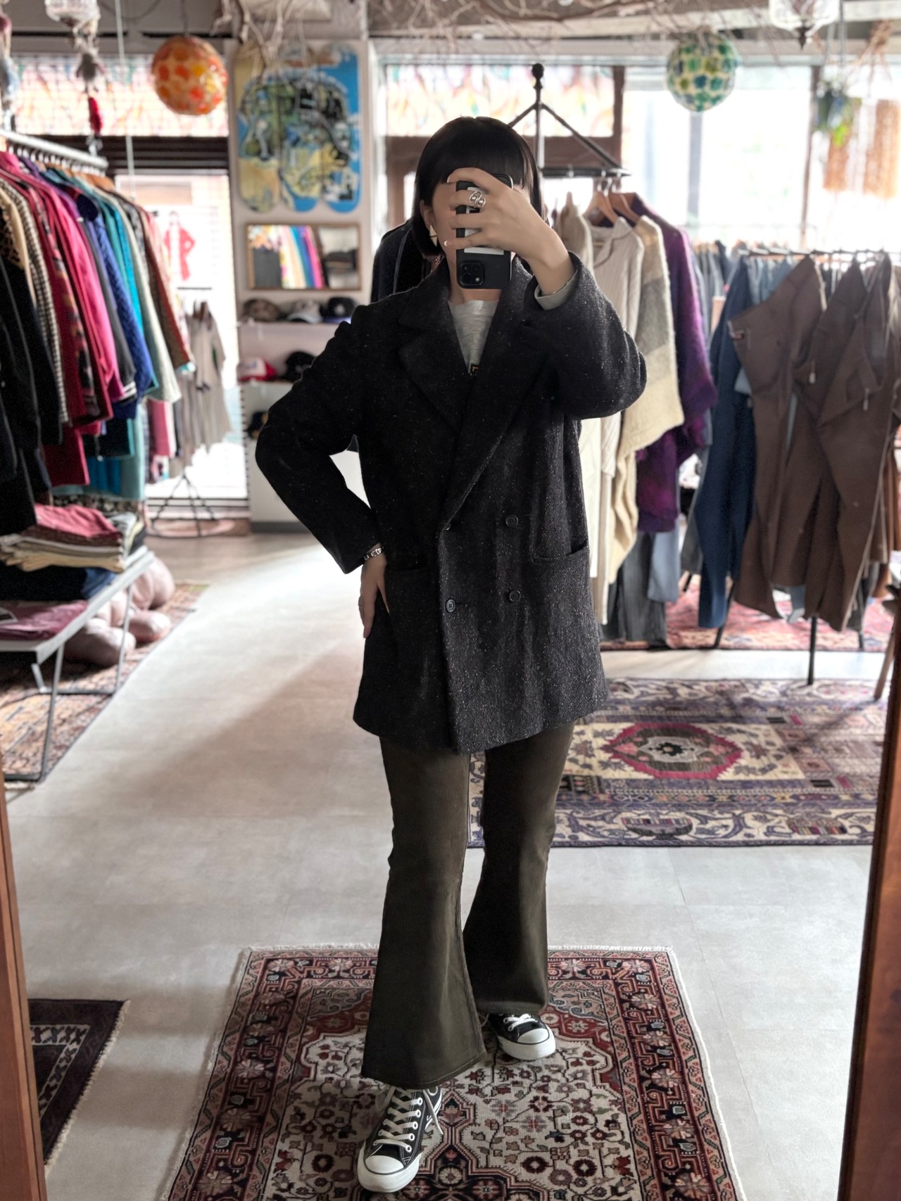 厚みのある上質なウールツイード生地。カラフルネップ入りのダブルブレスト仕様。クラシカルな雰囲気たっぷりで可愛いです。スラックスと合わせてカチッとコーデはもちろん、デニムと合わせてカジュアルなデイリーコーデにも◎