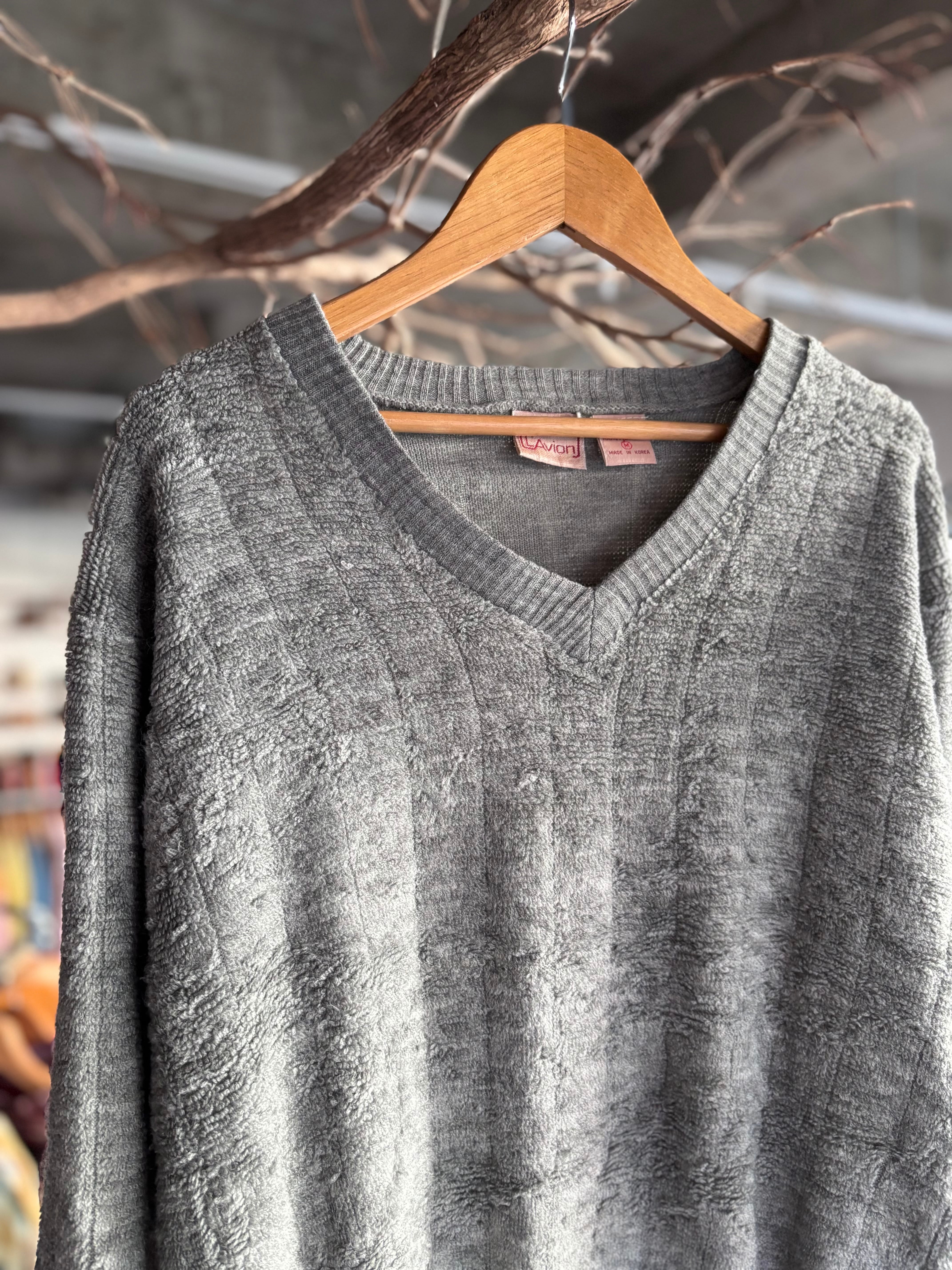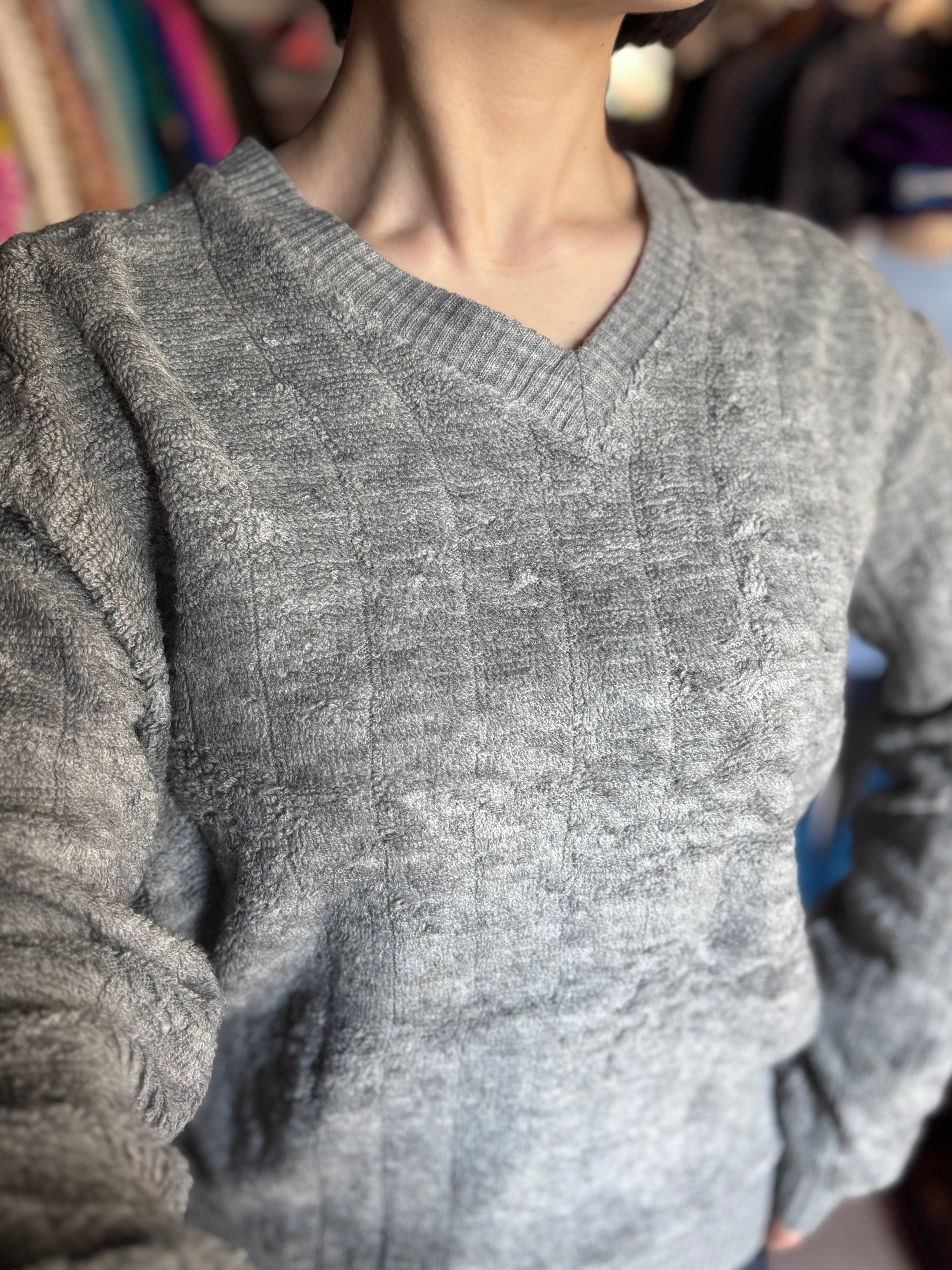 軽めの着心地のアクリルニット。オーセンティックフィット。パイル生地が柔らかい印象。シンプルな印象の大人トップスです◎