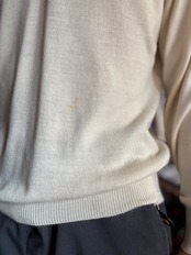 薄手のアクリル素材。オーセンティックフィット。垂れる襟の形が可愛いです。