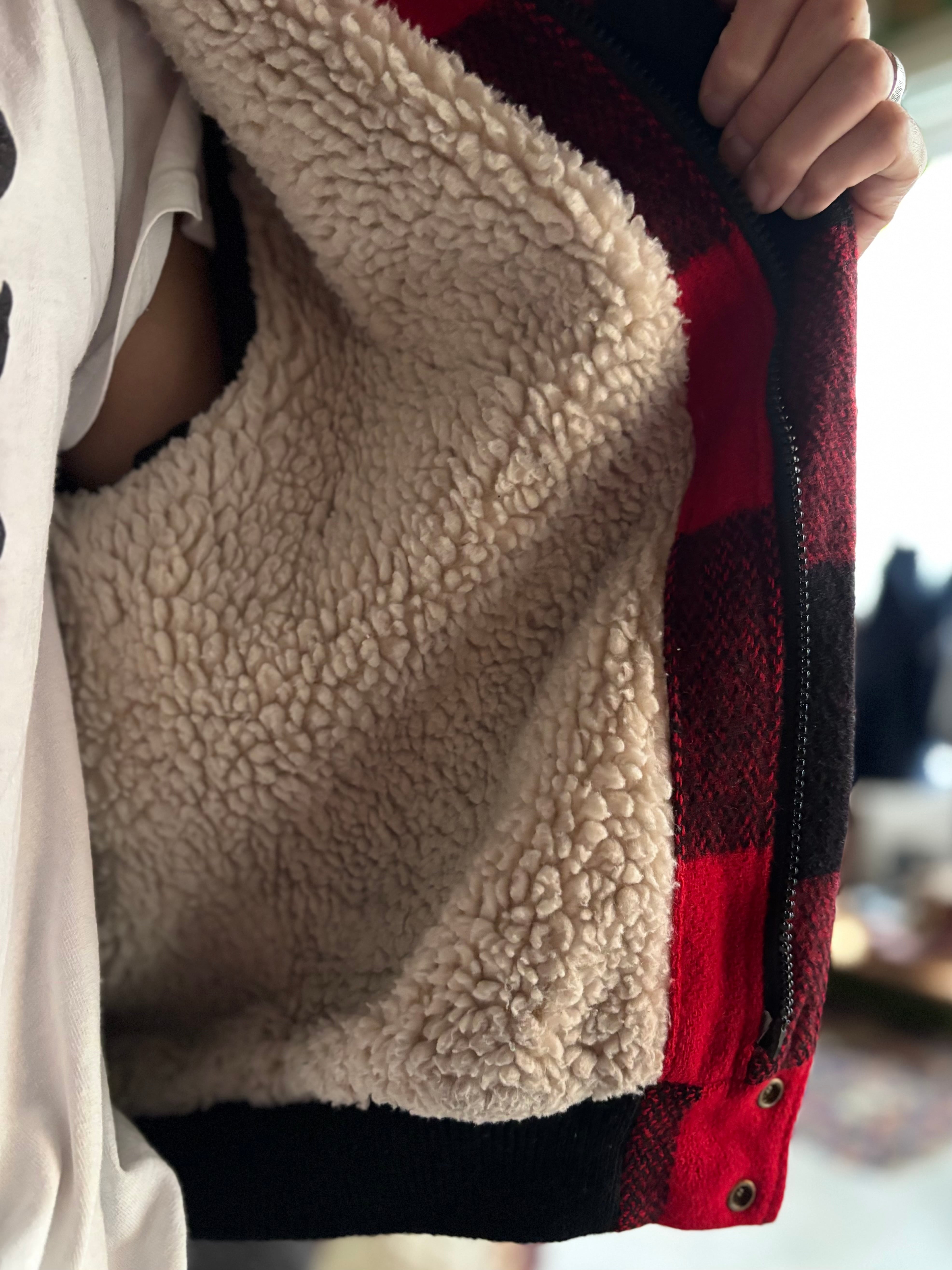 バッファローチェックのウール生地に、内側はアクリルのボアライナー仕様。オーセンティックフィット。短丈なので重さを感じずに着こなせるアウターです。
