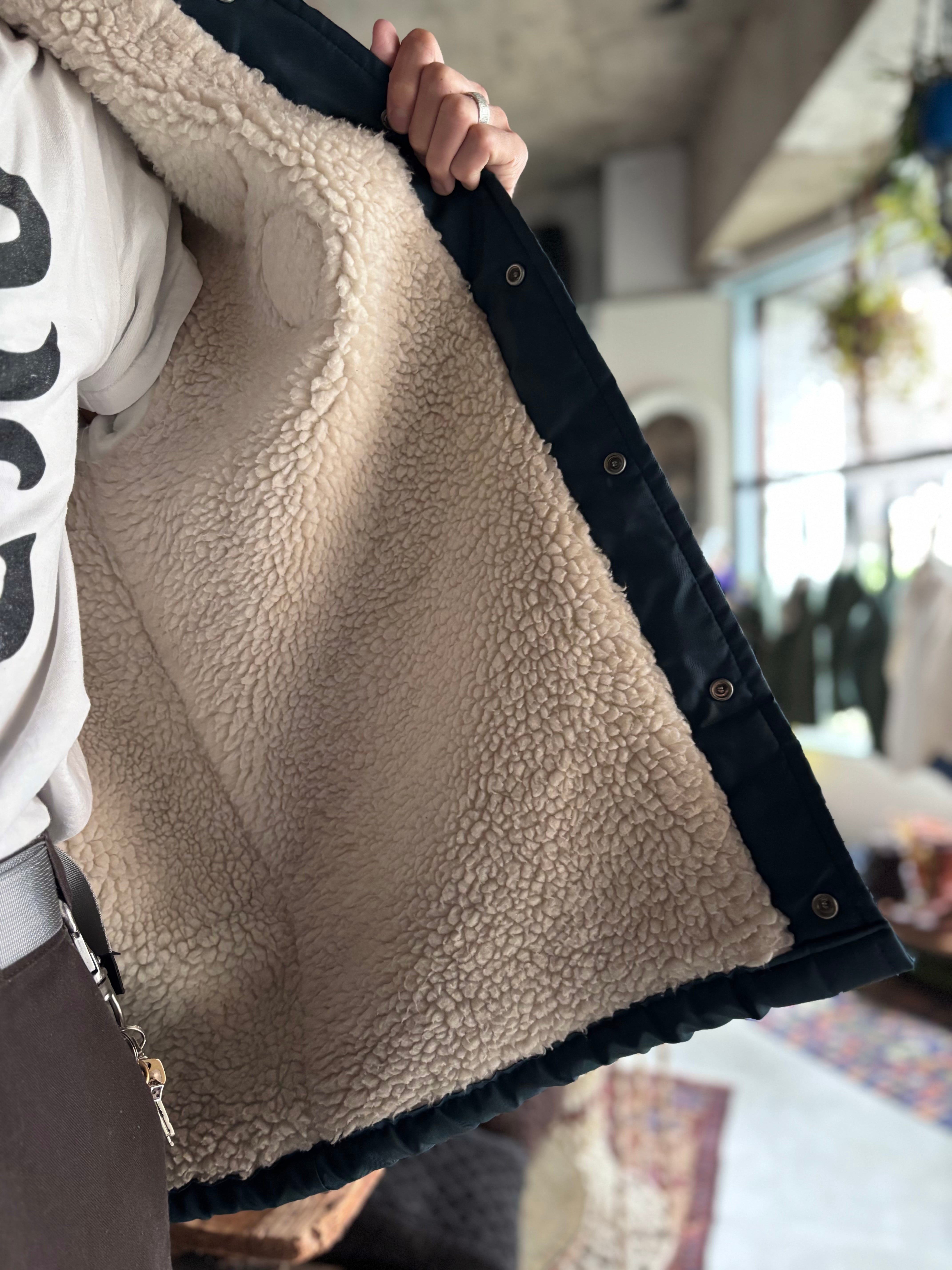 ナイロン生地に、内側はしっかり厚手のボアライナー仕様。リラックスフィット。クラシカルなディテールに、ワッペンや刺繍のバランスが良いジャケットです。