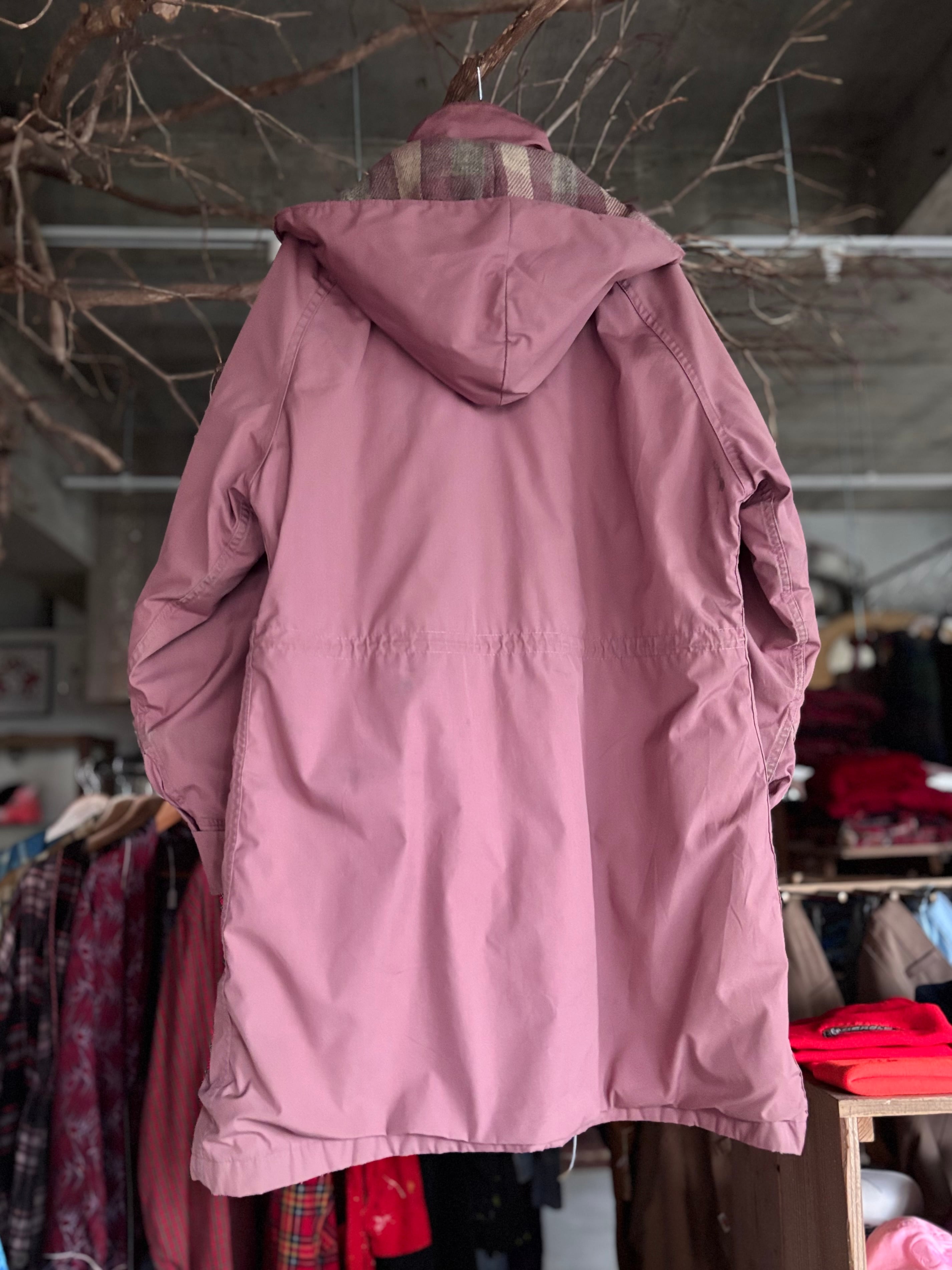 ポリコットンのシェルに、ウールライナー仕様。リラックスフィット。フードは取り外し可能。甘すぎないくすみローズピンクカラー。しっかり防寒性の高いハーフコートです。