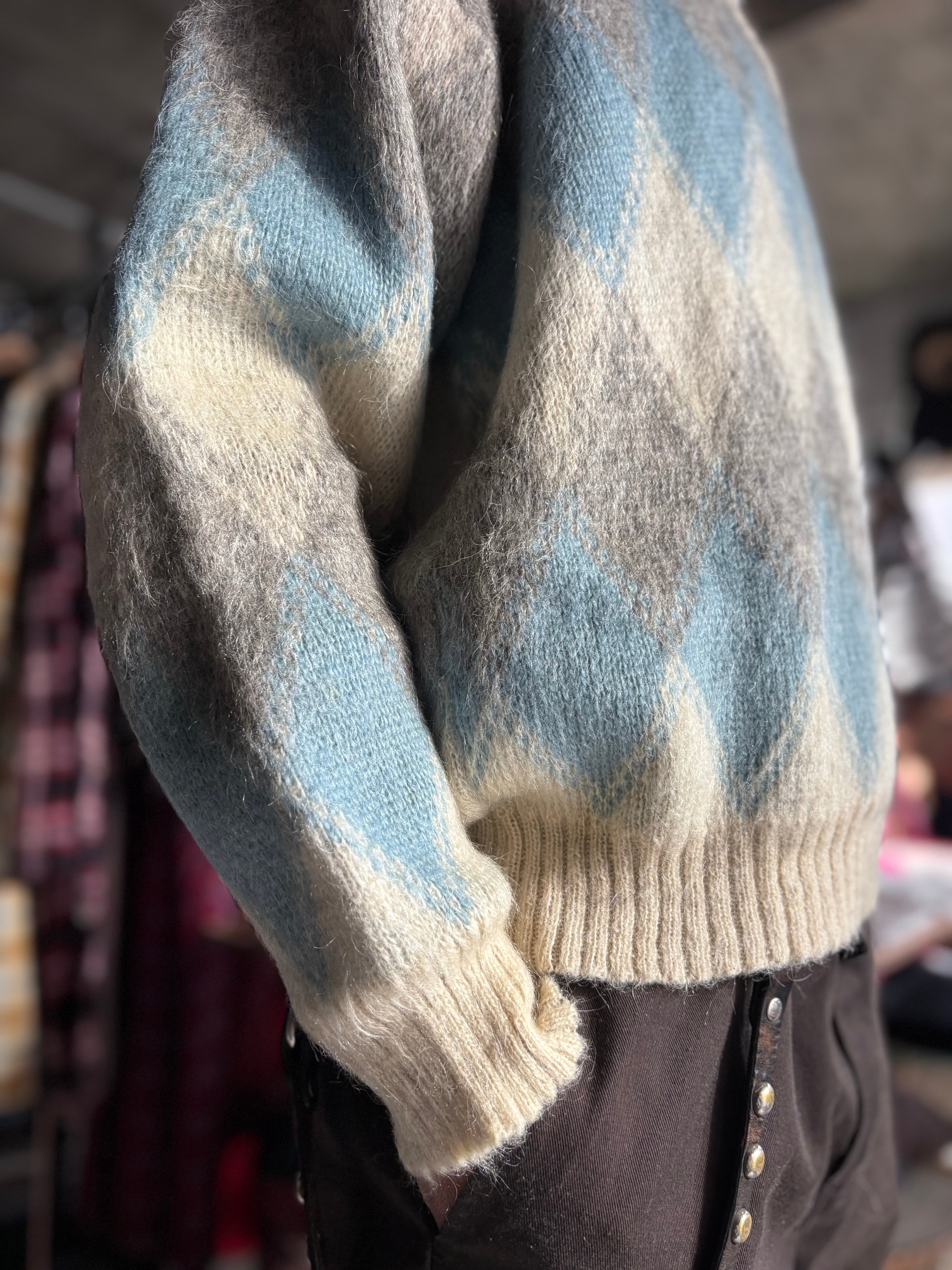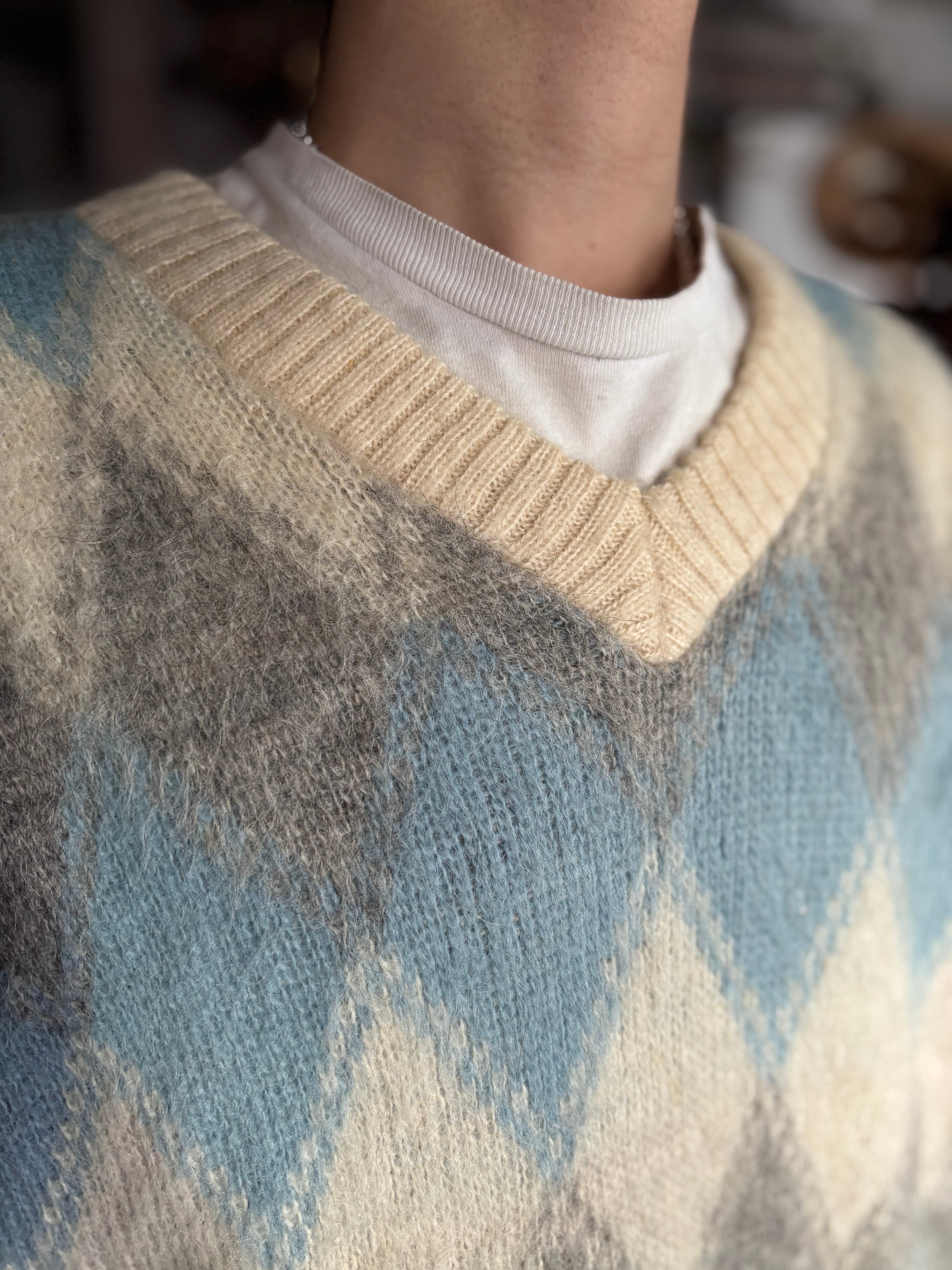 毛足の長いウール素材。オーセンティックフィット。トラディショナルなアーガイルパターン。綺麗なコンディションです。