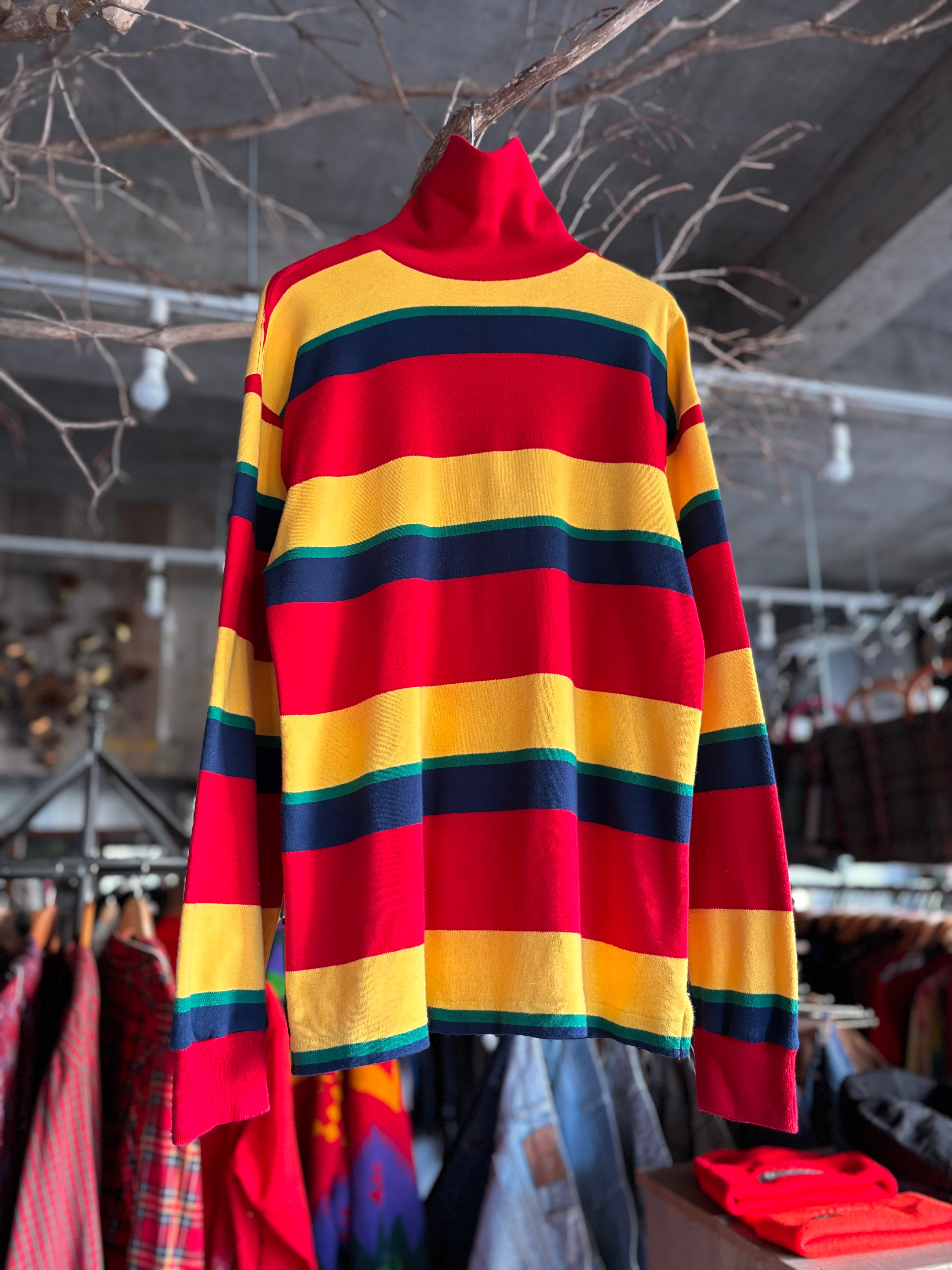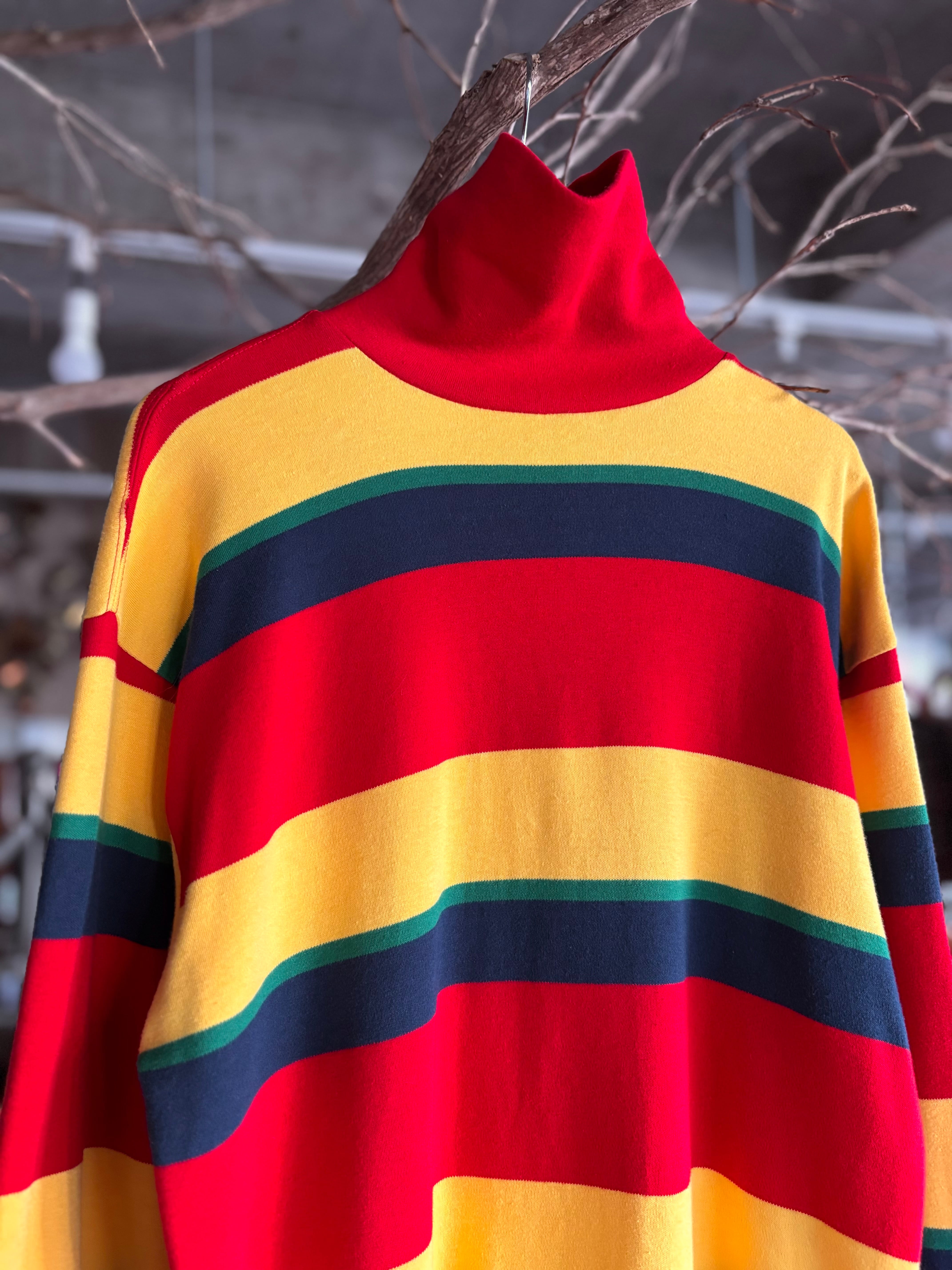 肌当たりの良いコットン素材。程良くゆとりのあるフィット感。ビビッドなボーダー柄。1枚でもインナーでも映えるトップスです◎