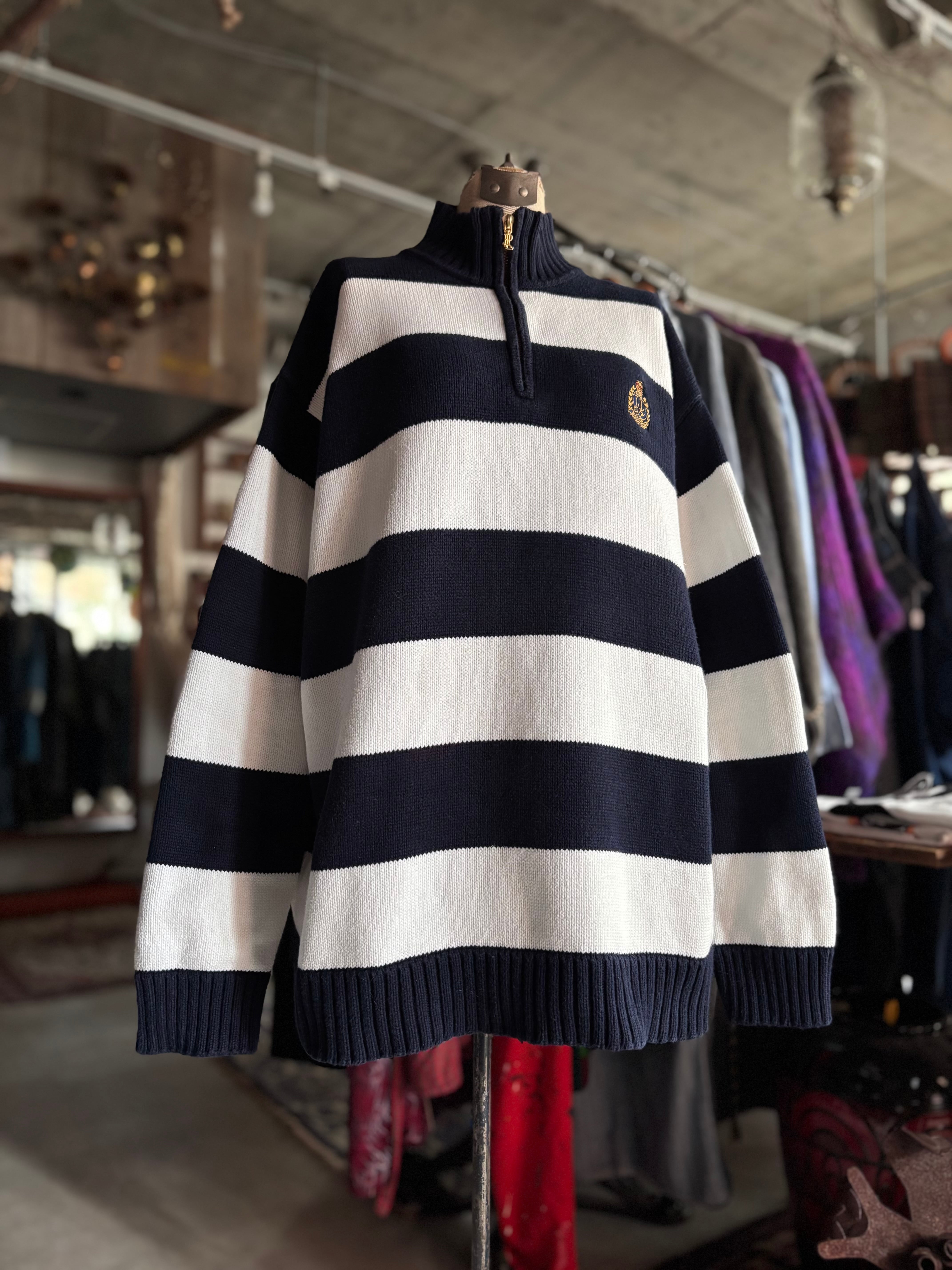中厚のコットンニット素材。オーセンティックフィット。背面のコンディションを考慮したプライスですが、古着に慣れている方にはさほど気にならないと思います。