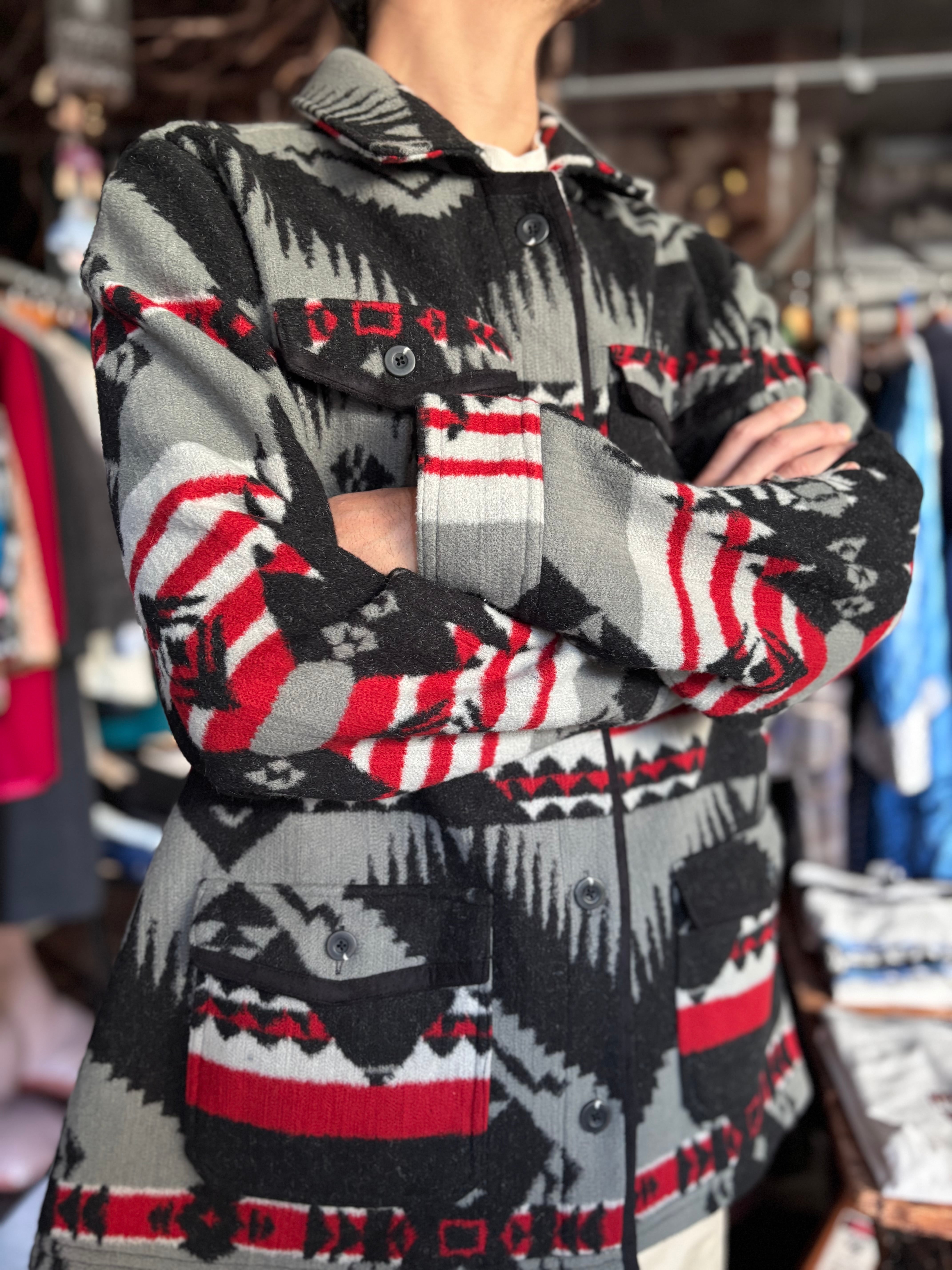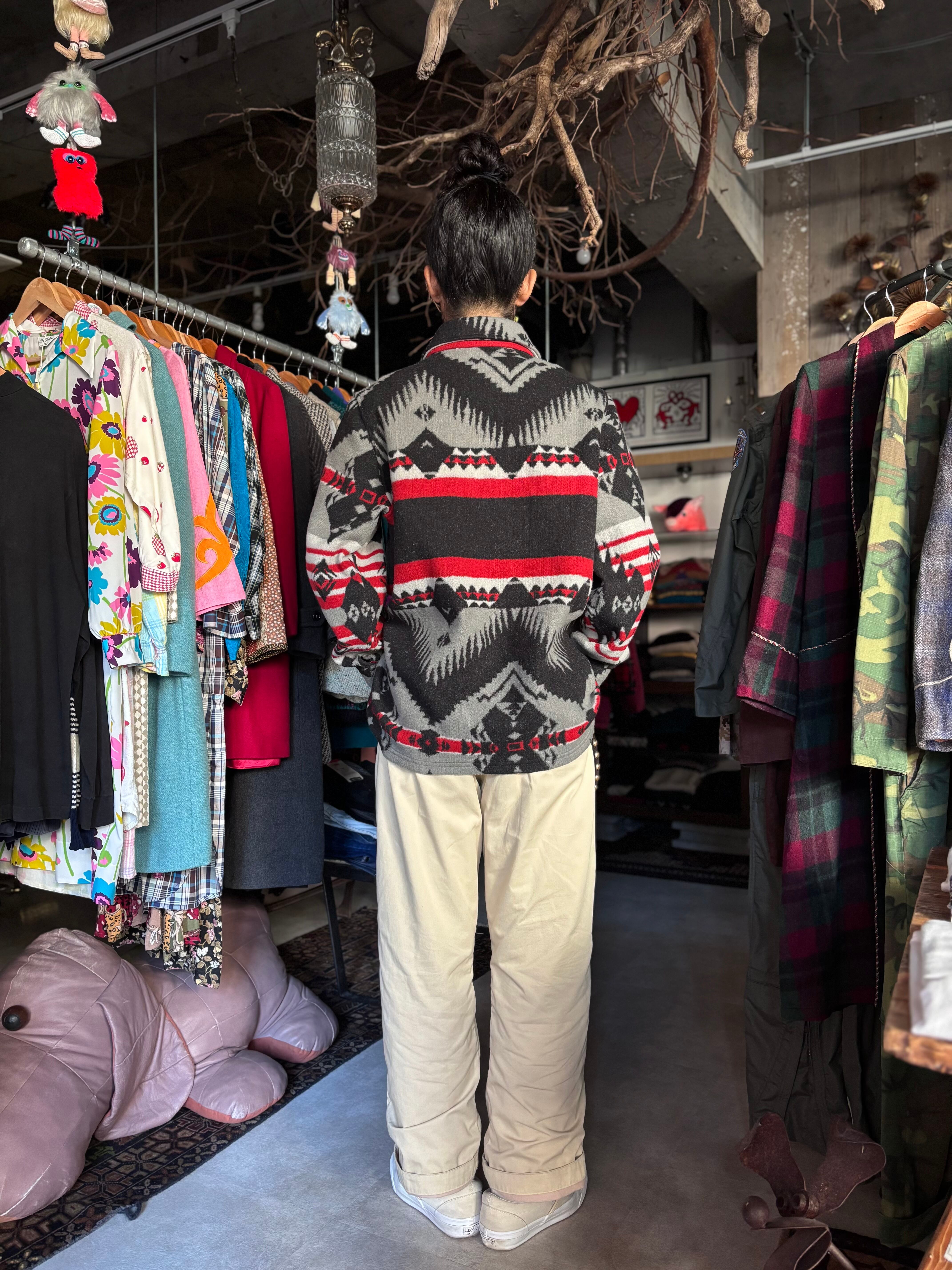 ネイティブパターンのフリース素材。リラックスフィット。ウィメンズですがユニセックスでおすすめです。