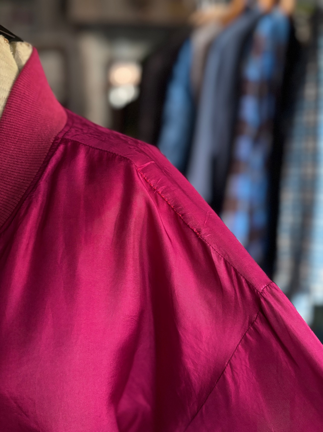 軽いシルク素材。リラックスフィット。薄手の中綿入り。