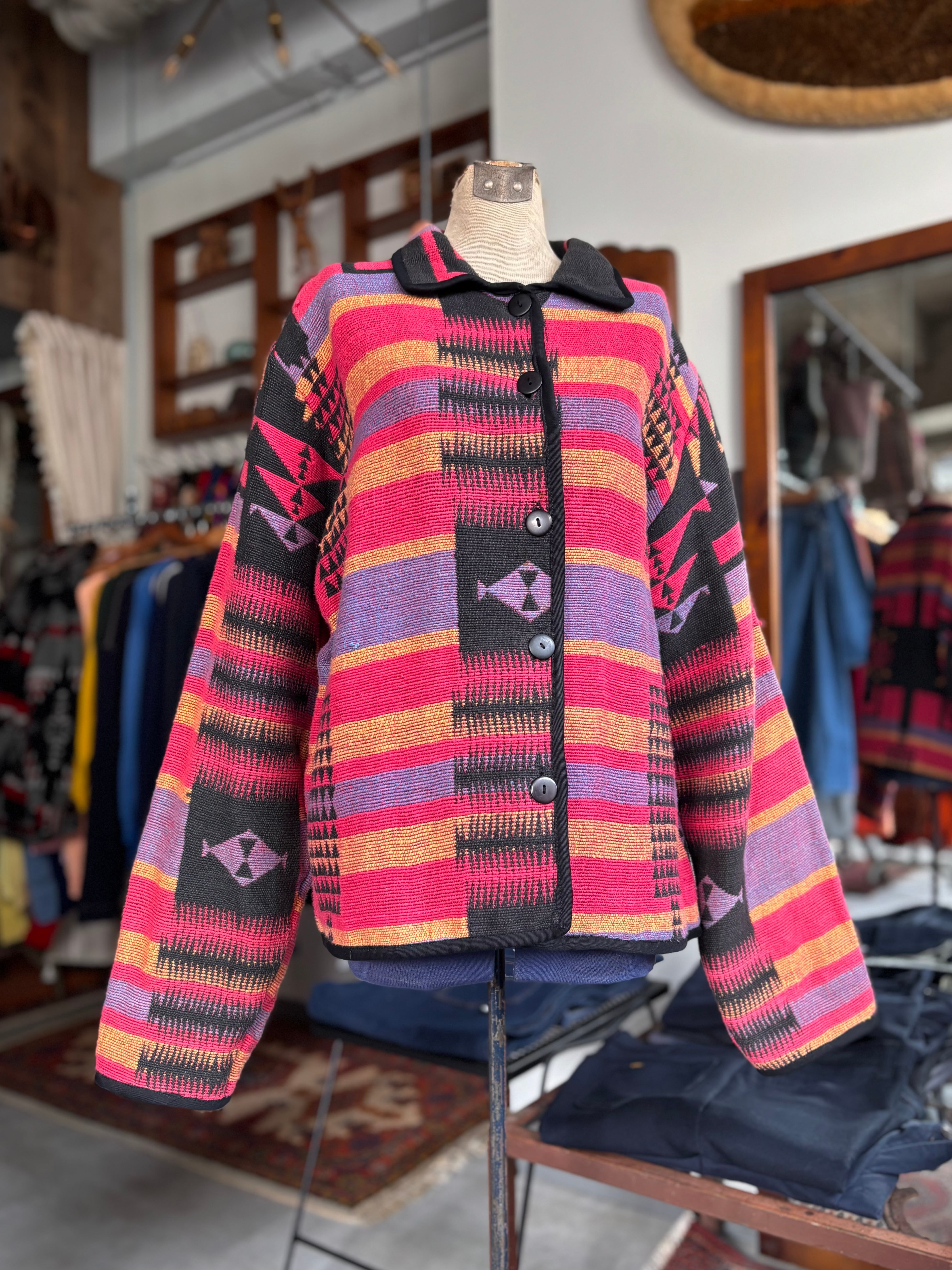 柔らかいコットンのネイティブラグ素材。短丈のリラックスシルエット。