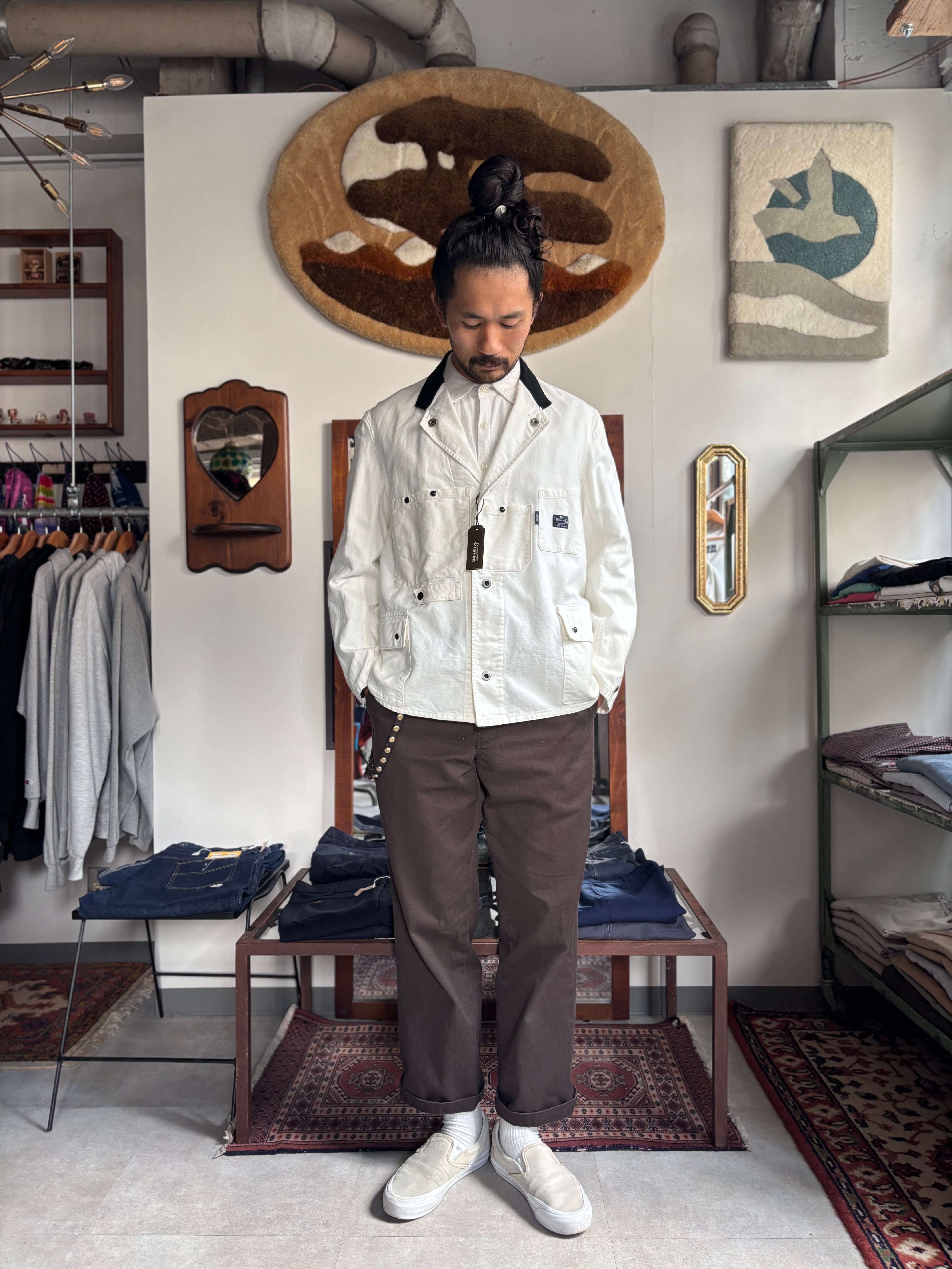 アウトドア、ワーク、ミリタリー、ドレス等の昔から変わらないクラシックなポケットディテールを用い、配置や組み合わせのバランスが生む心地よい違和感をデザイン。