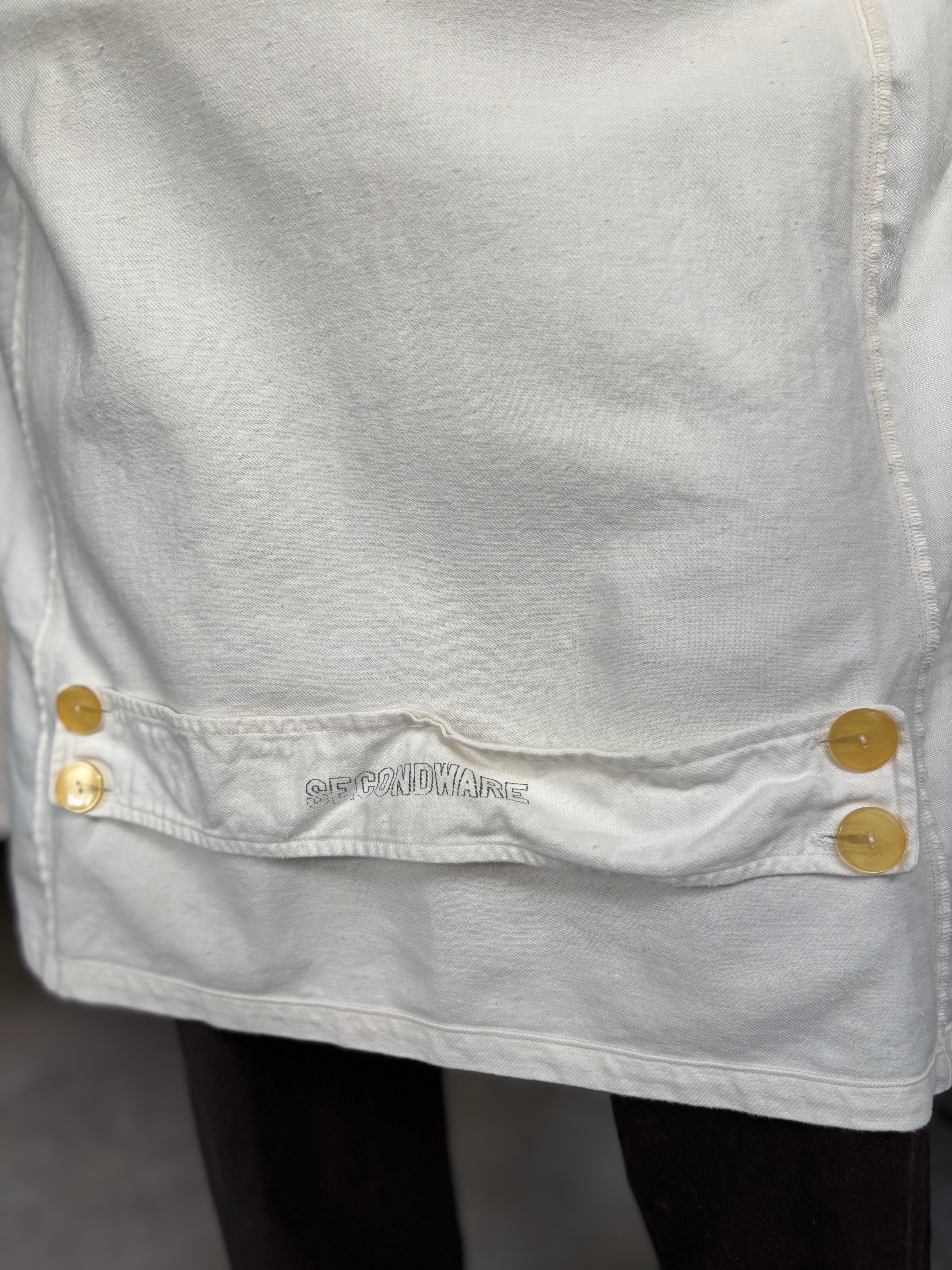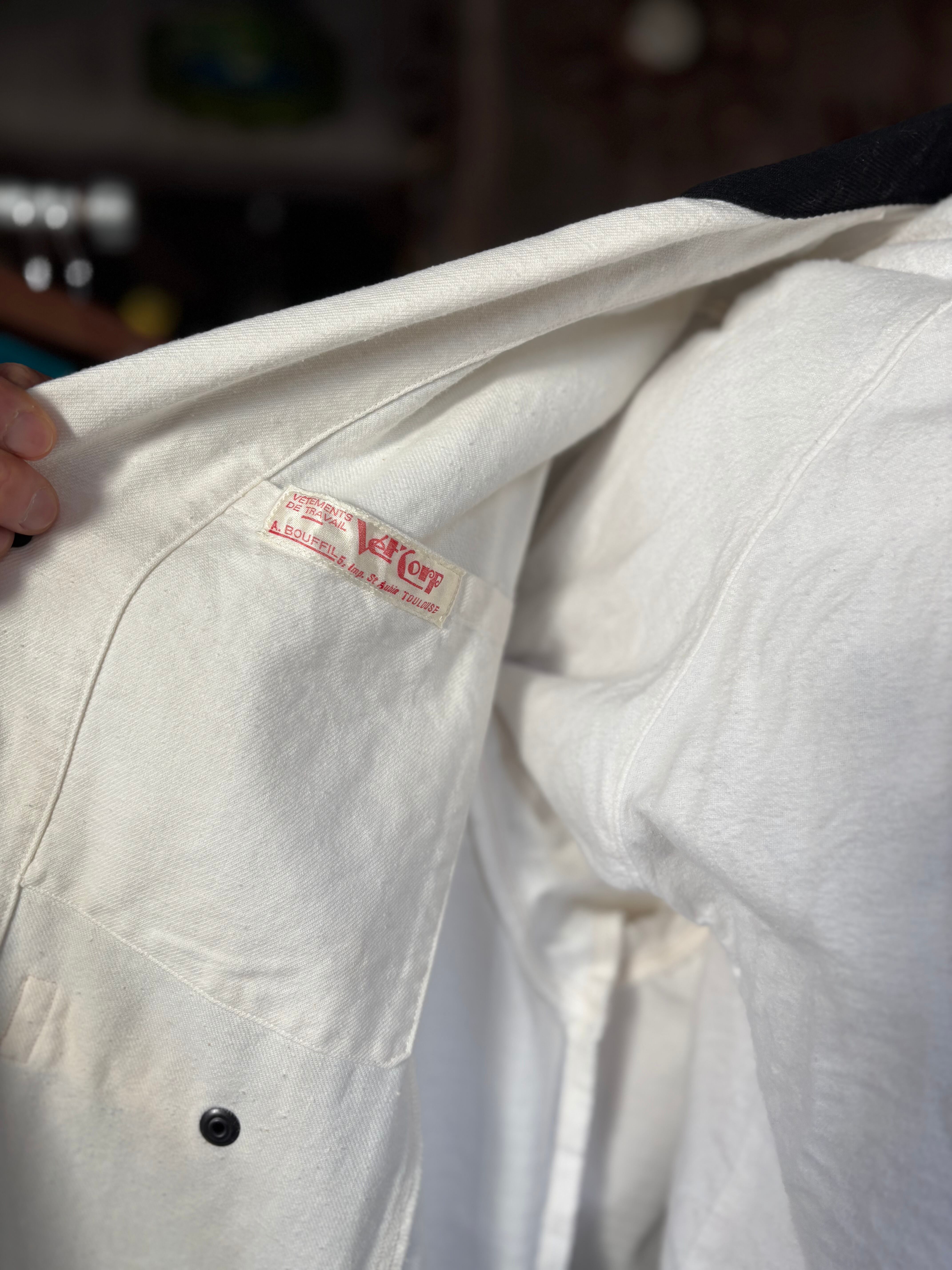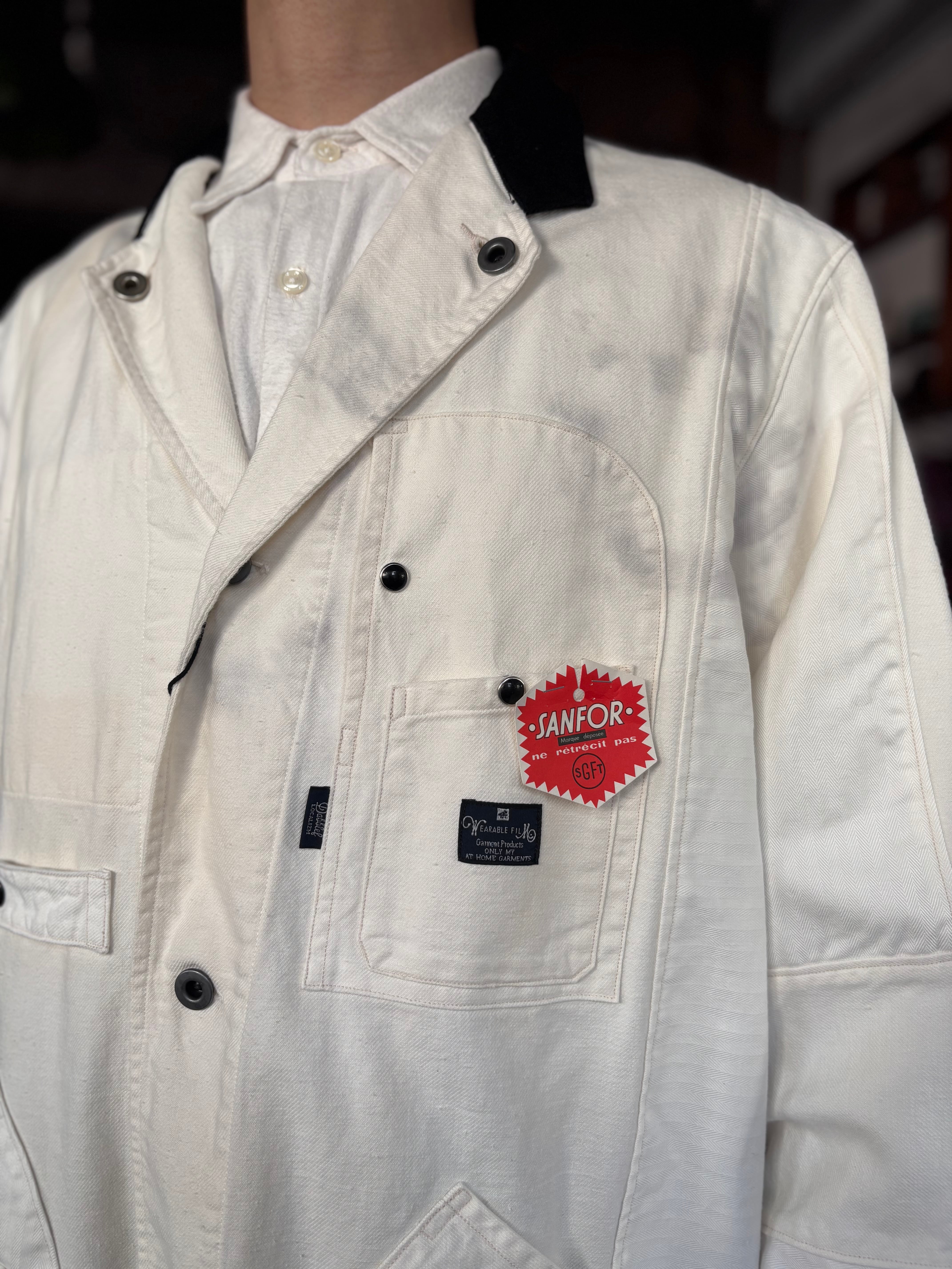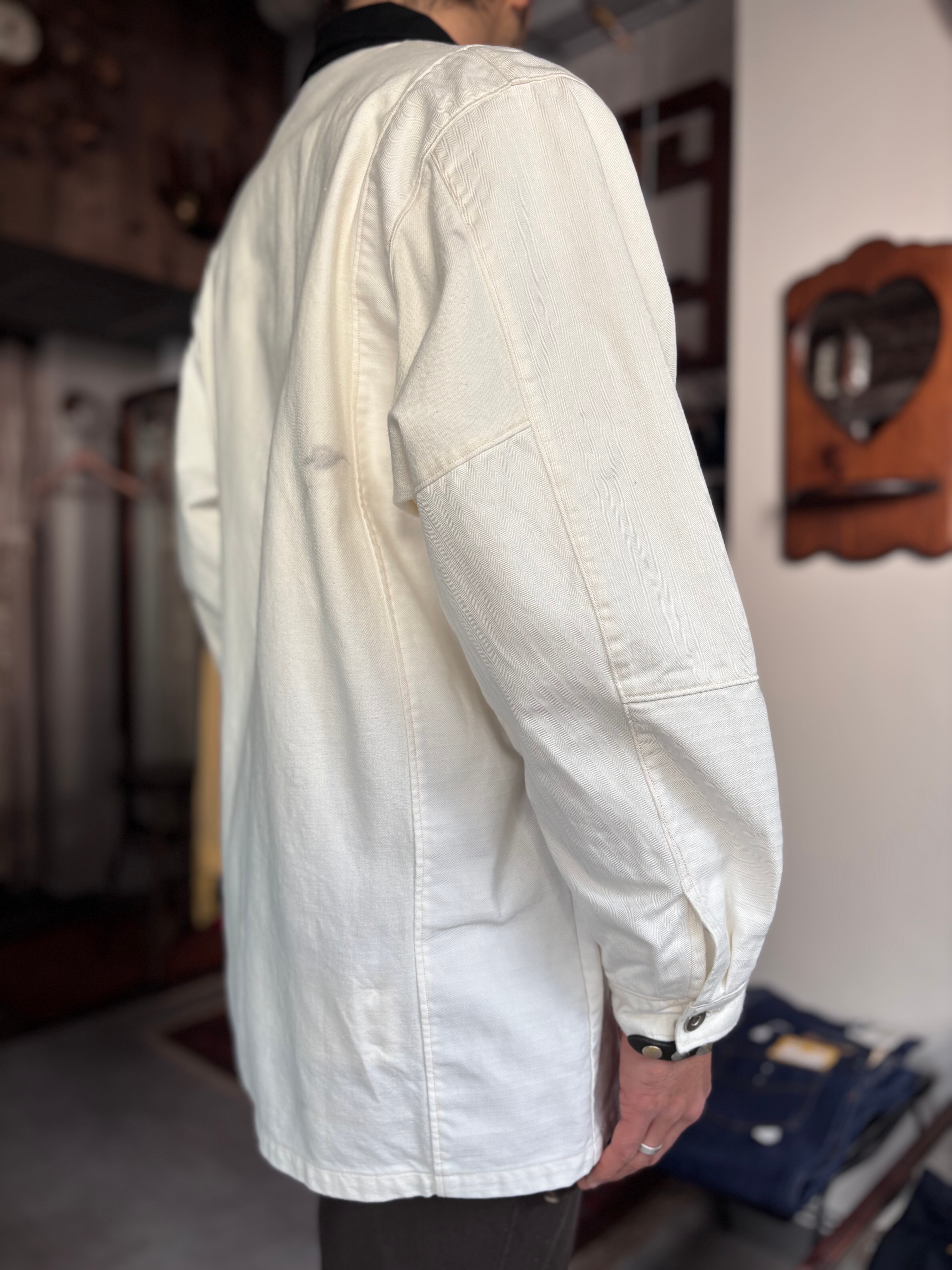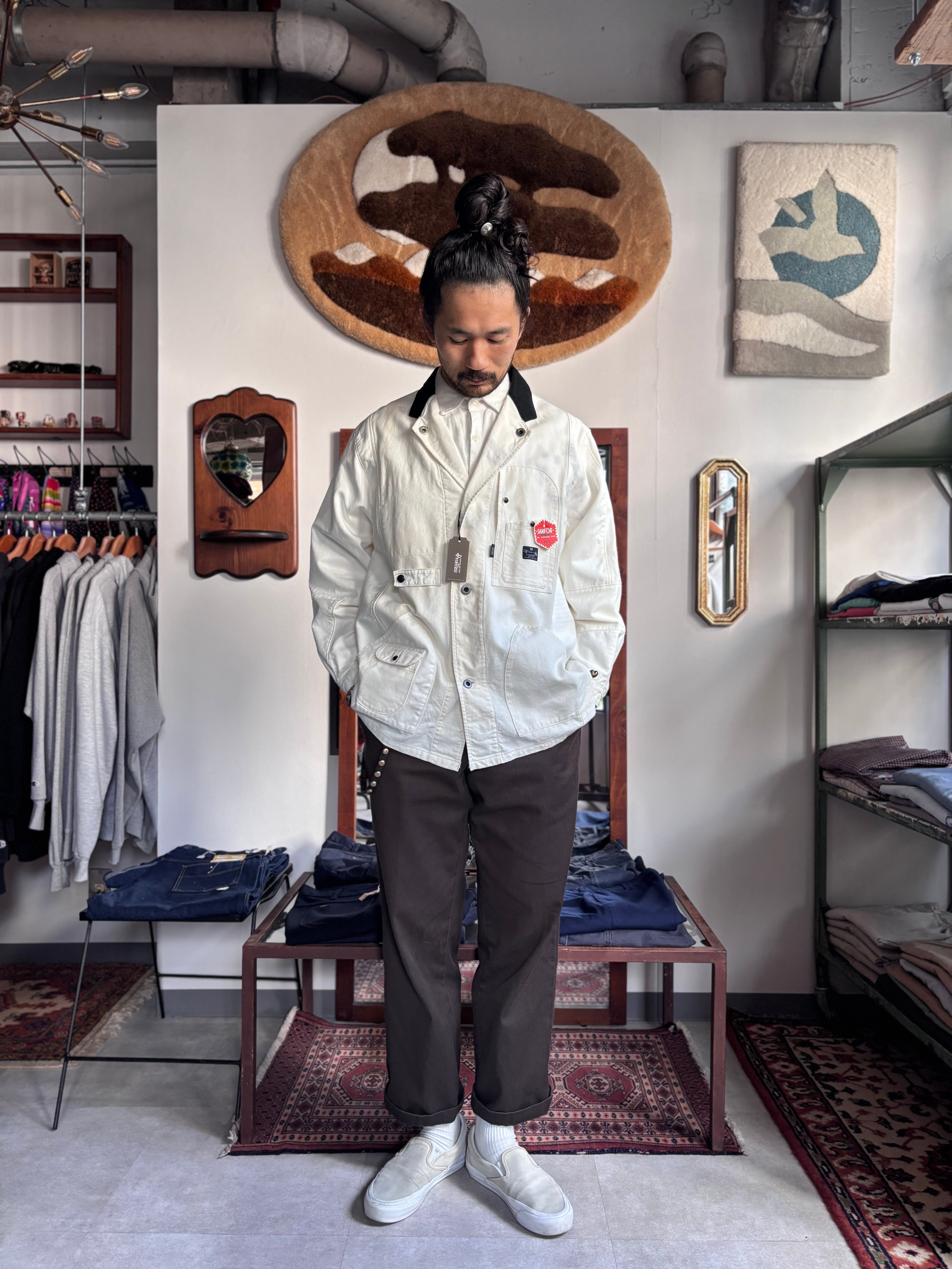 ※岡山県産のブラックデニムで仕立てられた襟は色落ちします。経年や色移り含め、一点ものの味わいとしてお楽しみくださいませ。