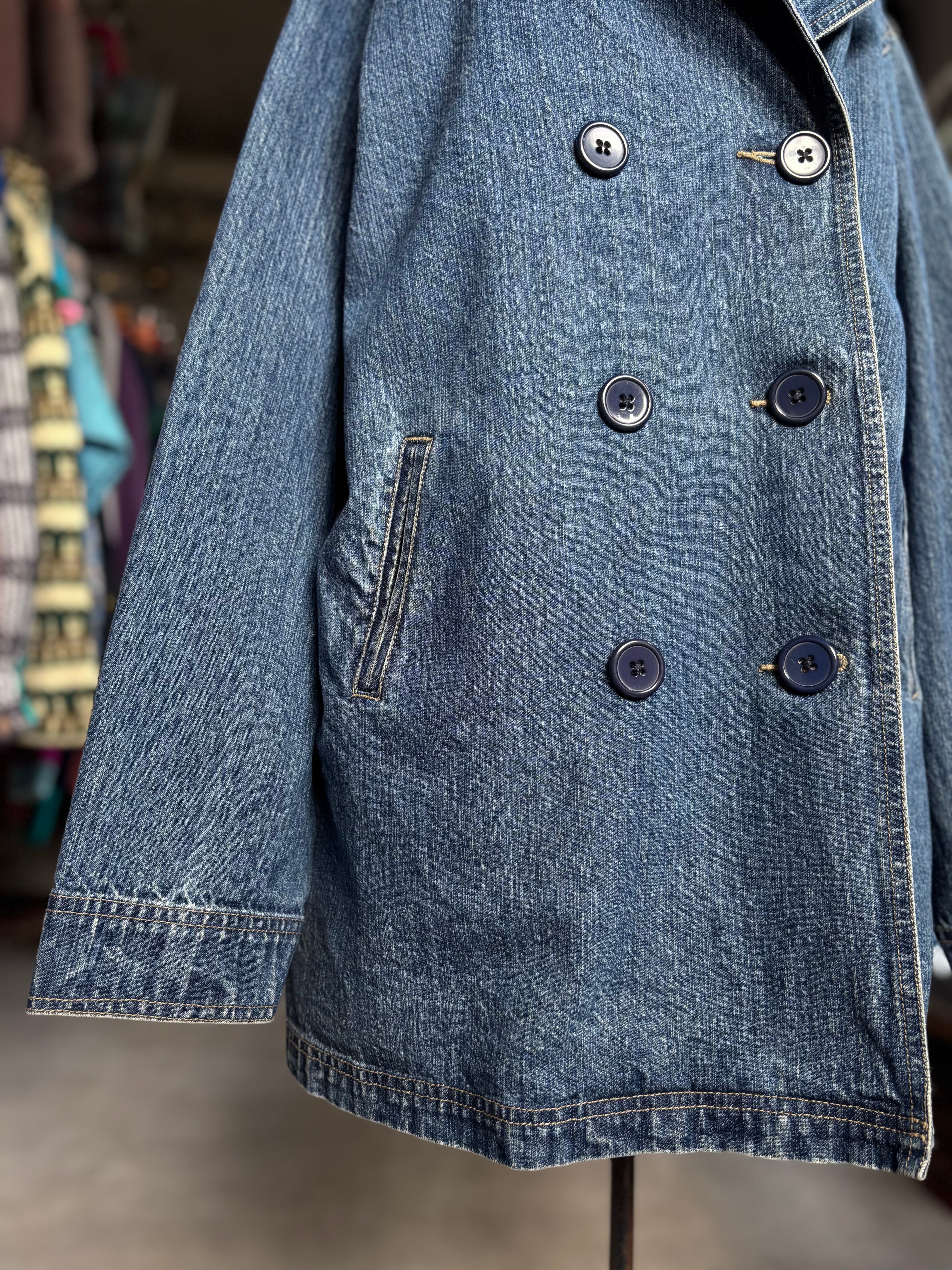 ウォッシュドデニム生地。リラックスフィット。シンプルなディテールが合わせ易いです。